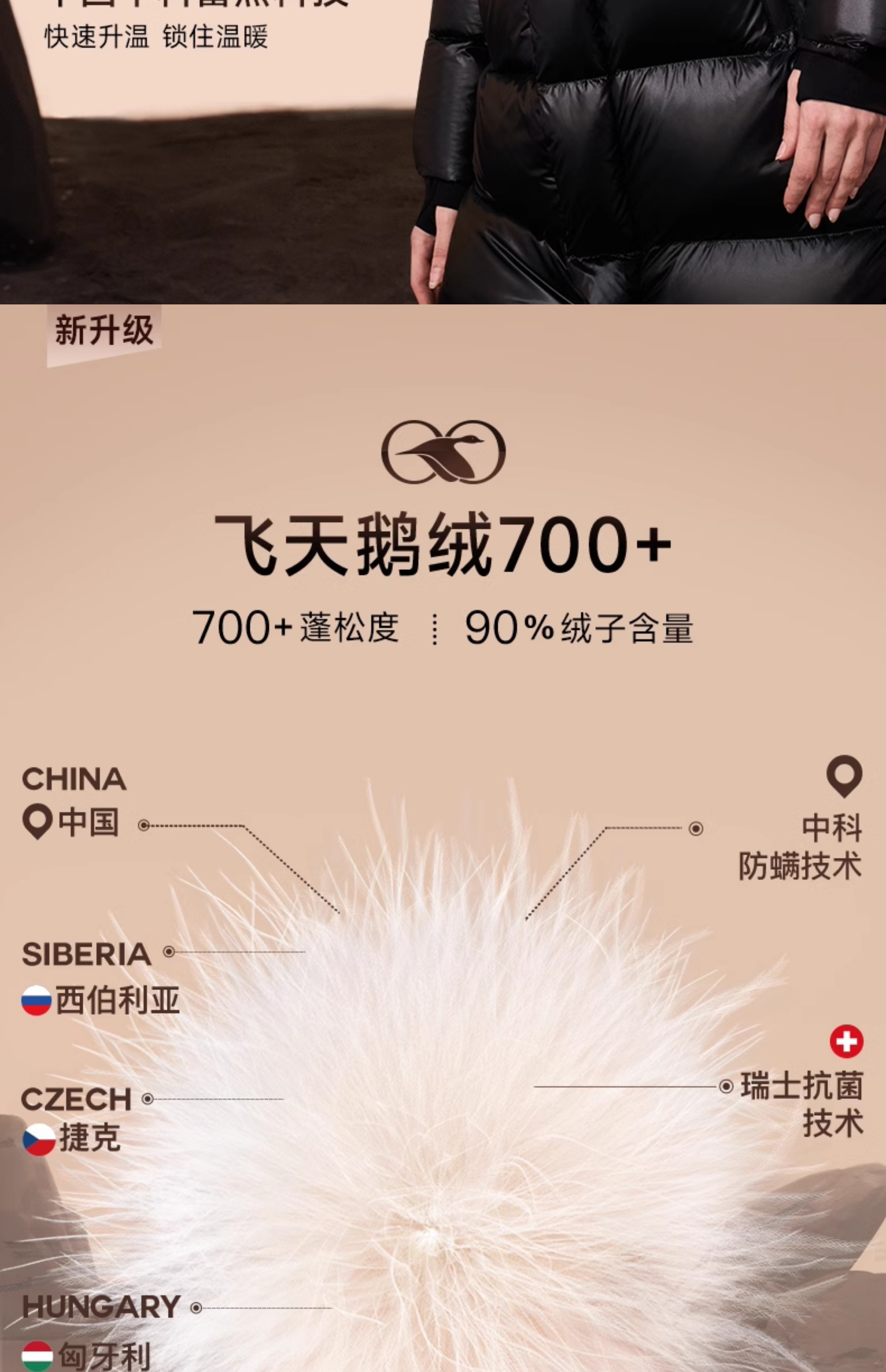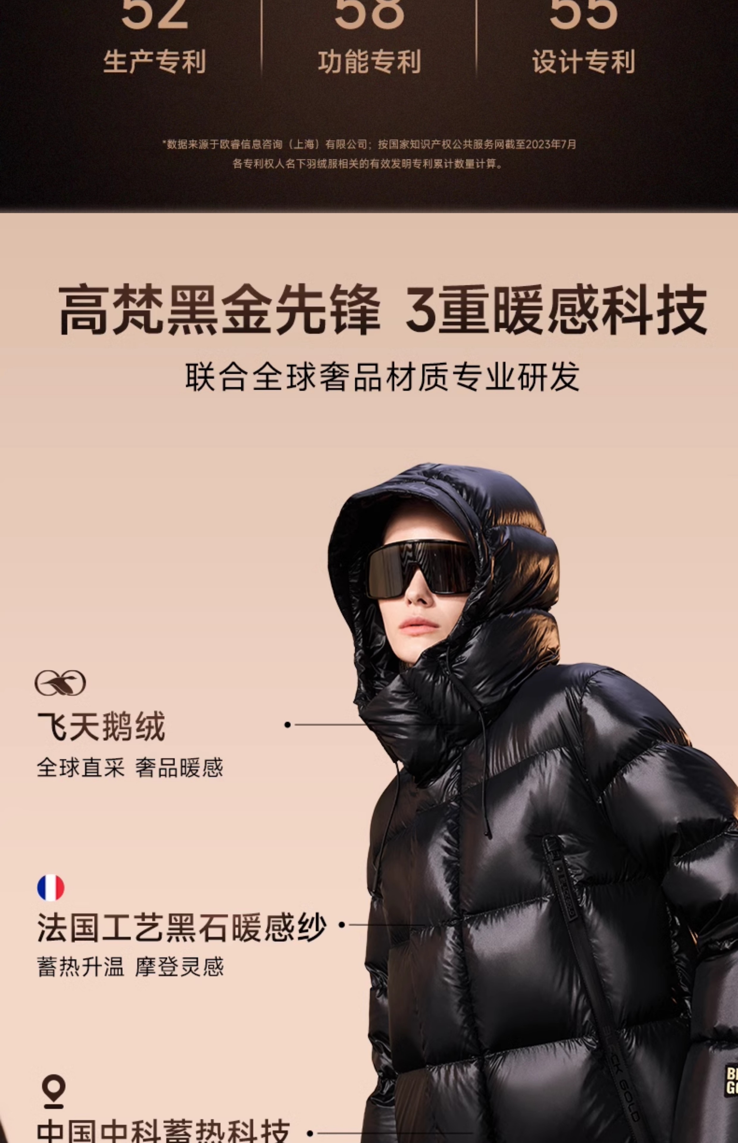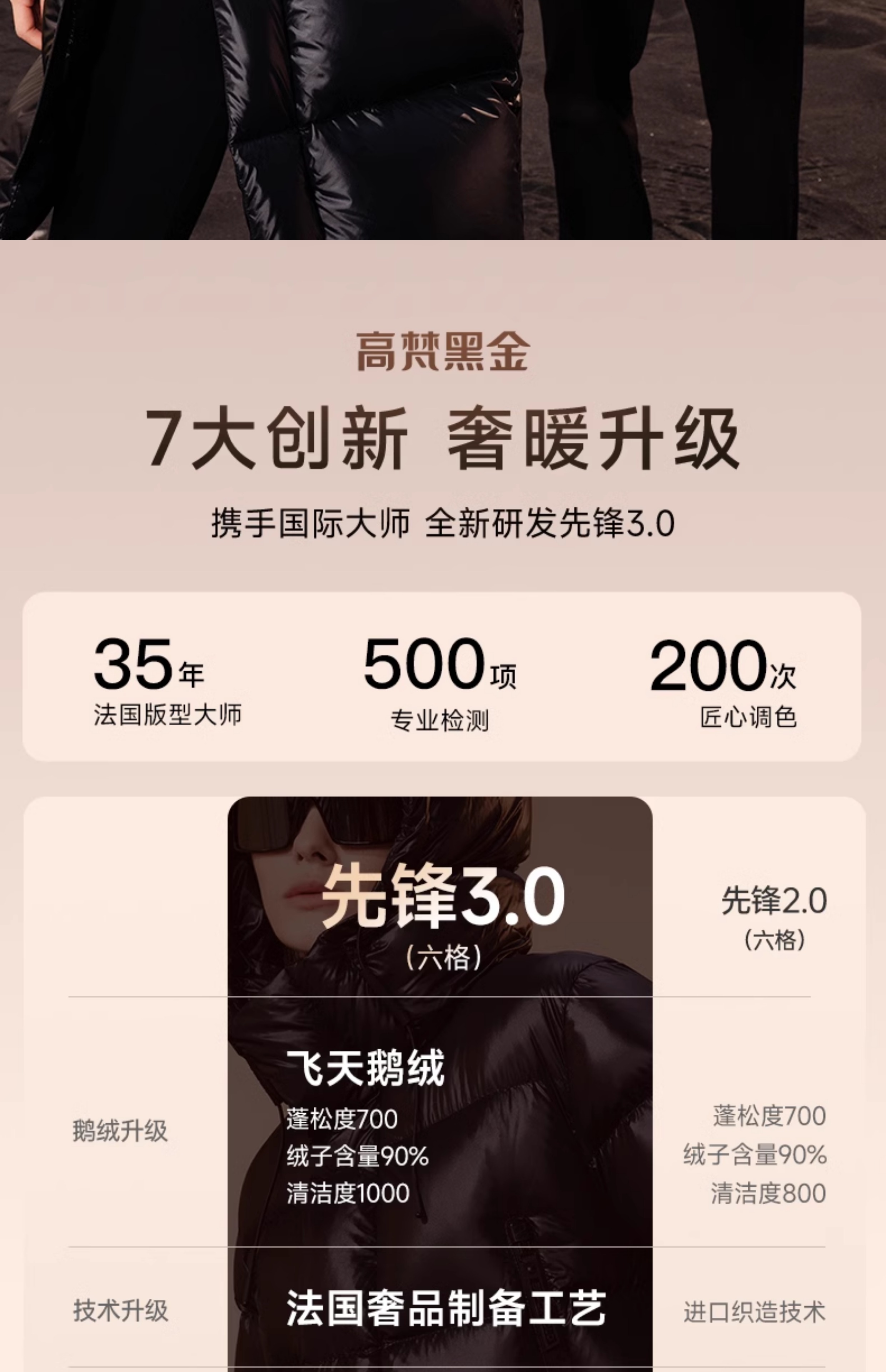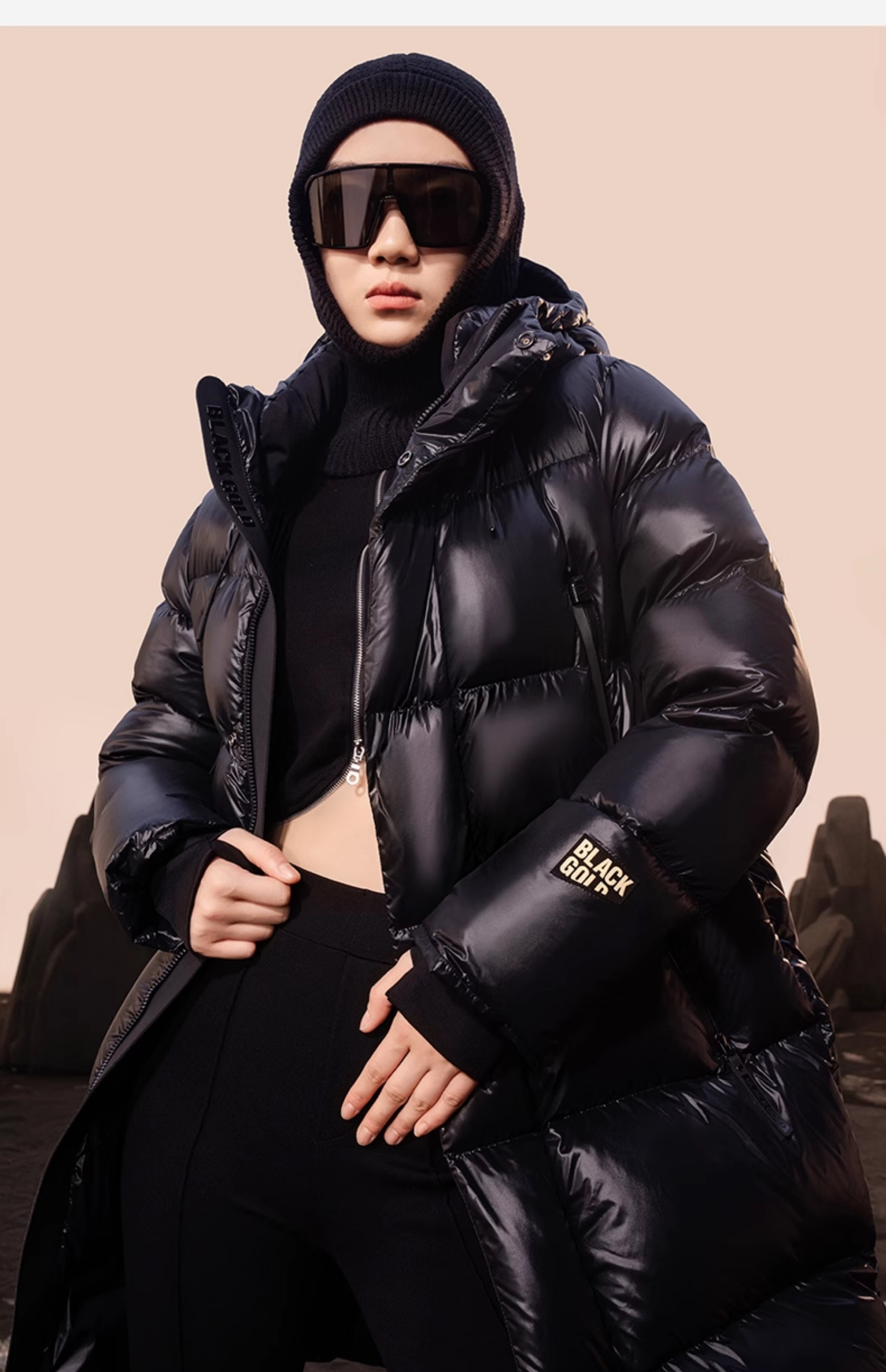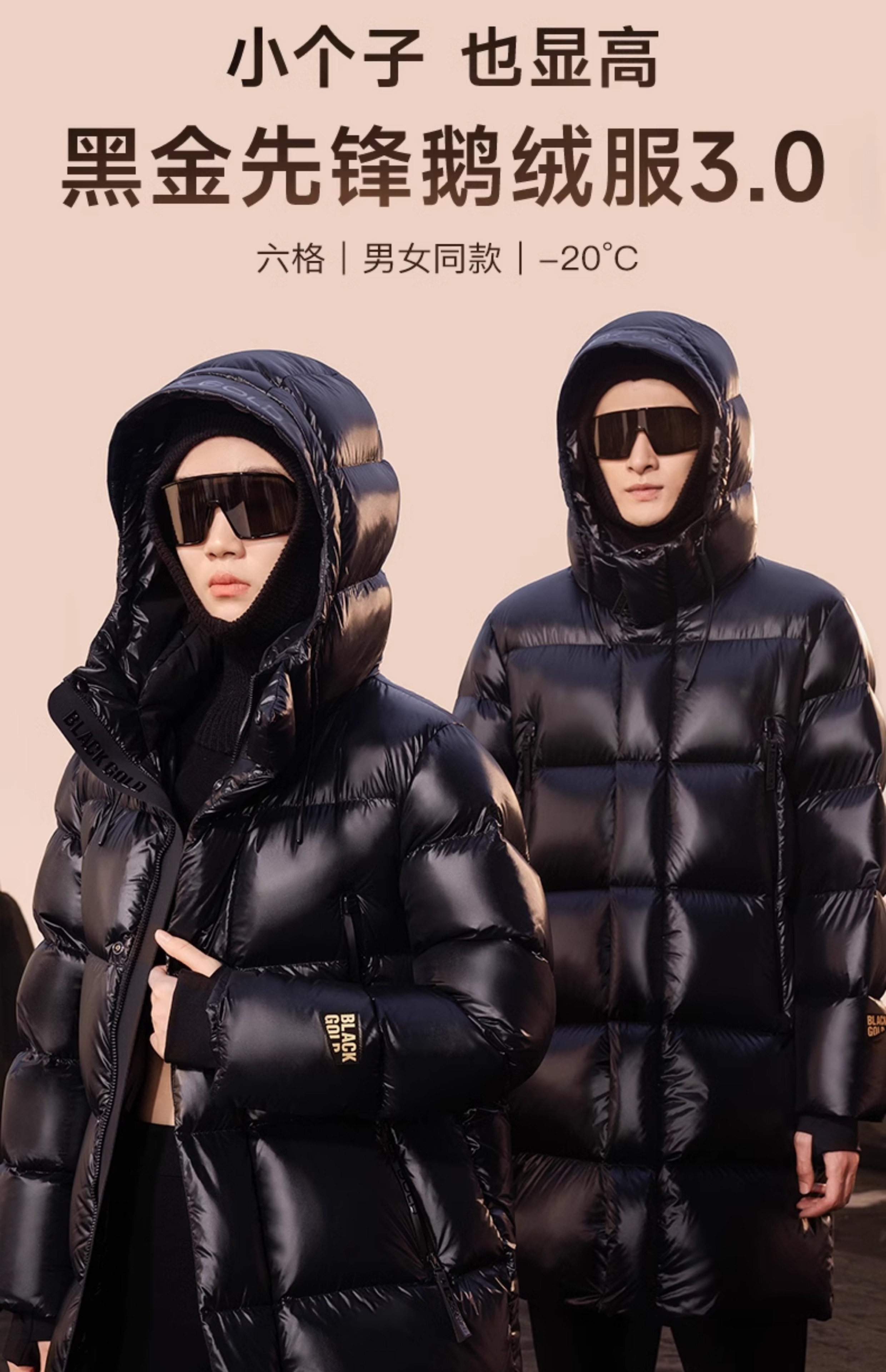 [Same Style as Cecilia Cheung] Gaofan Black Gold Goose down Jacket Pioneer 3.0 Six-Grid down Jacket for Women, Mid-Length, Thickened, Official