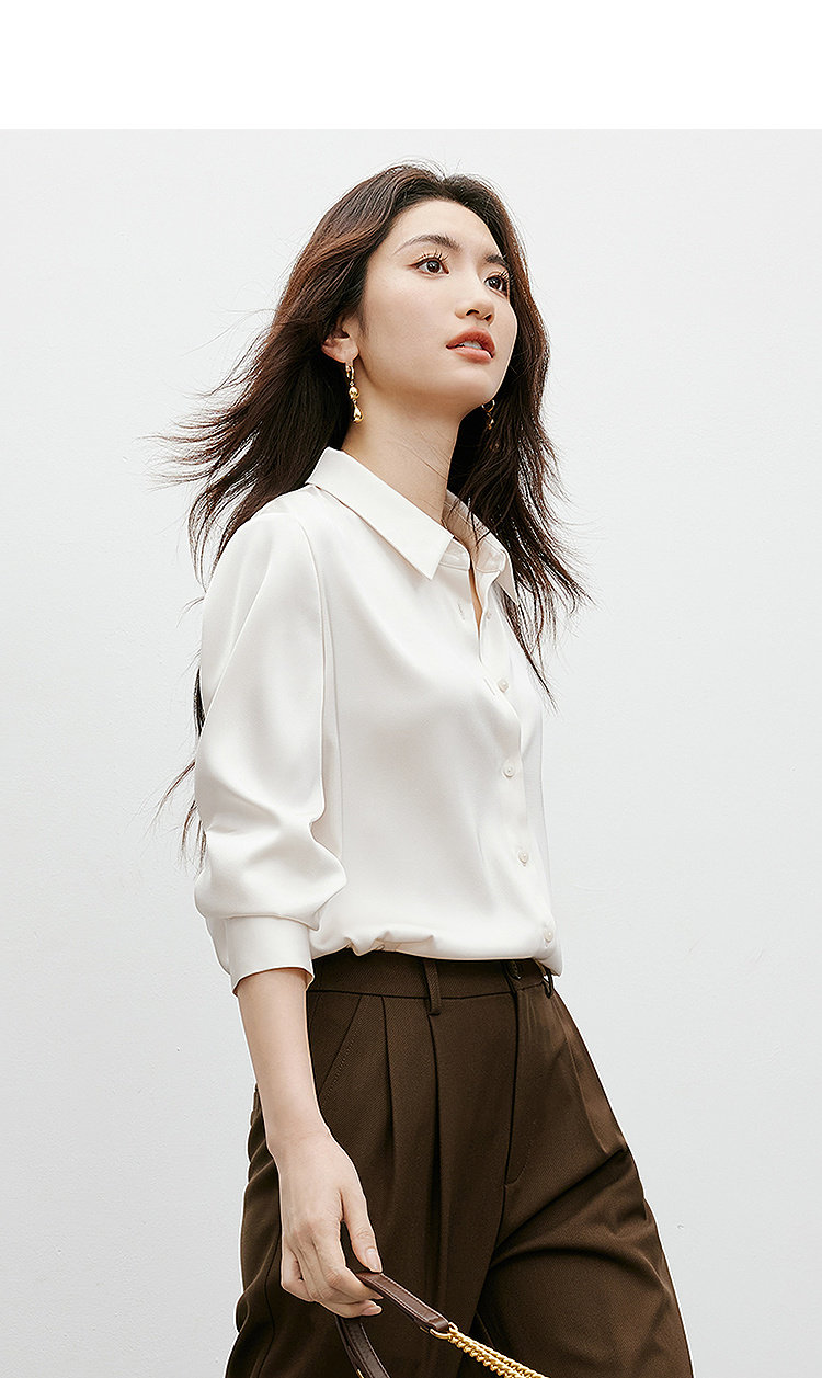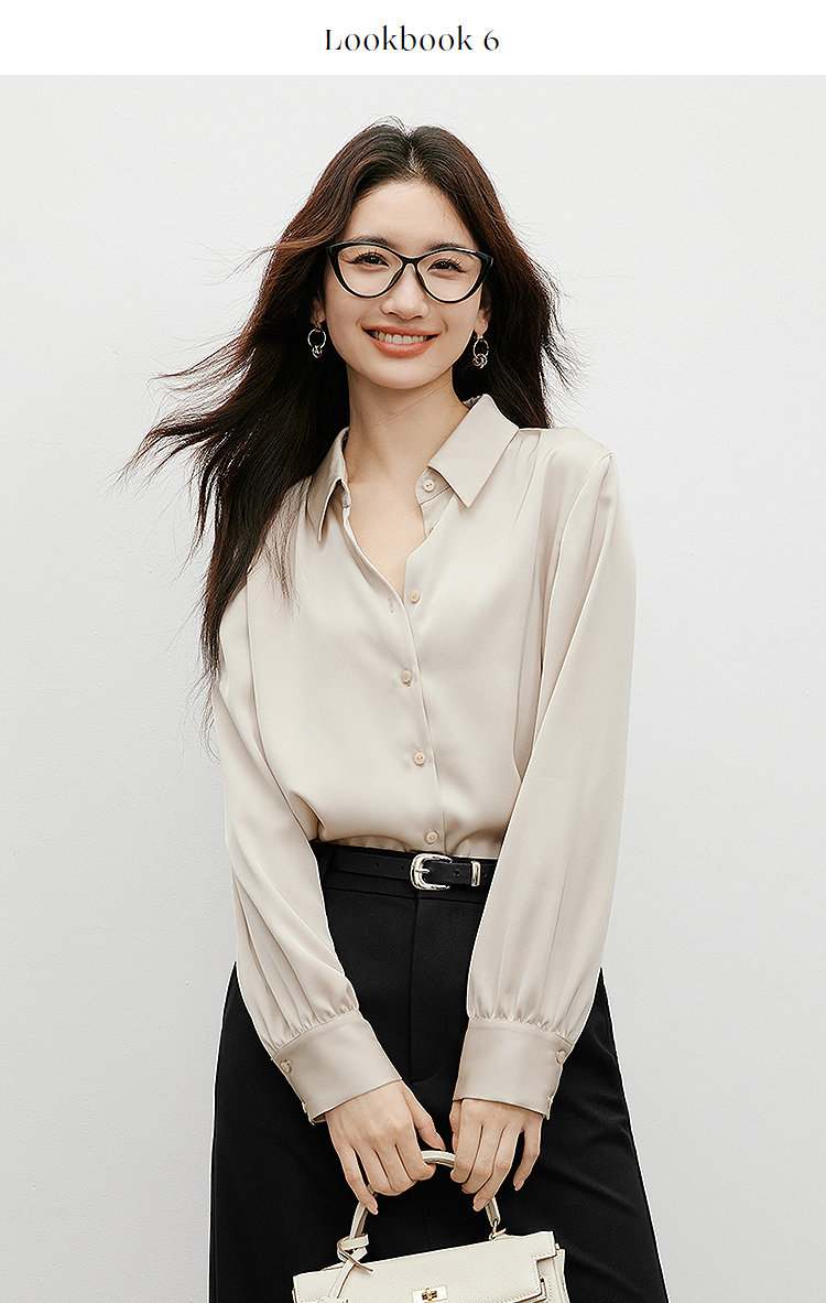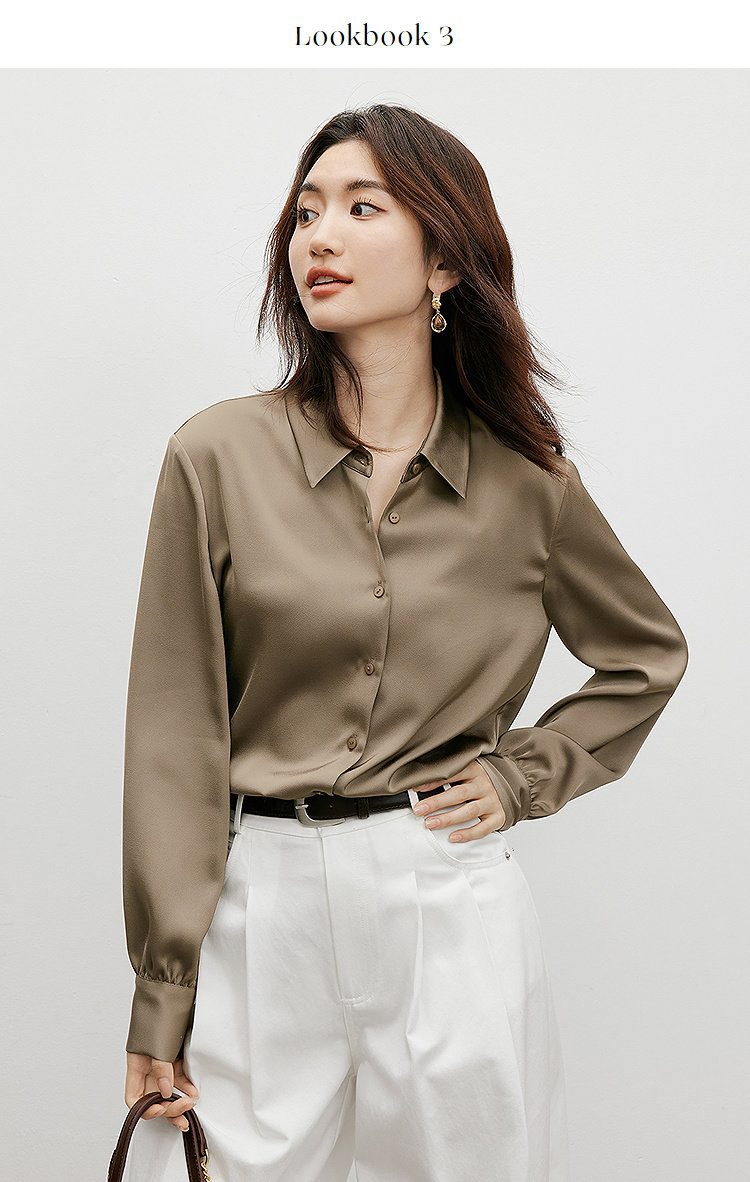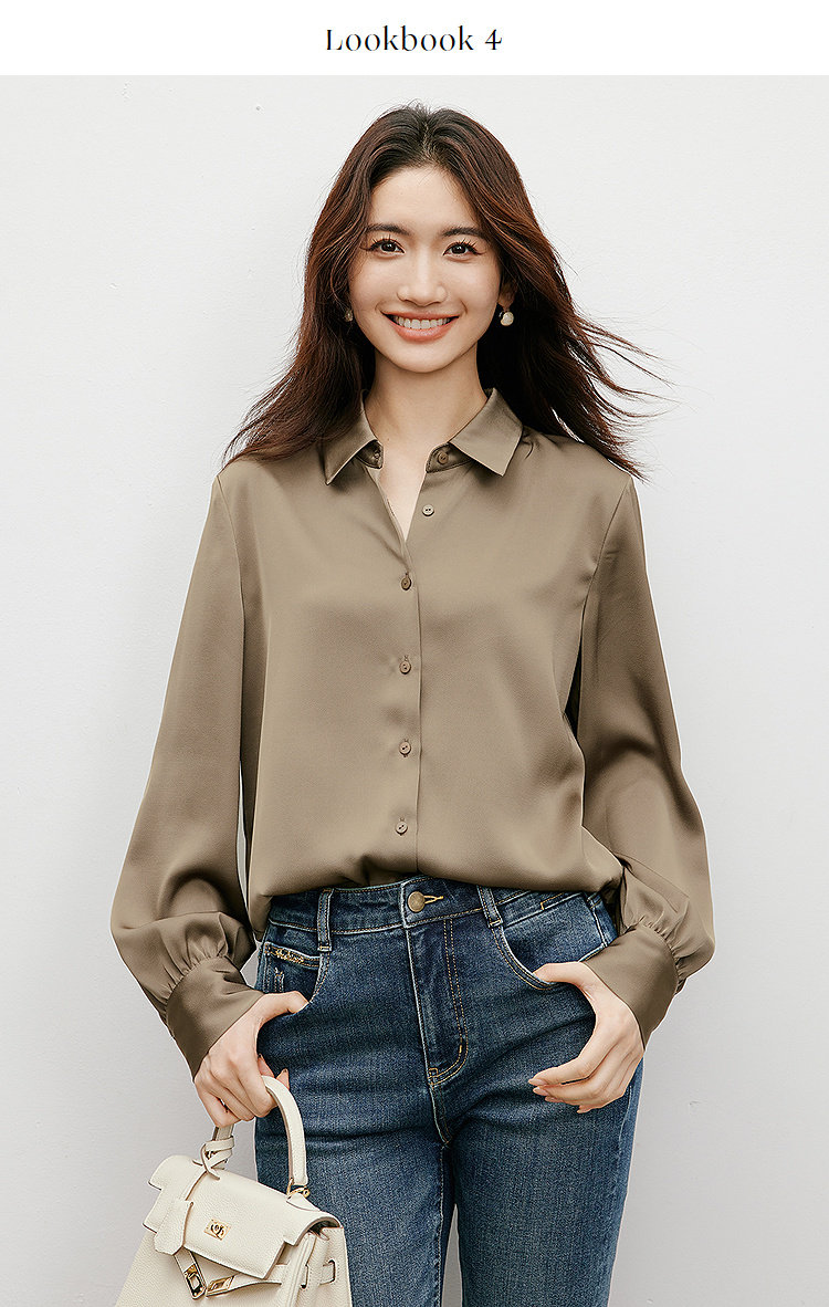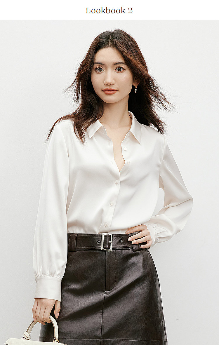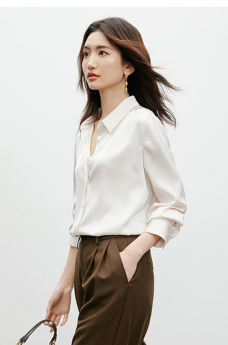 Red Sleeve [High-Gloss Drape] Satin Shirt, New Spring and Autumn Women's Clothing, Lapel Drape, Slimming and Elegant Top