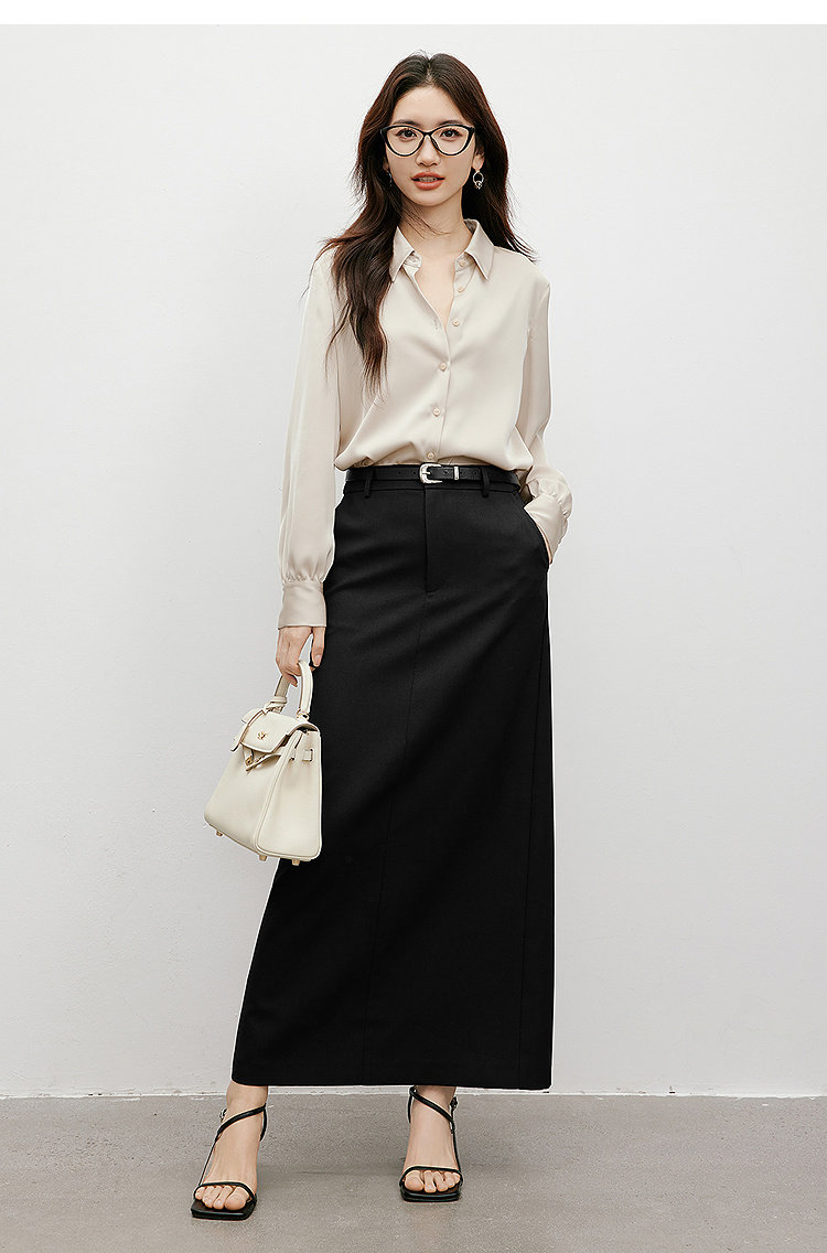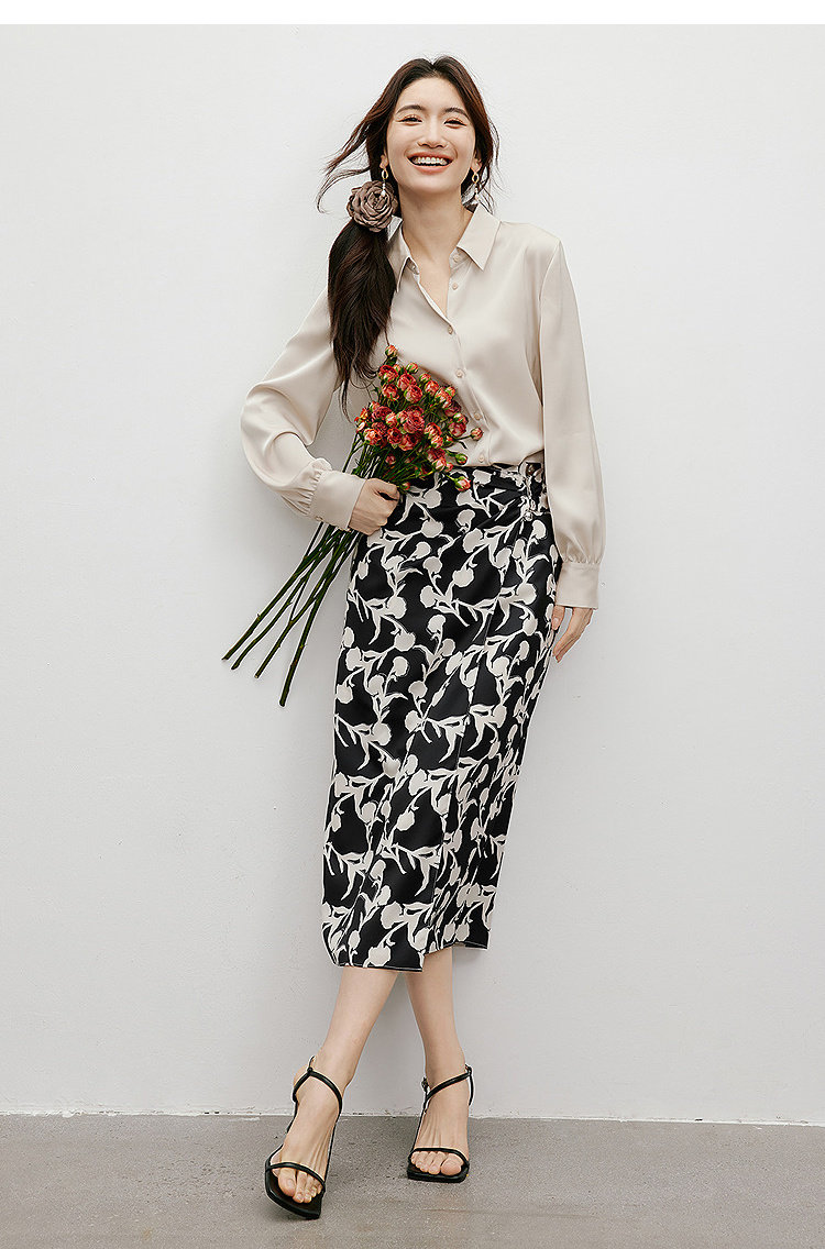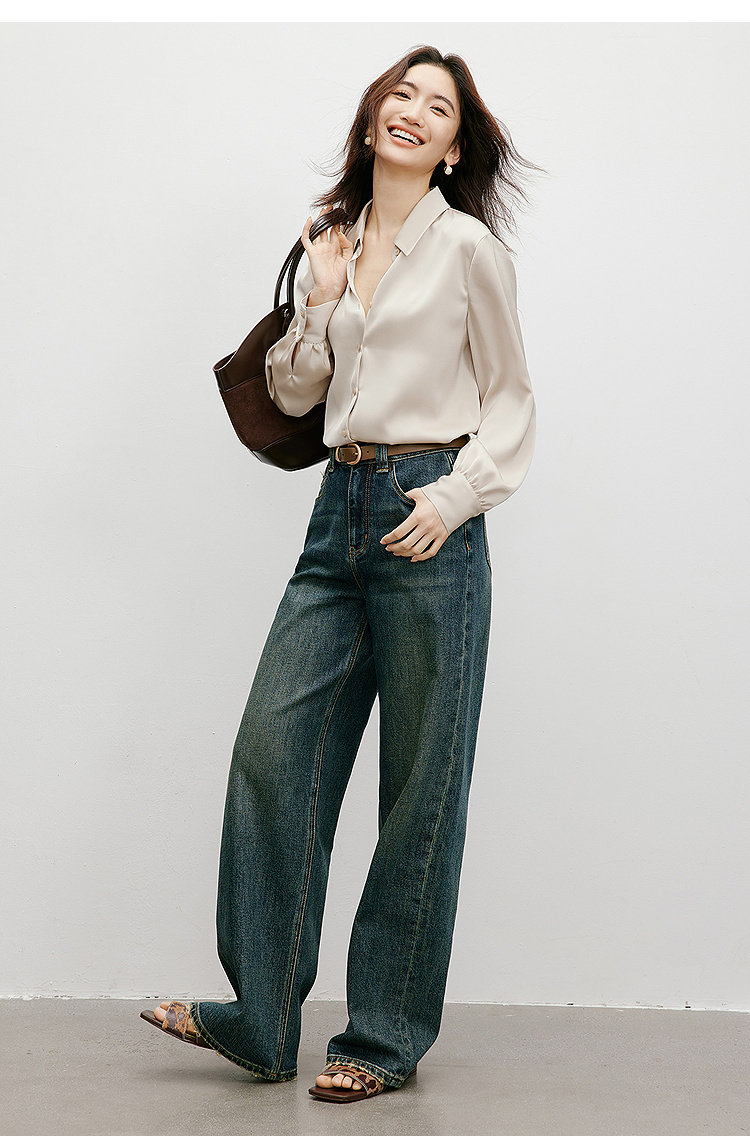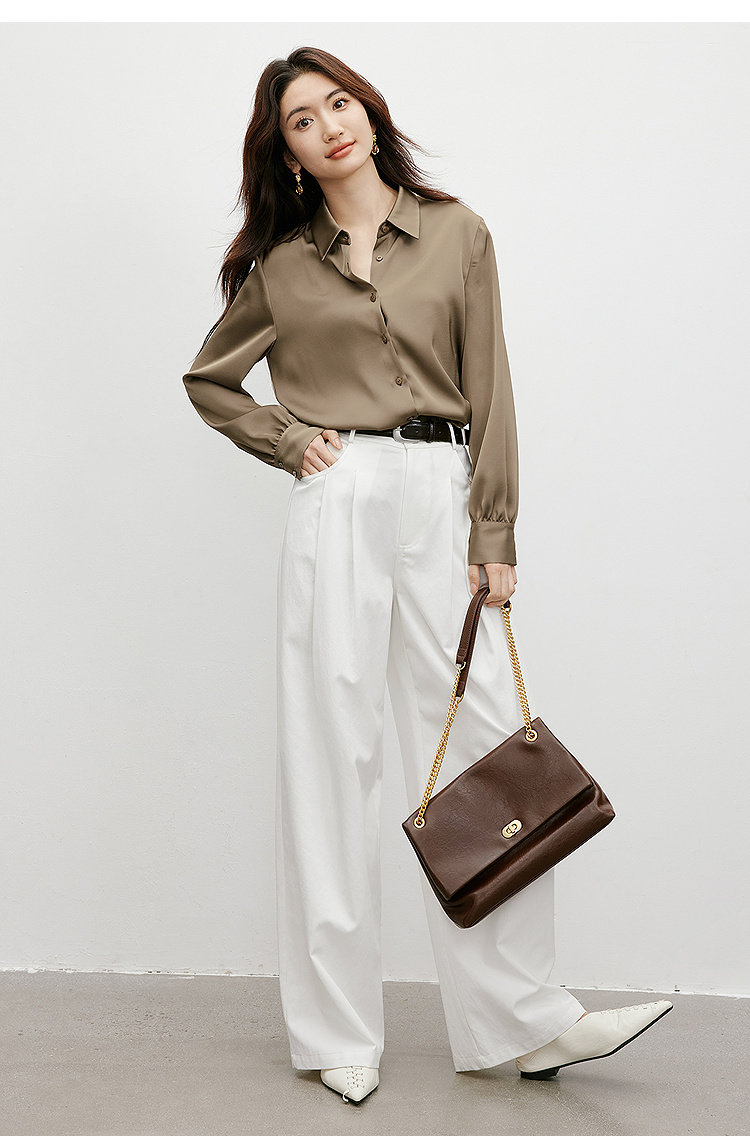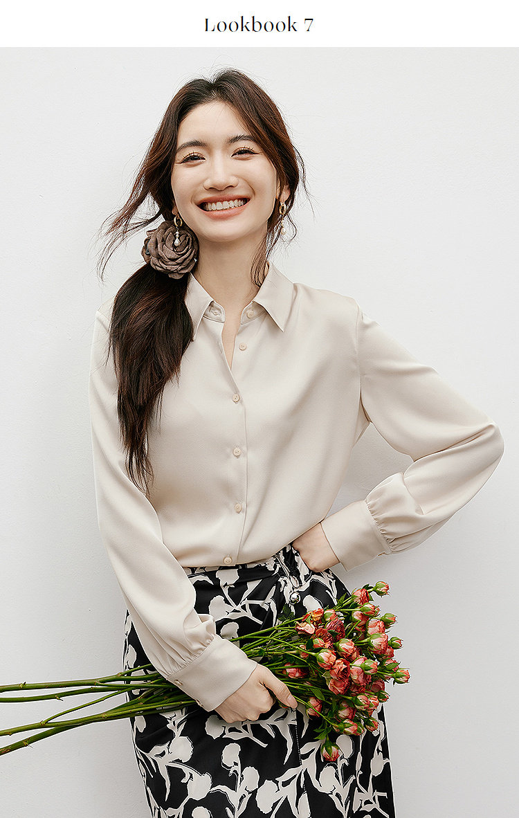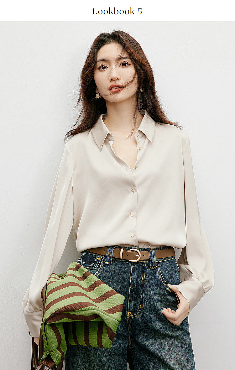Red Sleeve [High-Gloss Drape] Satin Shirt, New Spring and Autumn Women's Clothing, Lapel Drape, Slimming and Elegant Top