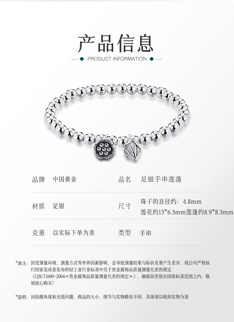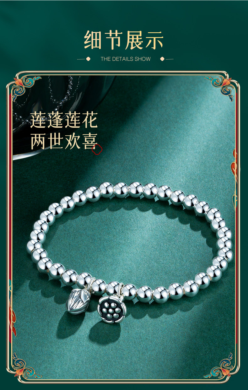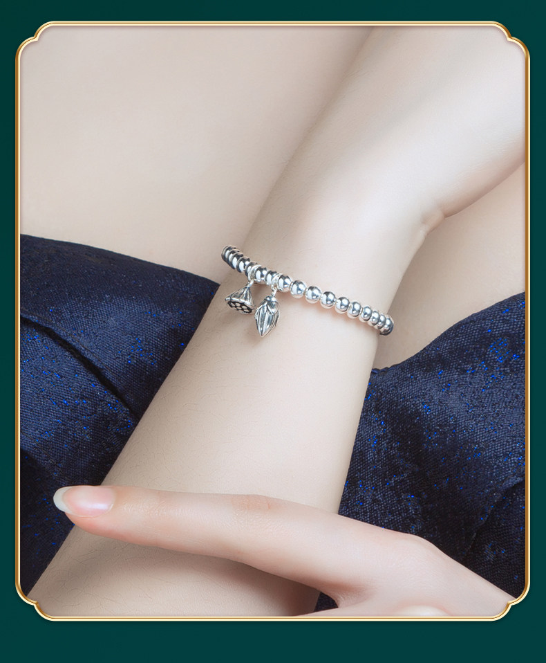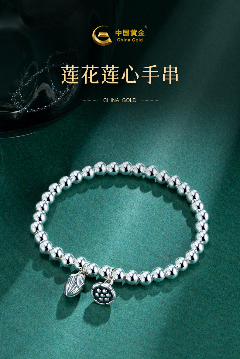 Chinese Gold and Pure Silver Bracelet with Lotus Pendant, Silver Bracelet S999 Pure Silver Jewelry, Gift for Girlfriend on Valentine's Day