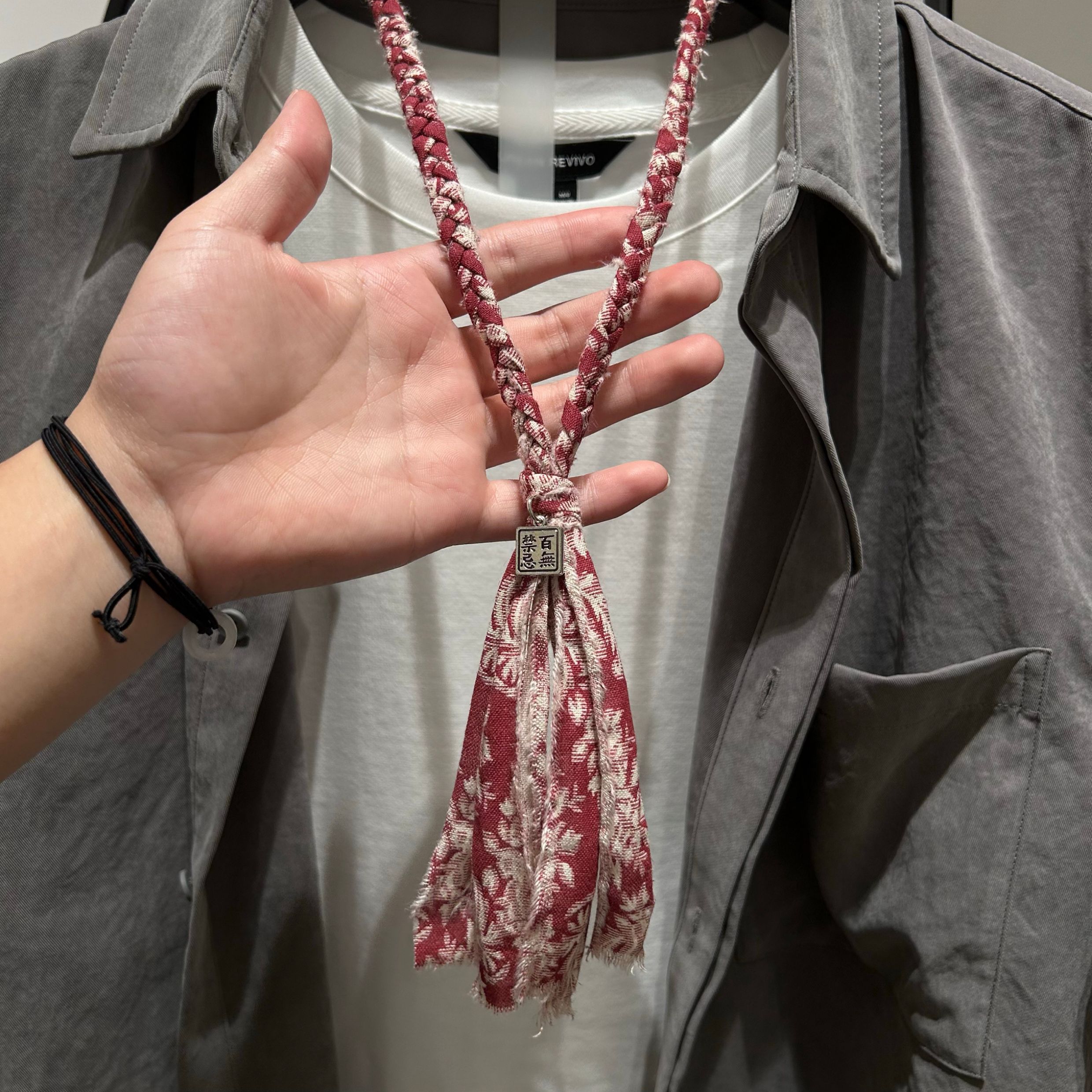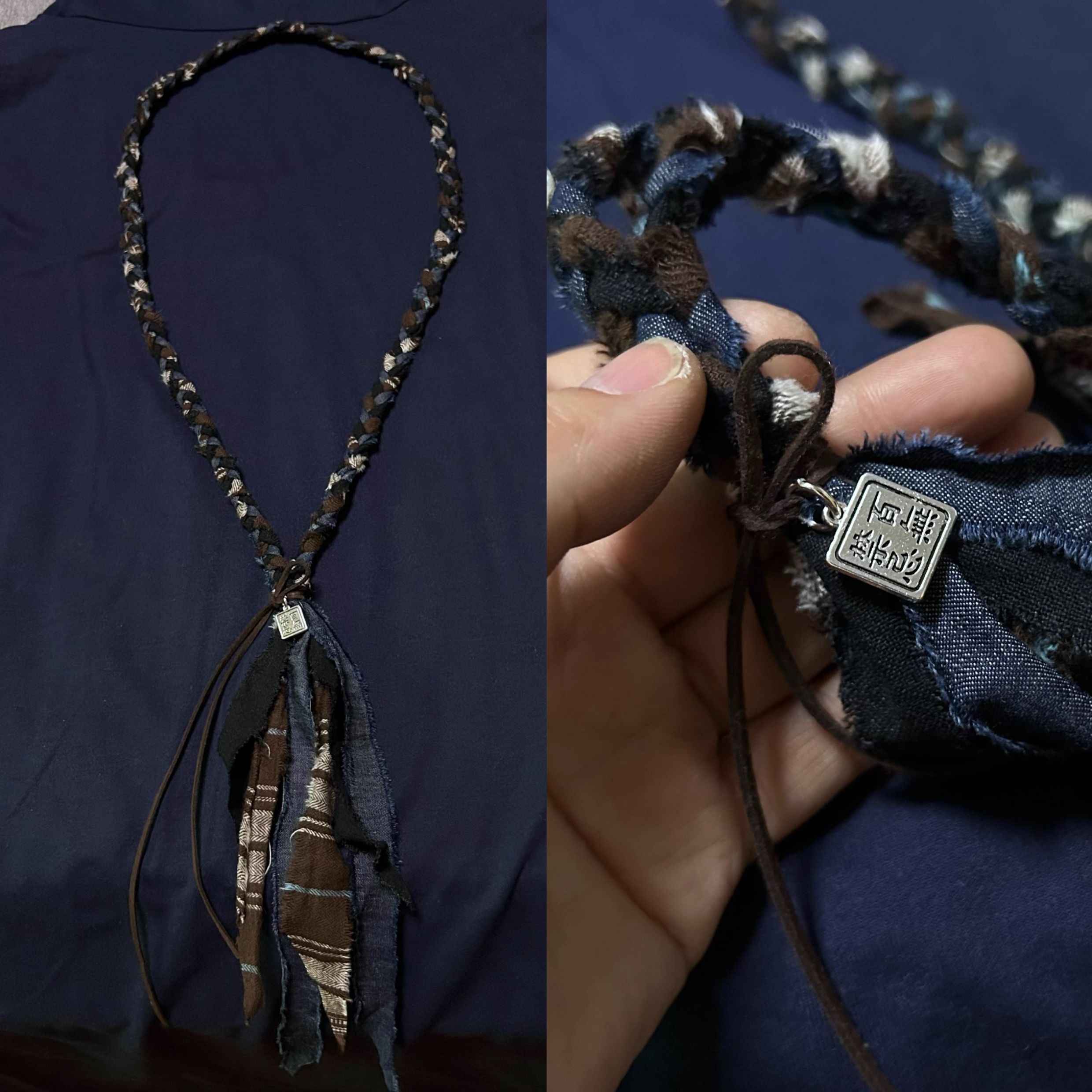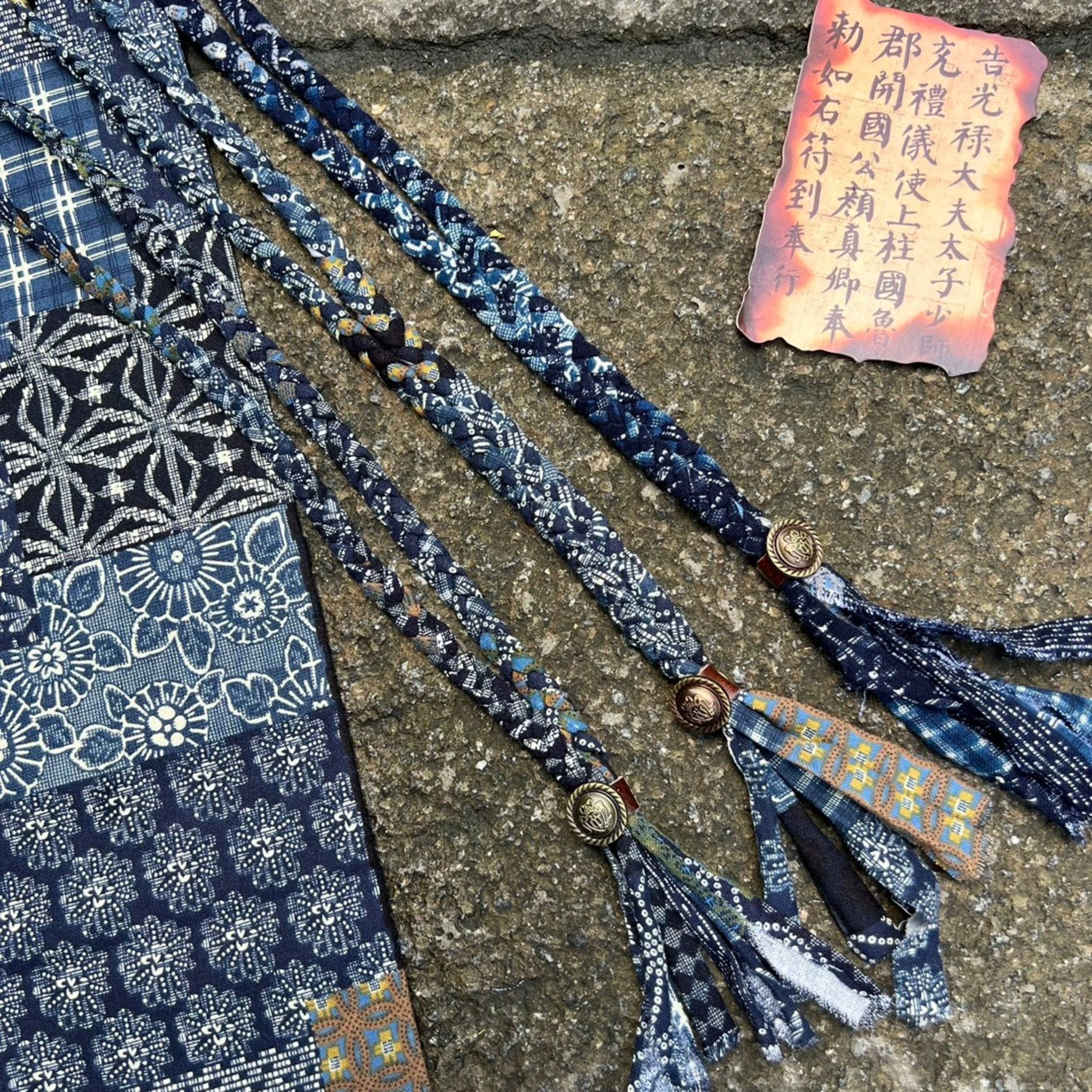 A8 Japanese Vintage Cloth Rope Tie, Unique Vintage Woven Tie, Retro Neckerchief, Silk Scarf, Scarf, Fabric Strip Necklace