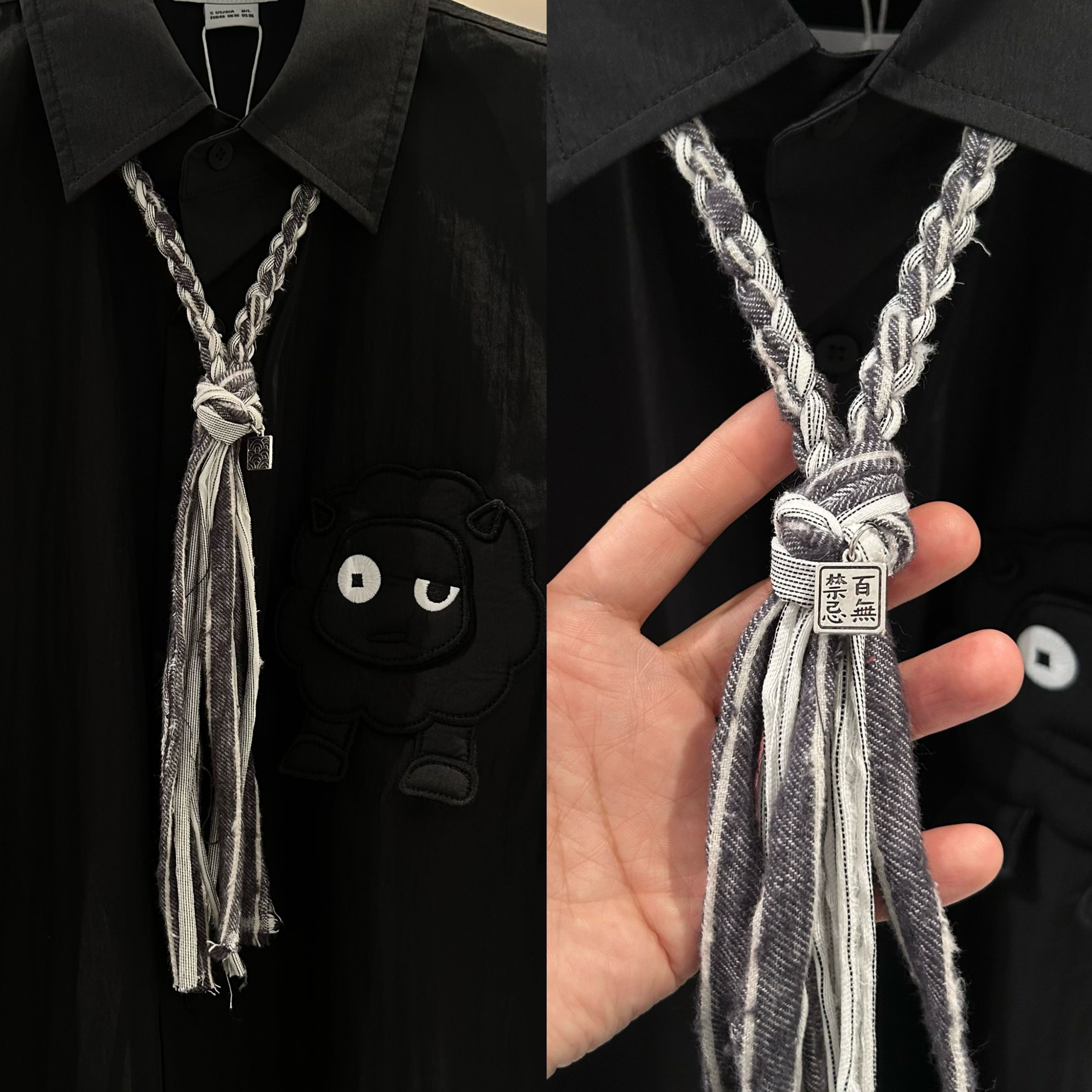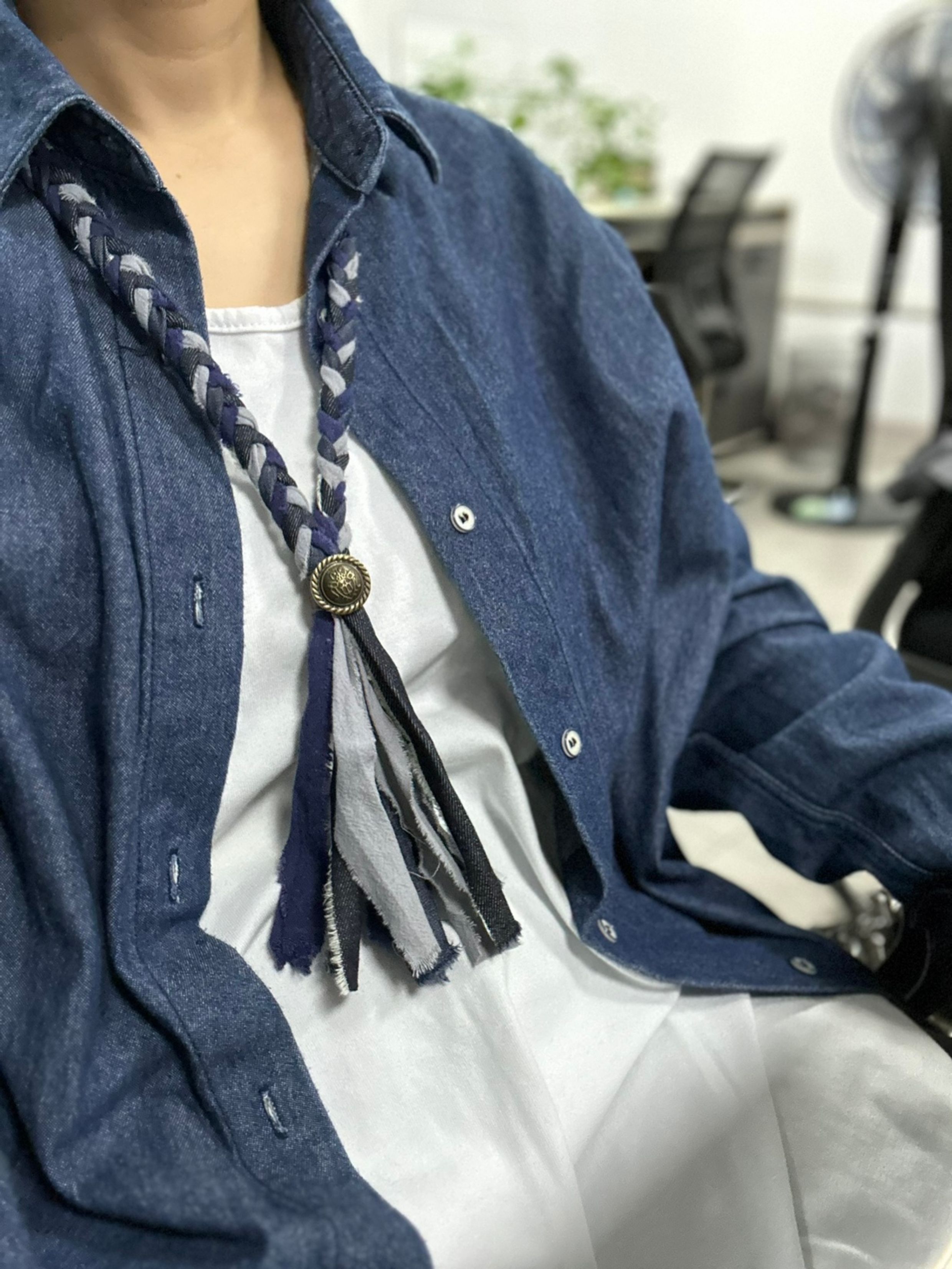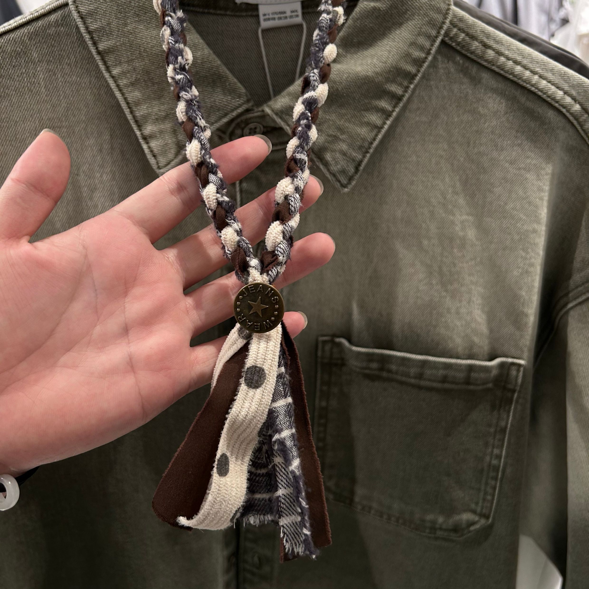 A8 Japanese Vintage Cloth Rope Tie, Unique Vintage Woven Tie, Retro Neckerchief, Silk Scarf, Scarf, Fabric Strip Necklace