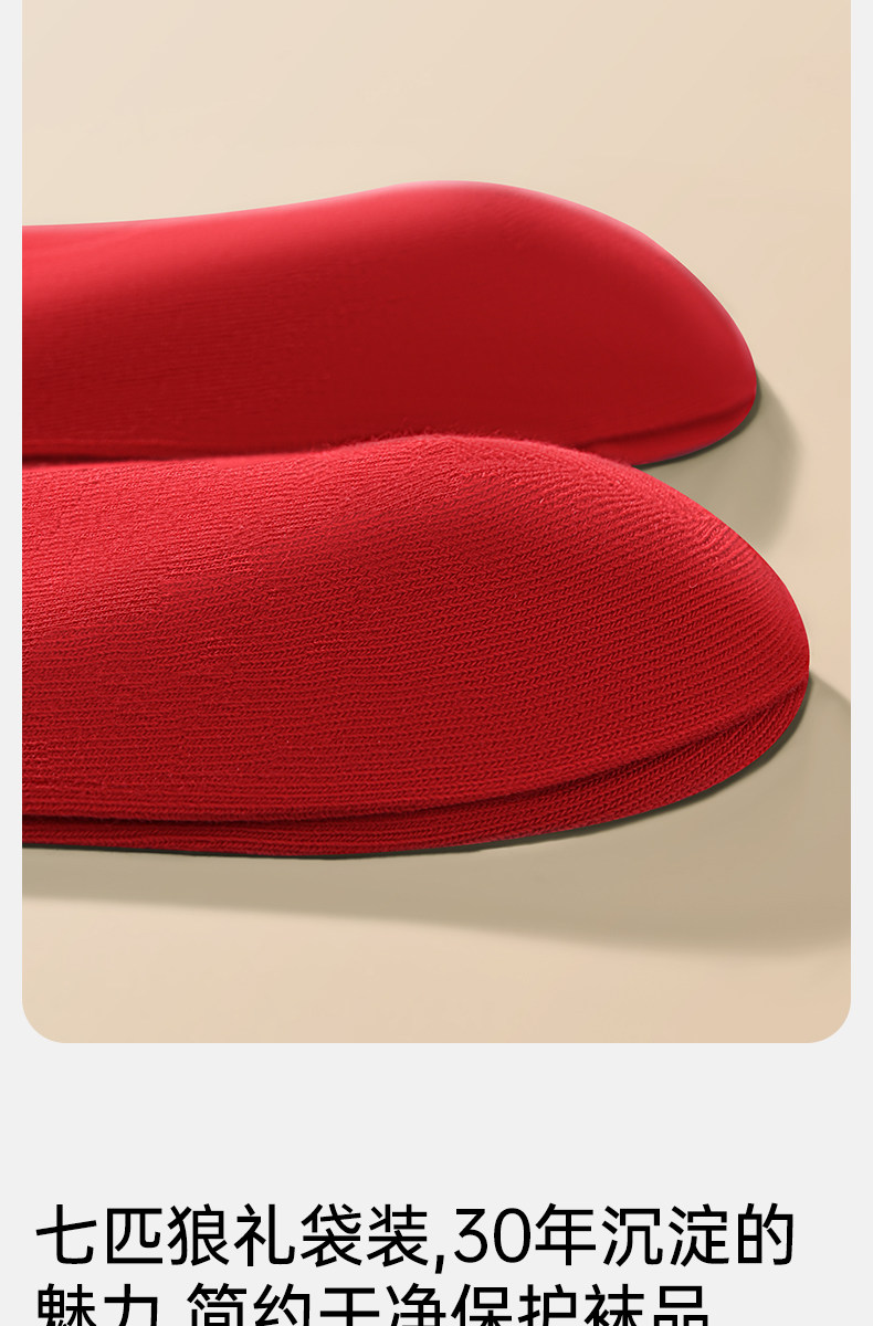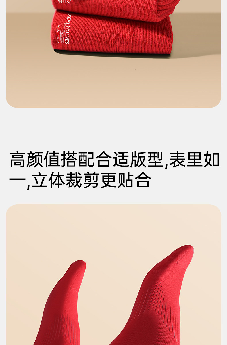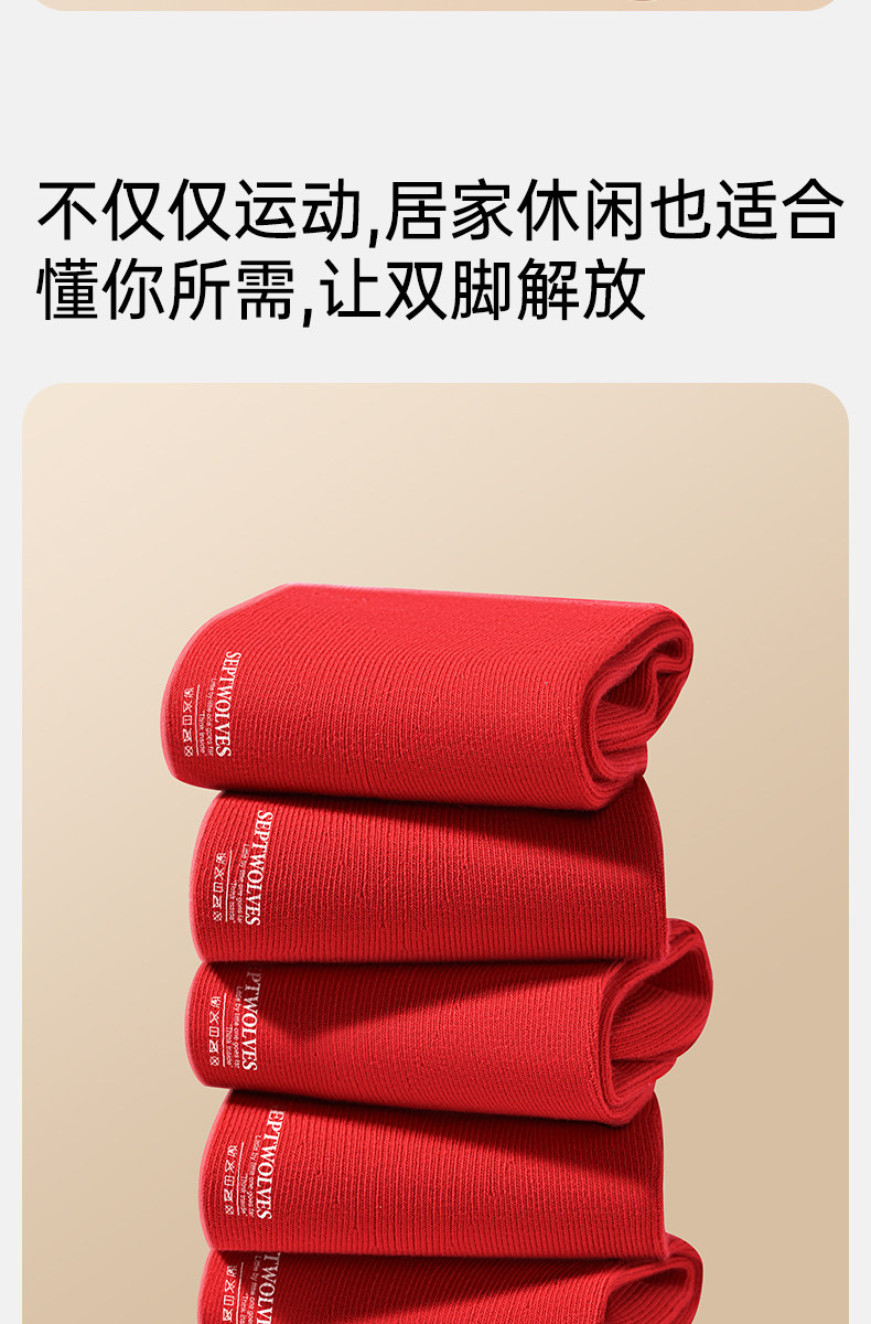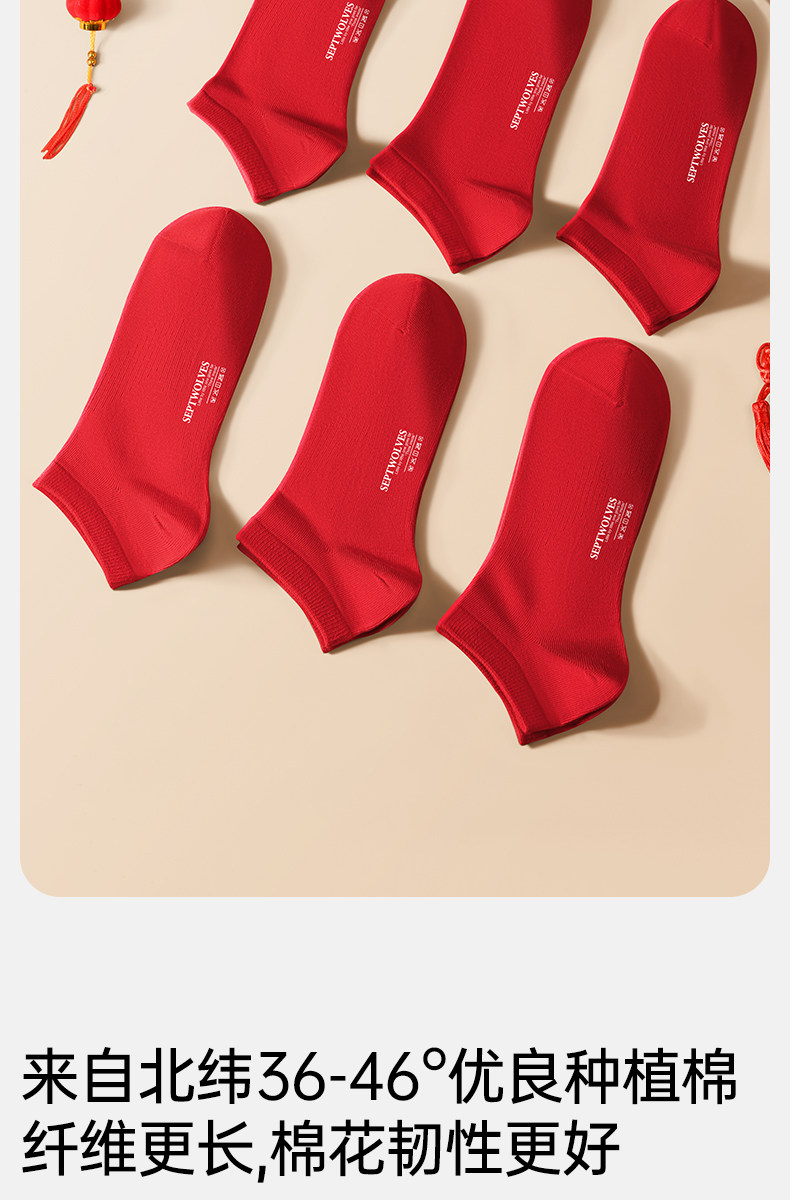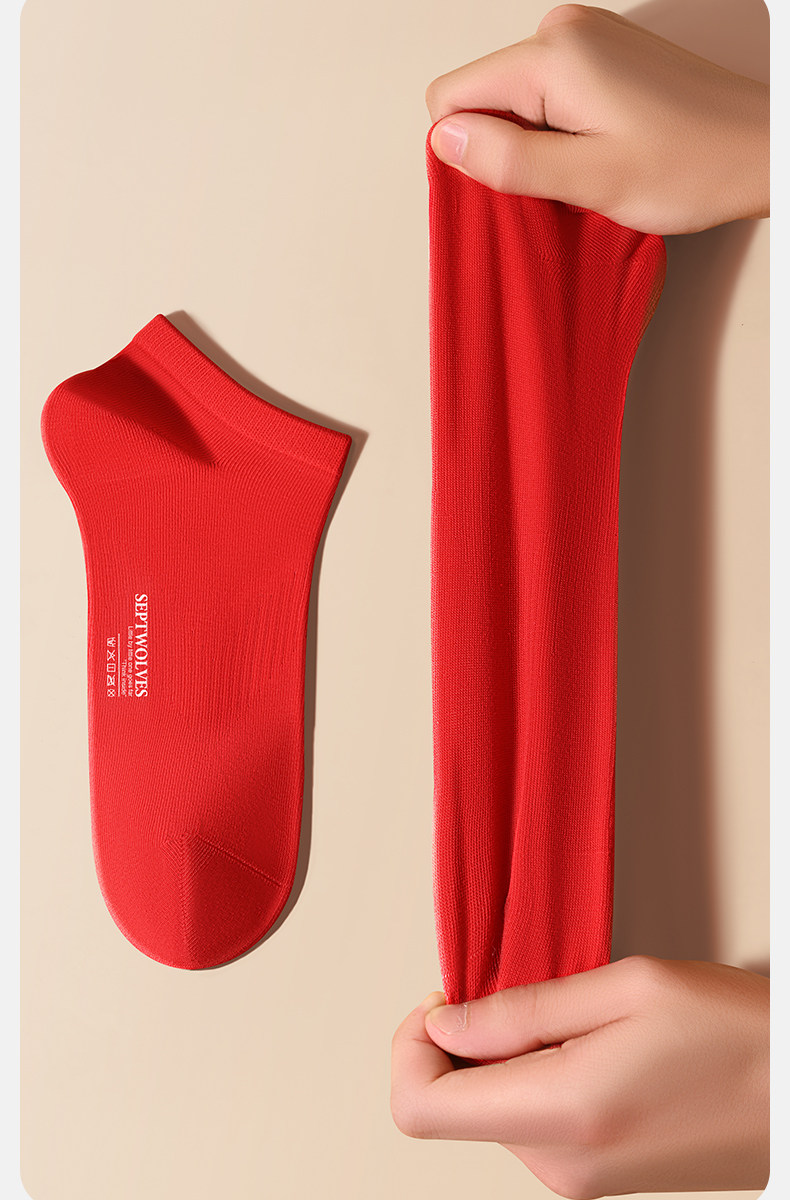 Septwolves Zodiac Year Socks Men's Short Socks Red Pure Cotton Socks Men's All-Cotton Anti-Odor Sweat-Absorbing No-Show Socks