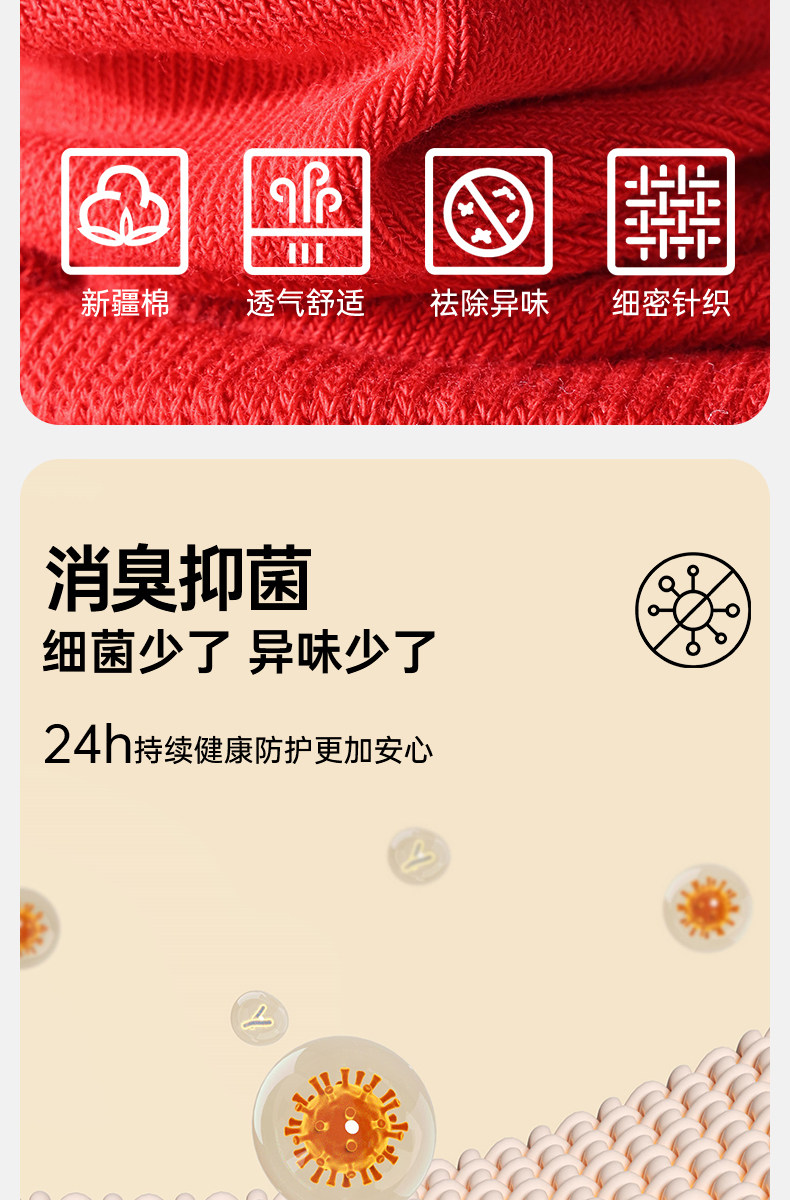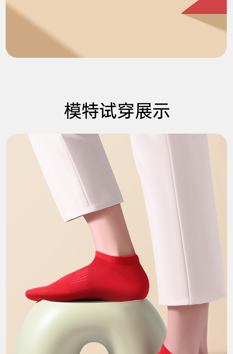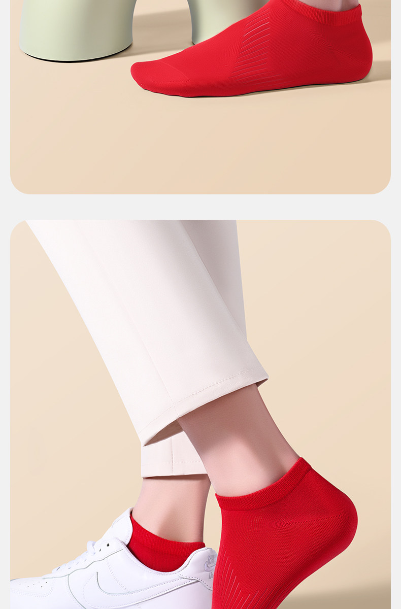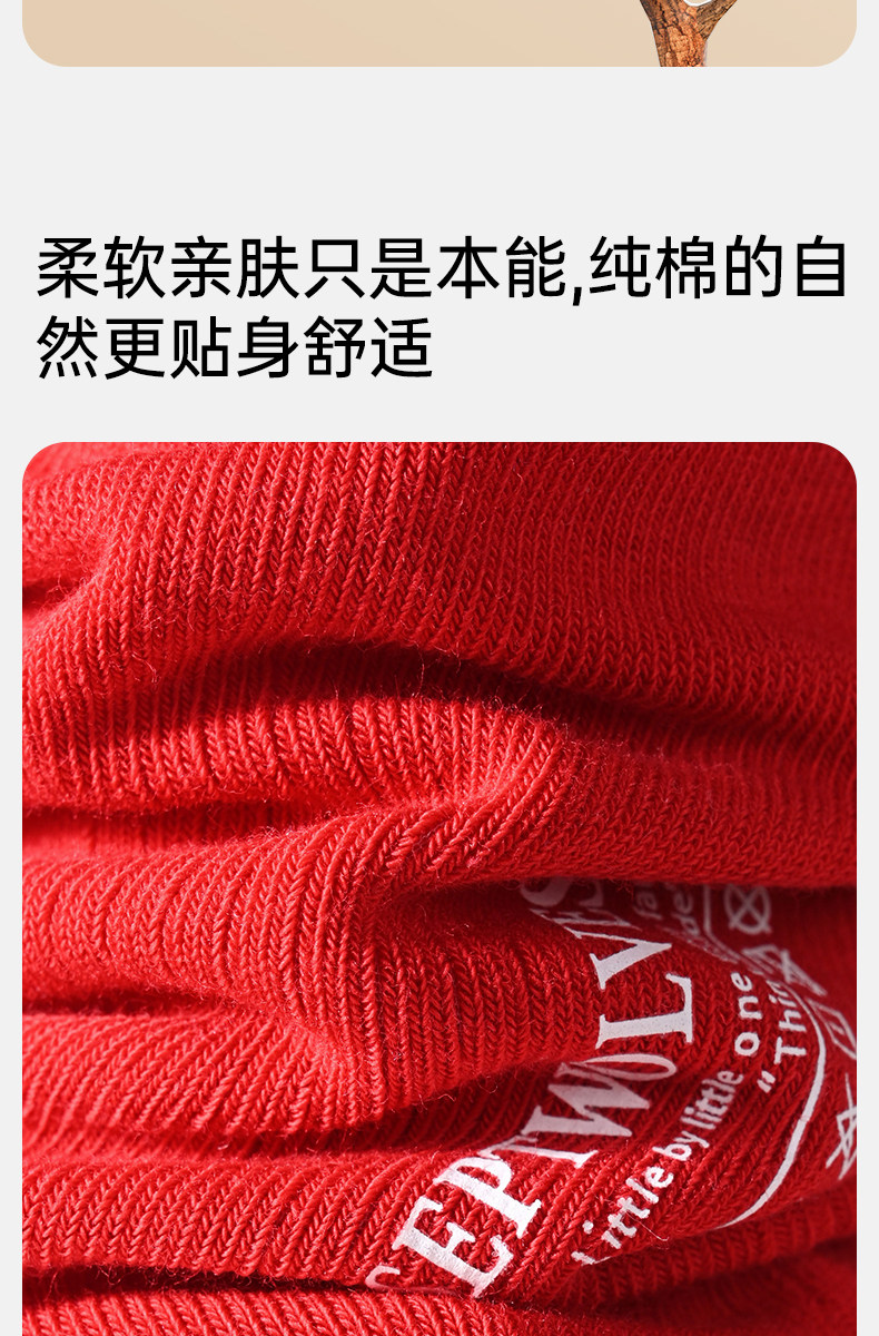 Septwolves Zodiac Year Socks Men's Short Socks Red Pure Cotton Socks Men's All-Cotton Anti-Odor Sweat-Absorbing No-Show Socks