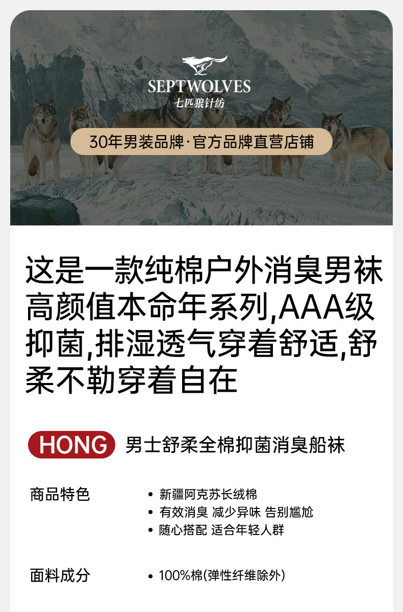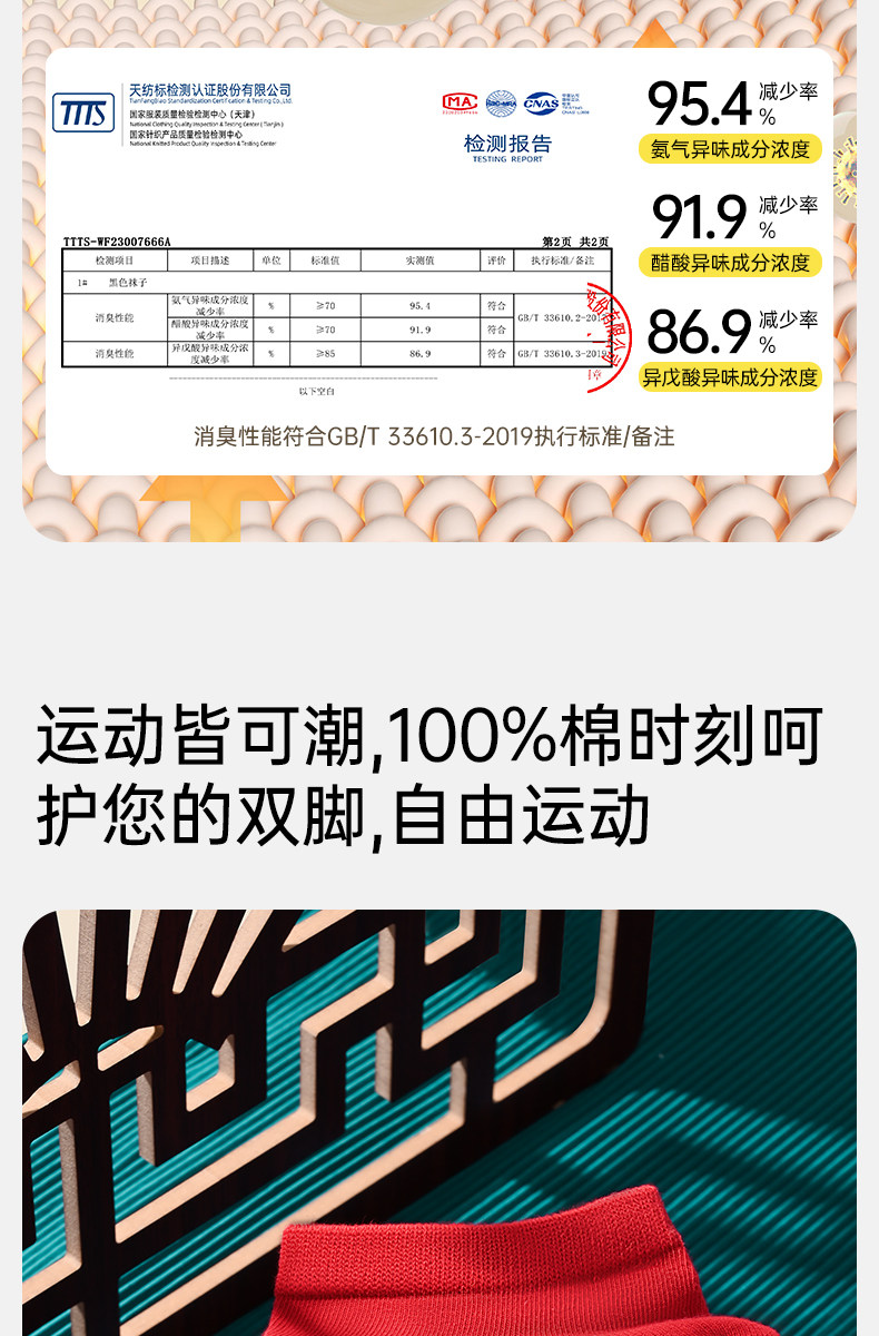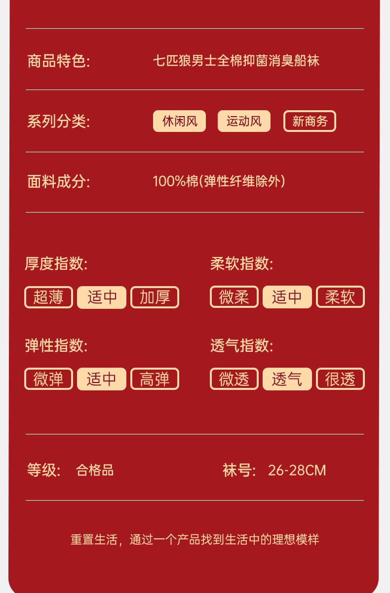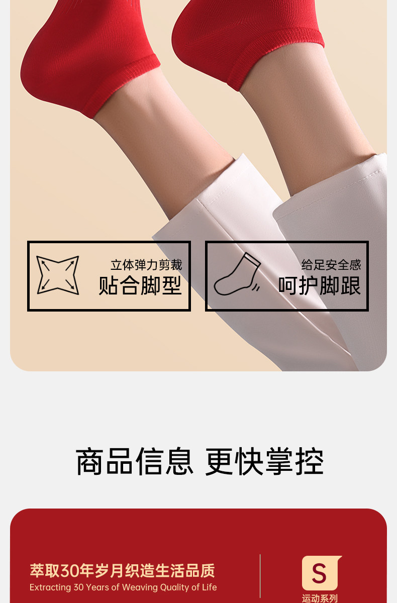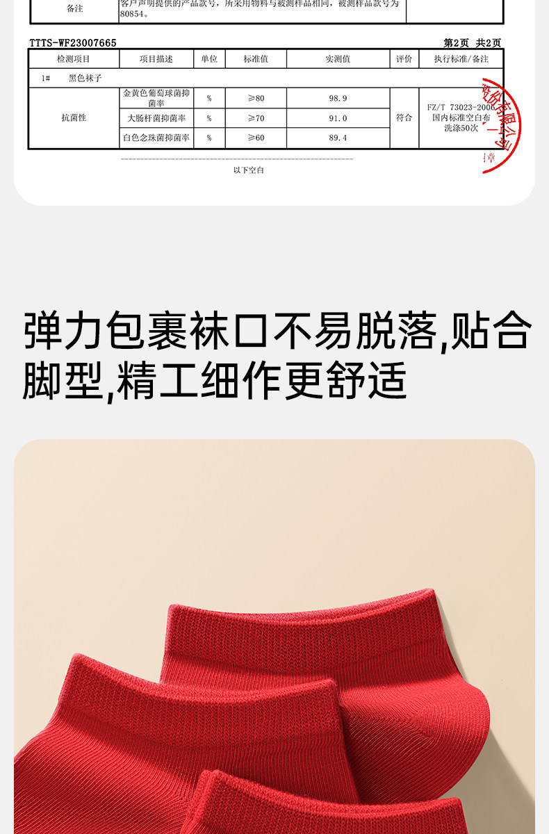 Septwolves Zodiac Year Socks Men's Short Socks Red Pure Cotton Socks Men's All-Cotton Anti-Odor Sweat-Absorbing No-Show Socks
