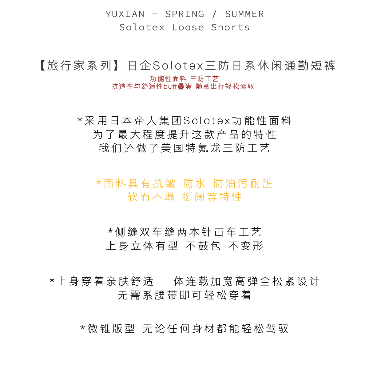 【Solotex "Zero Pressure Shorts】】Japanese Teflon ™ Three-Proof, Anti-Wrinkle, Easy-Care, Loose-Fitting Solid Color Shorts
