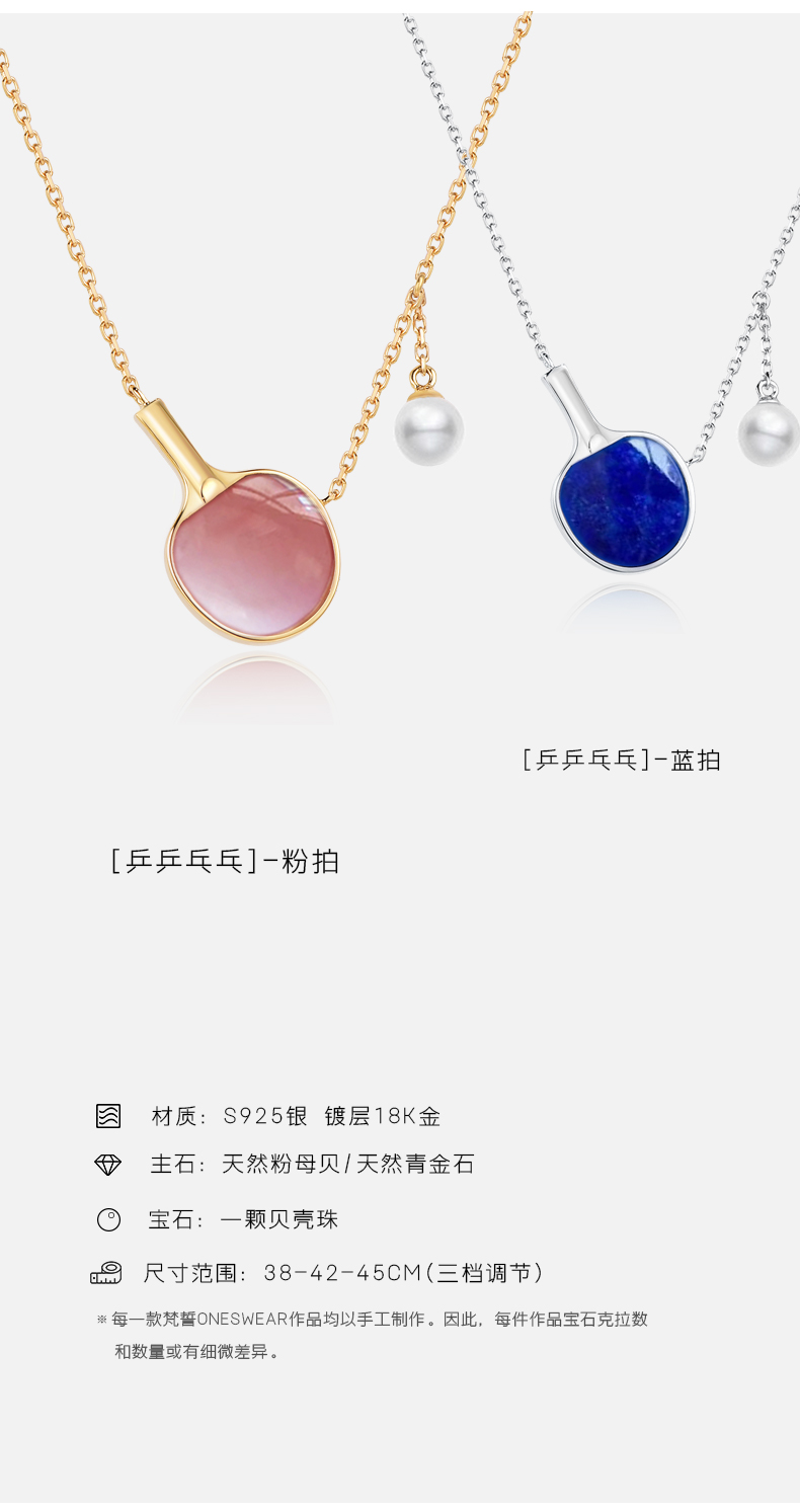 One Swear/Fan Shi Pink Mother-Of-Pearl Table Tennis Necklace for Women, Light Luxury Niche Couple Gift, Sports Style Jewelry