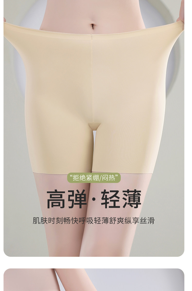 Seamless Ice Silk Safety Shorts for Women, Two-In-One Anti-Exposure, Summer Thin Style, Tummy Control, Butt-Lifting, Non-Curling, Plus Size Leggings