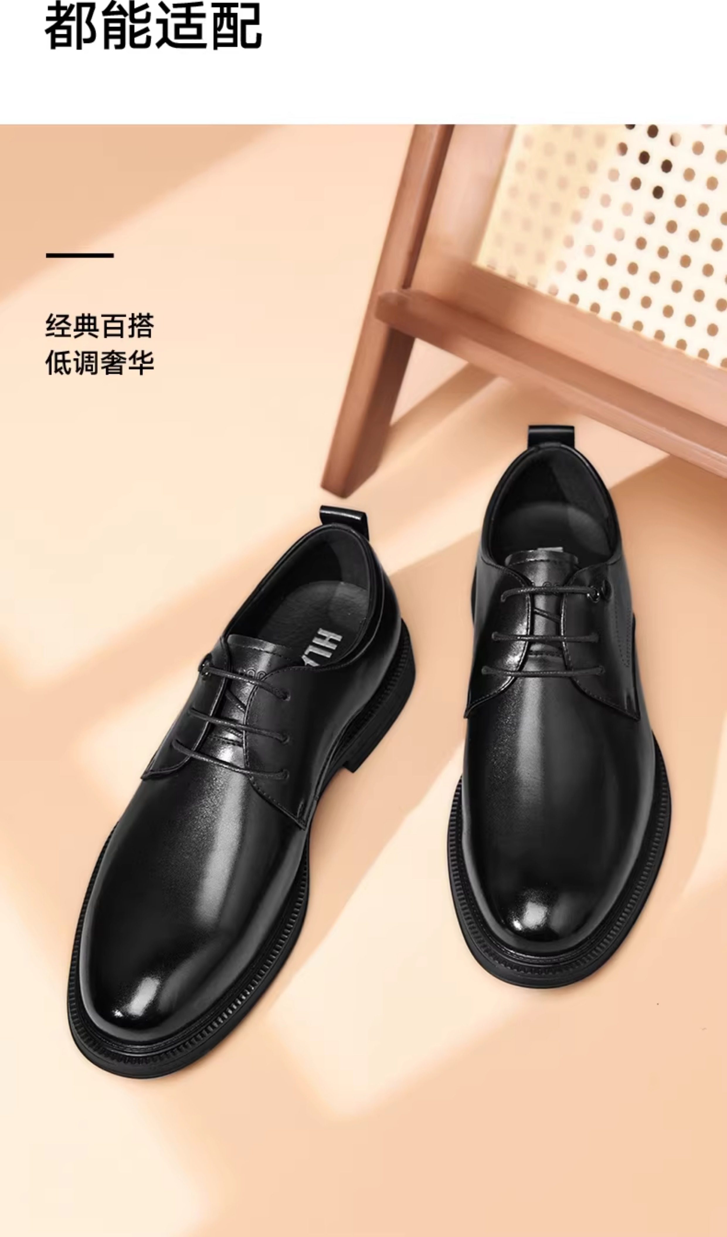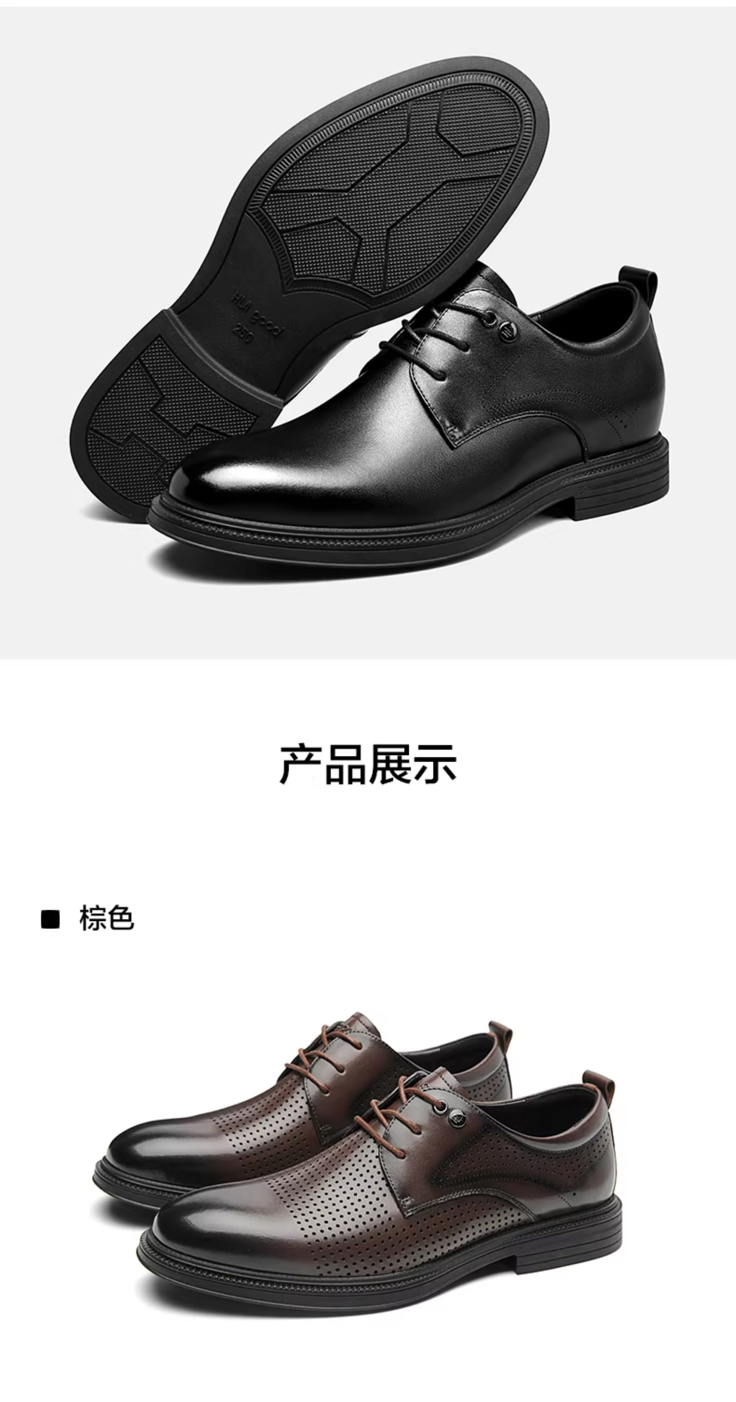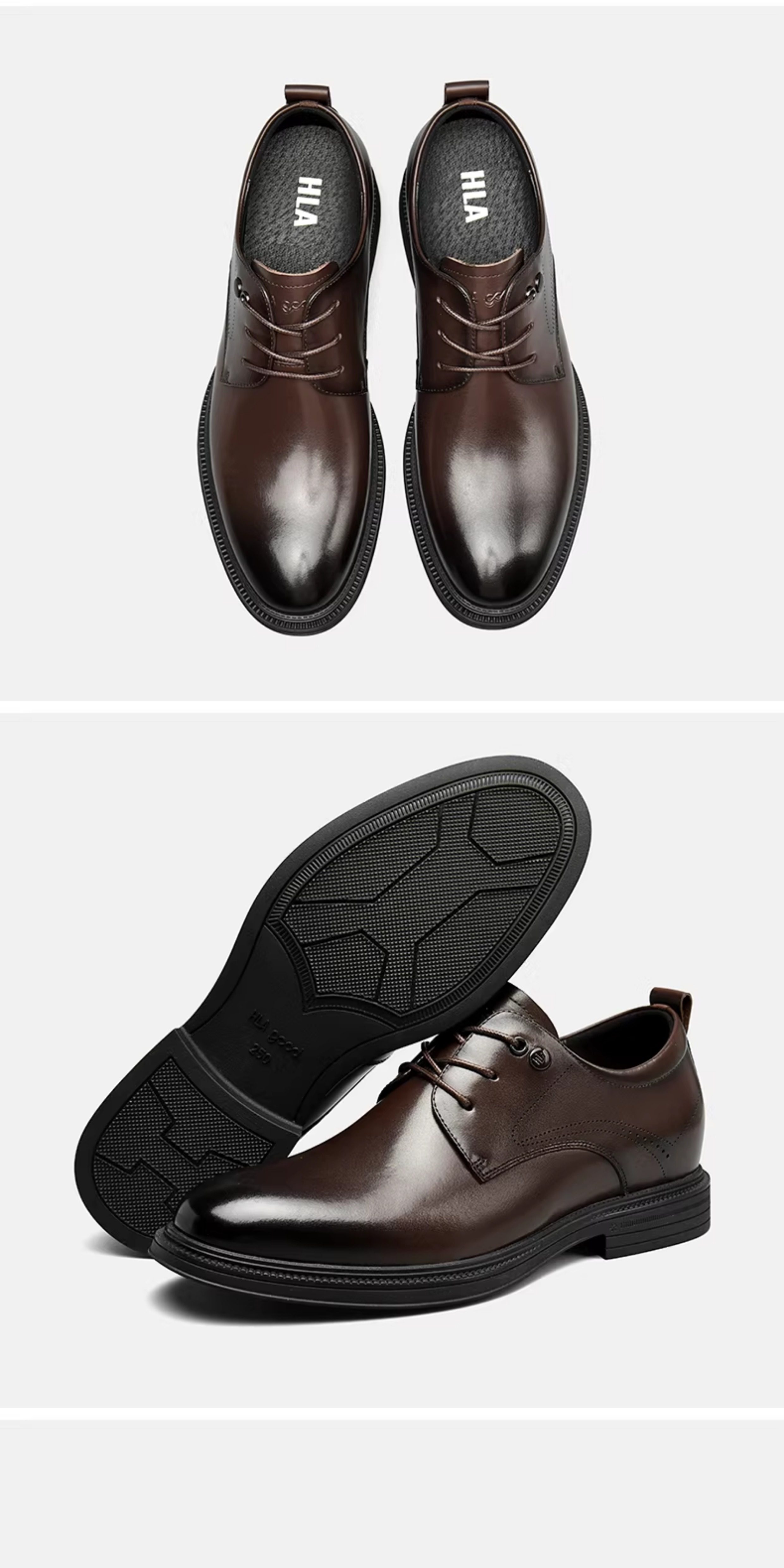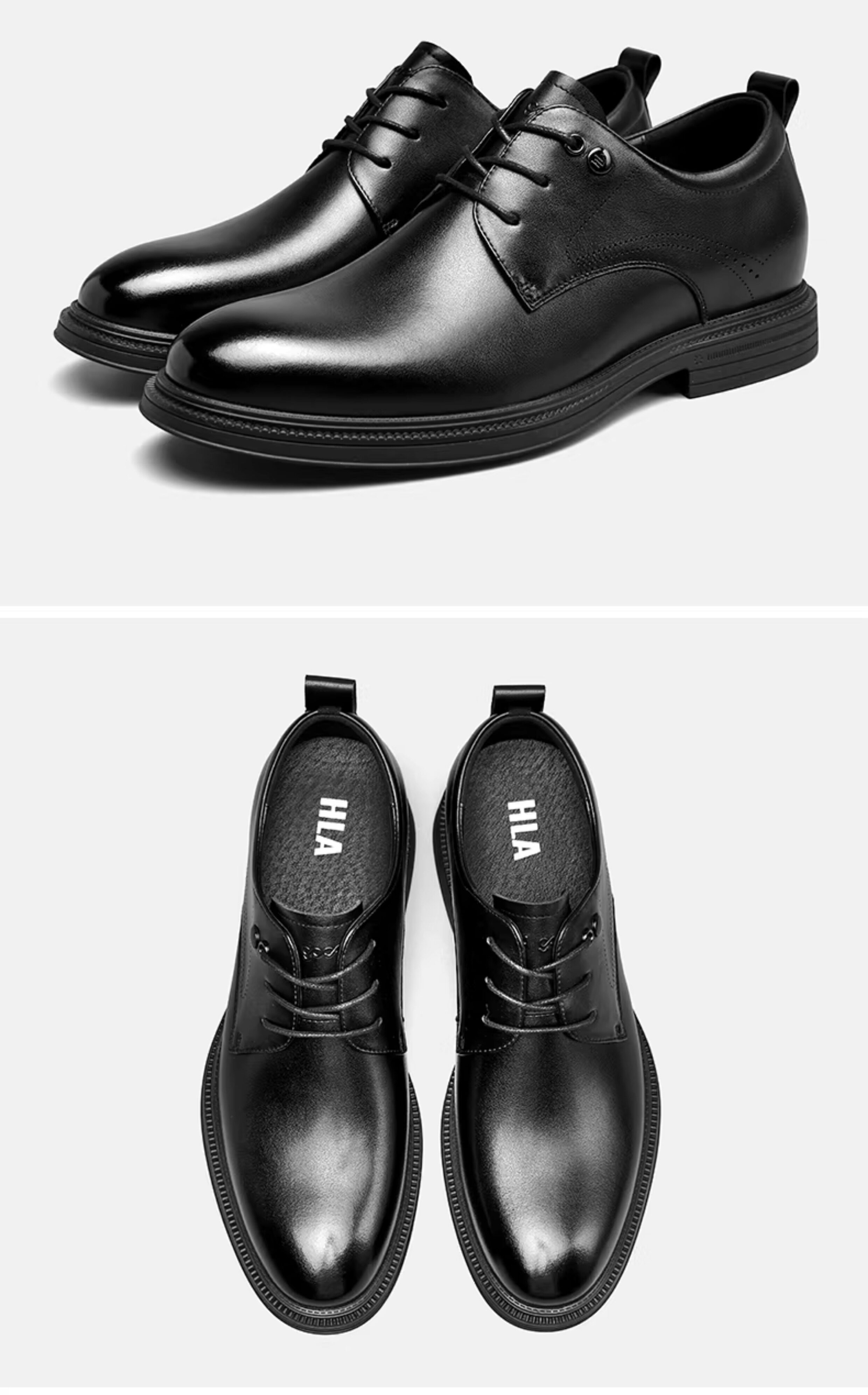 Hla/Hailan Home Men's Leather Shoes New Spring Business Formal Genuine Leather Soft Sole Shoes Height-Increasing Breathable Wedding Shoes