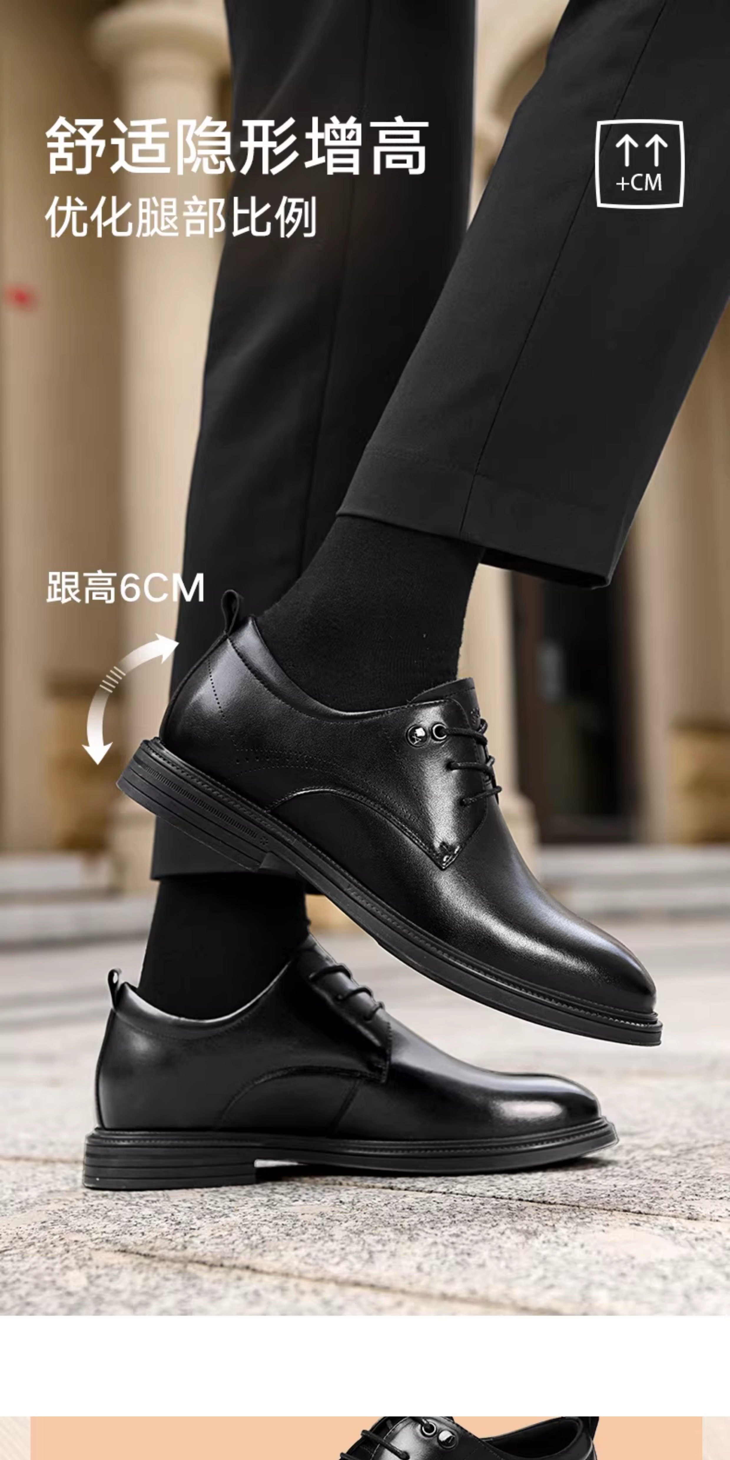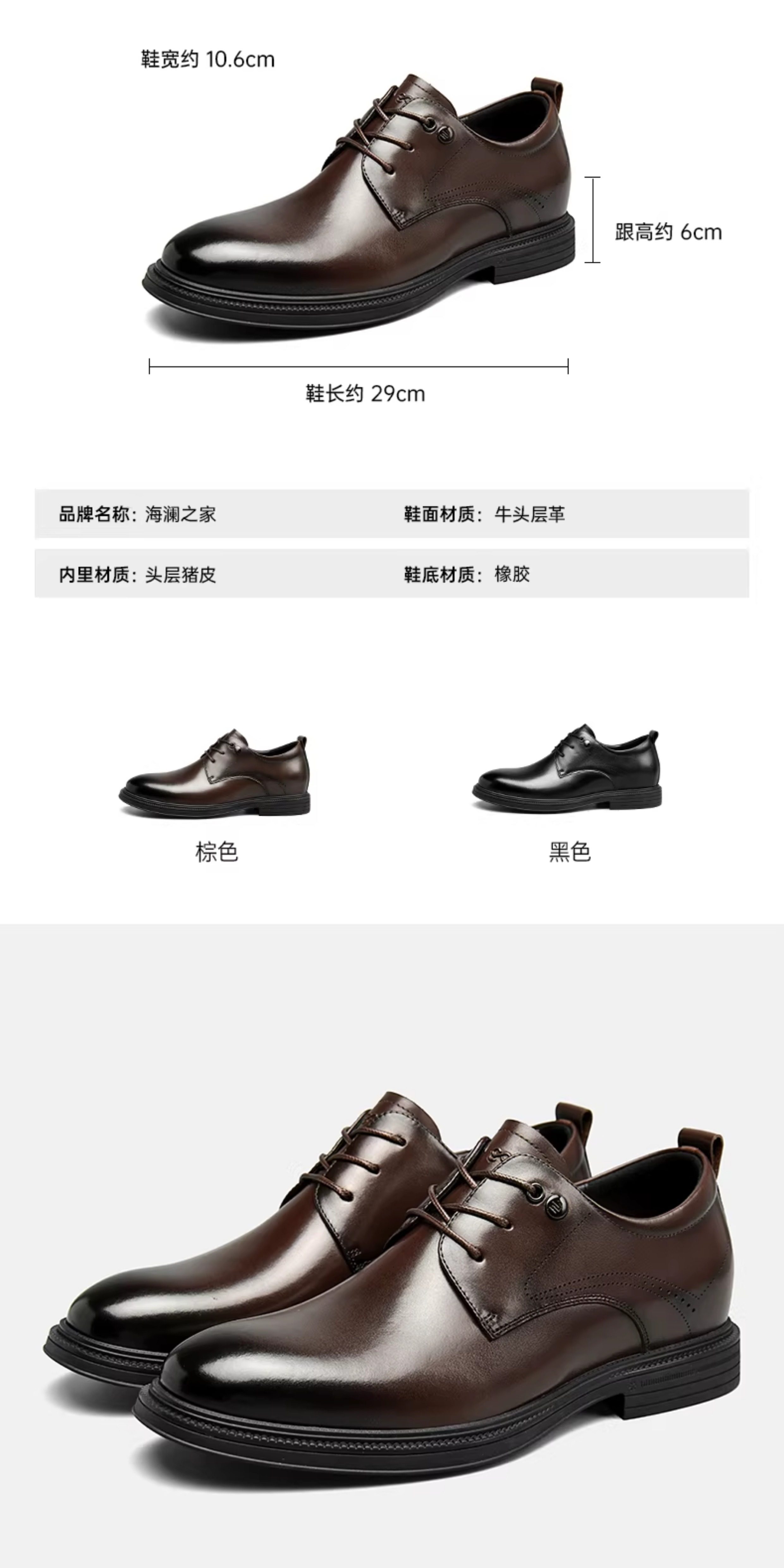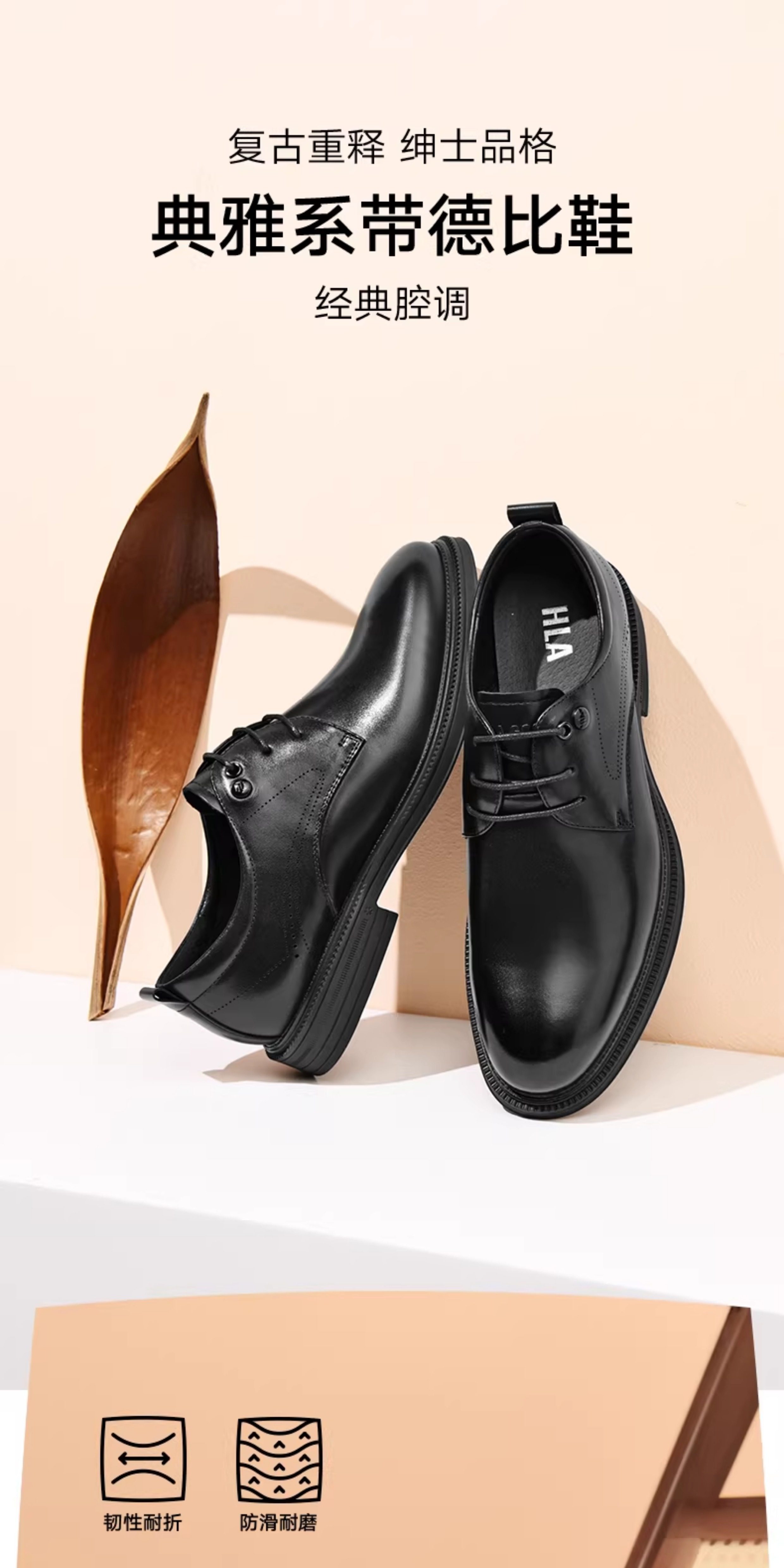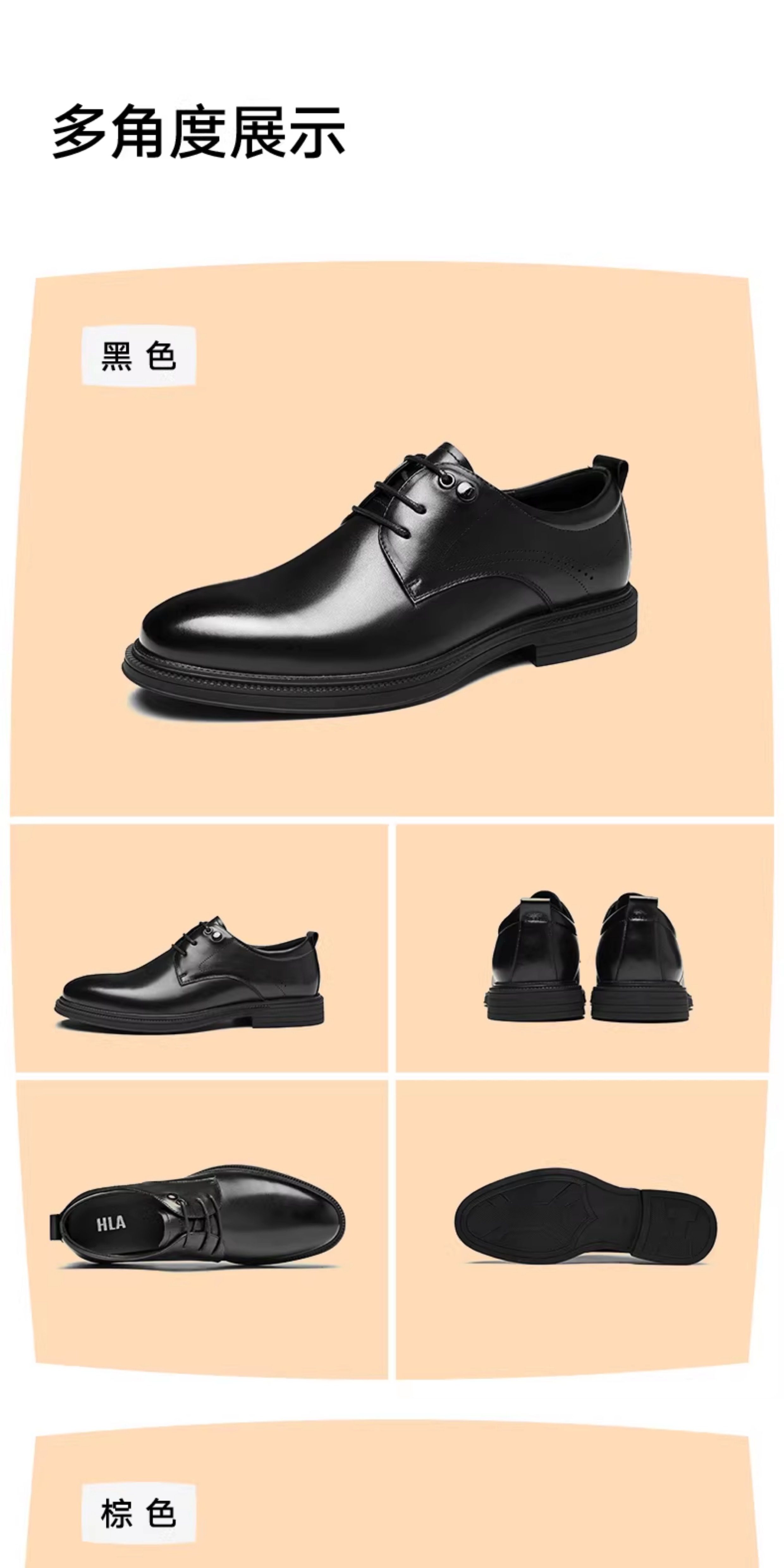 Hla/Hailan Home Men's Leather Shoes New Spring Business Formal Genuine Leather Soft Sole Shoes Height-Increasing Breathable Wedding Shoes