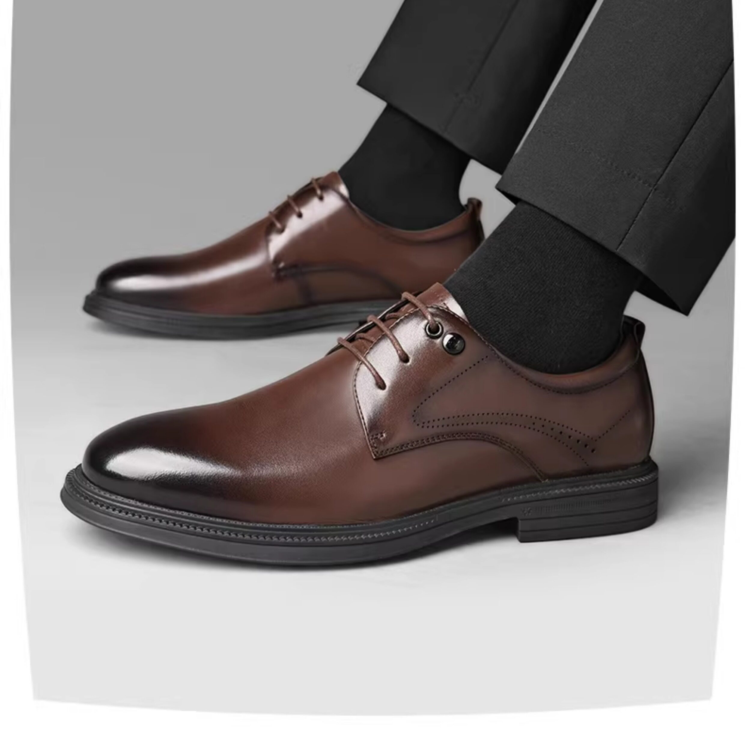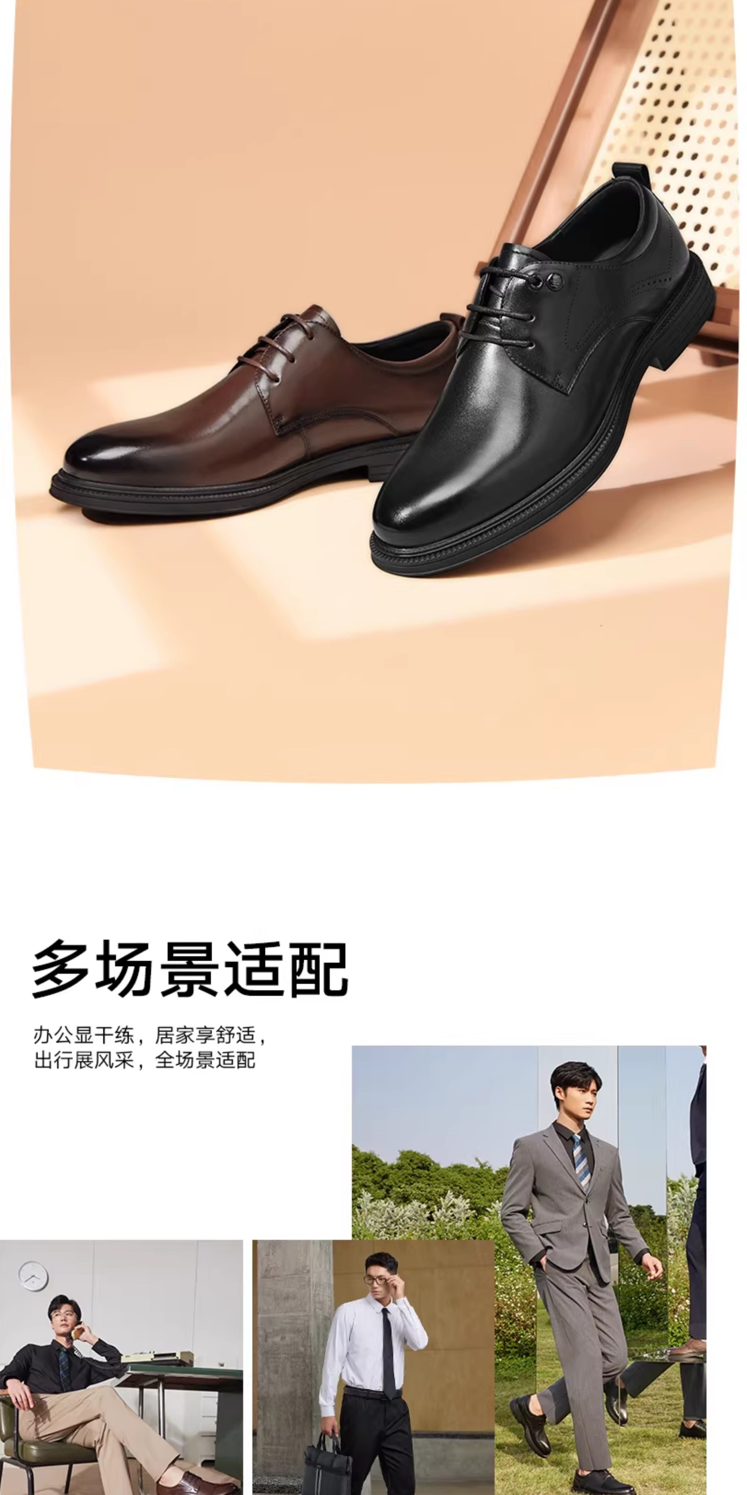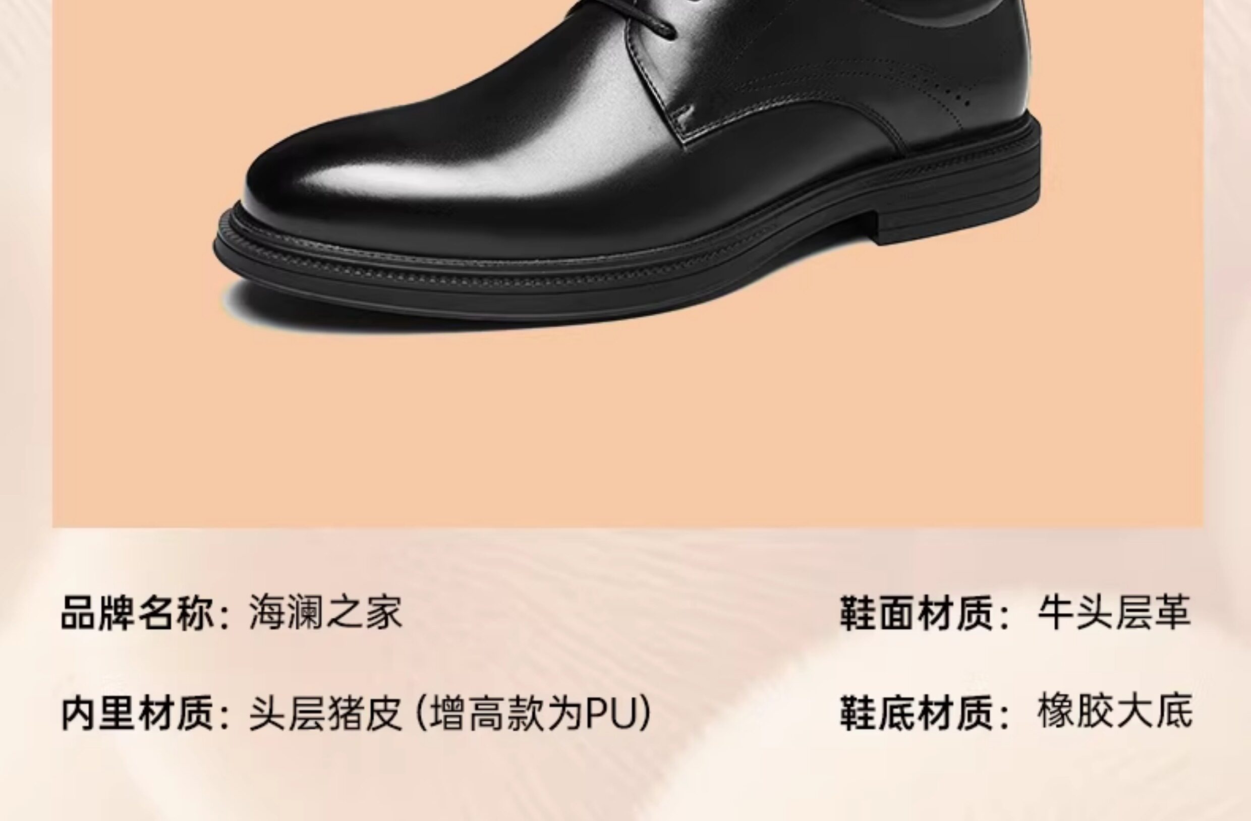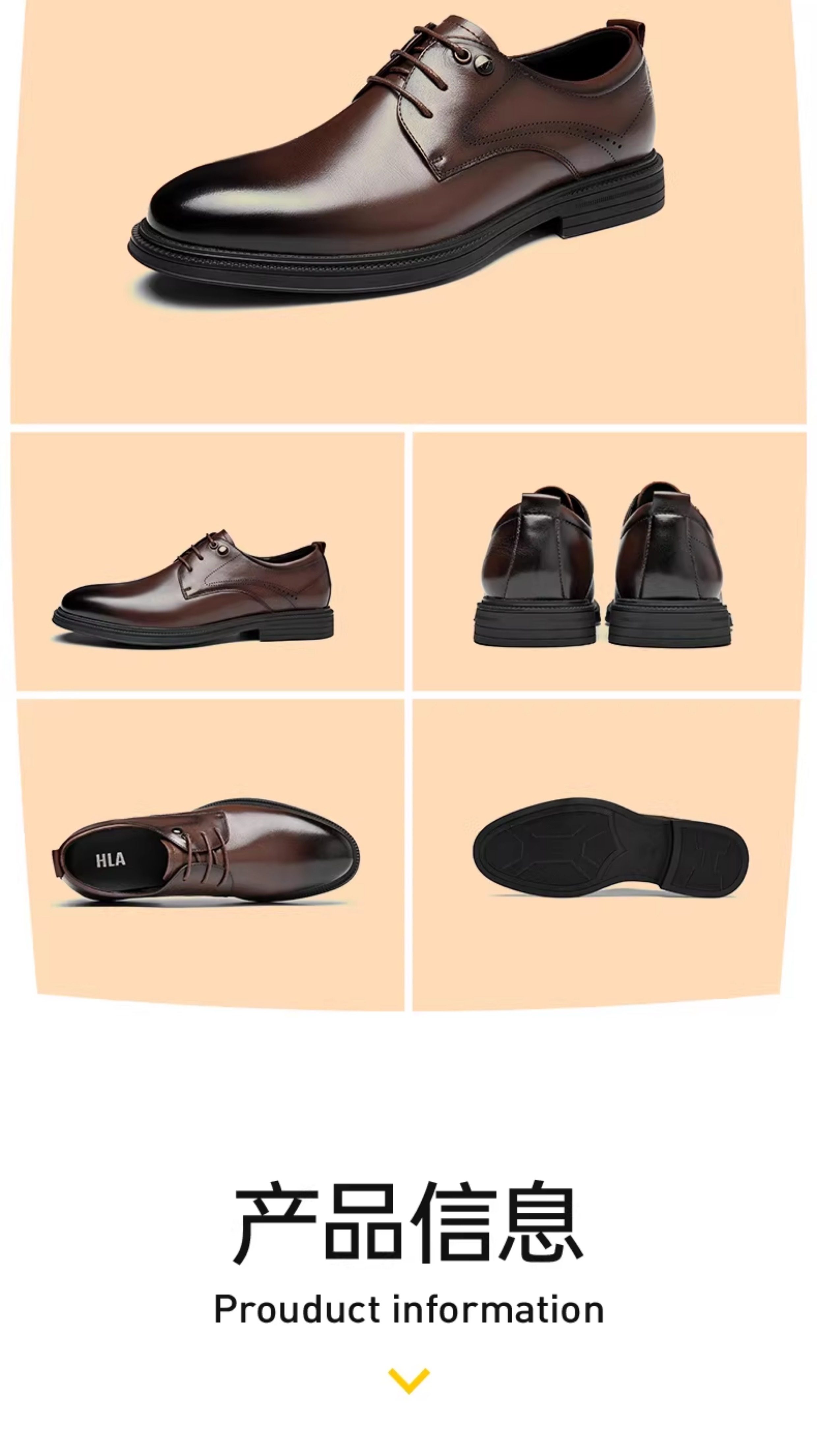Hla/Hailan Home Men's Leather Shoes New Spring Business Formal Genuine Leather Soft Sole Shoes Height-Increasing Breathable Wedding Shoes