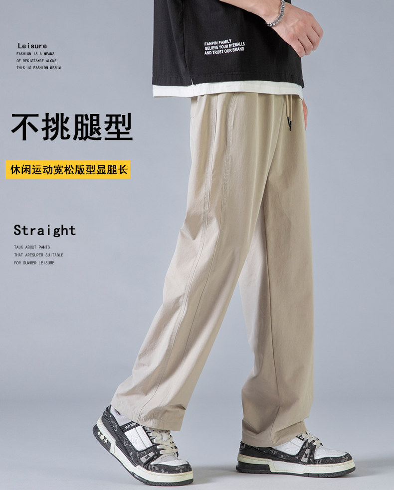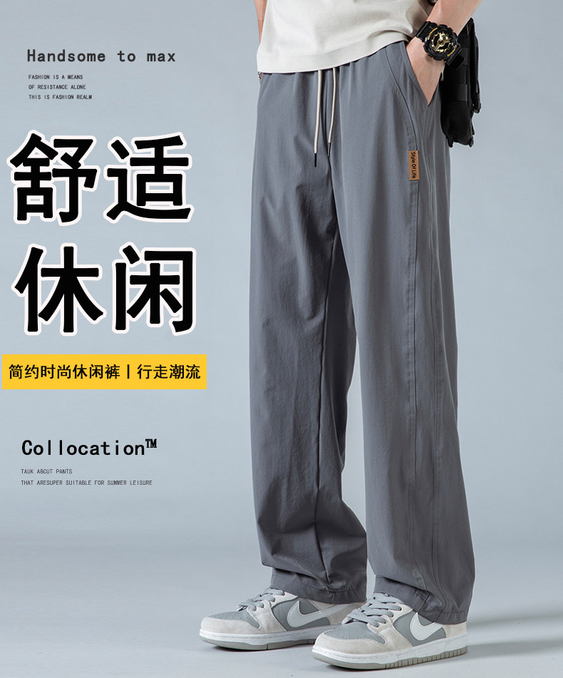 Jeanswest Men's Casual Pants Summer Thin Ice Silk Quick-Dry Pants Loose Straight Trendy Casual Simple Versatile Pants