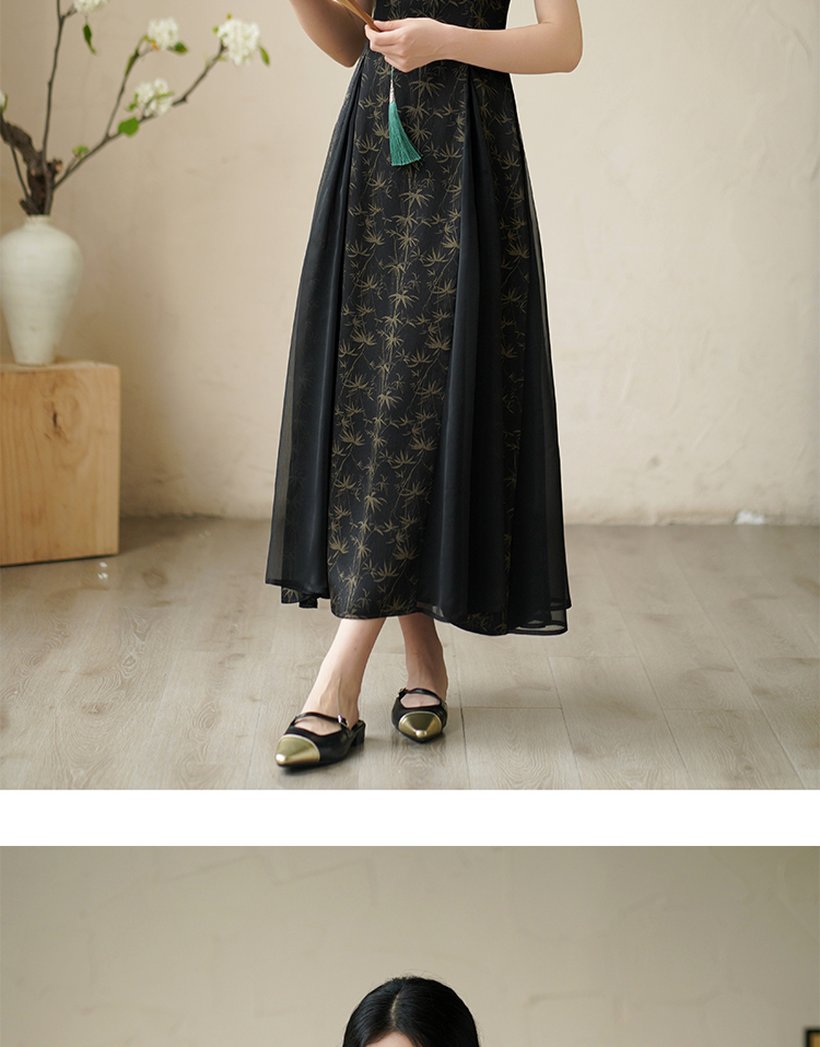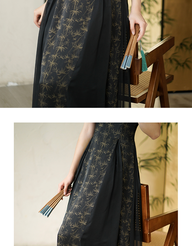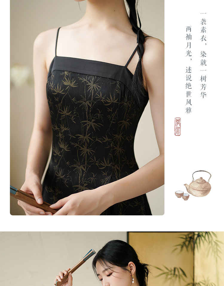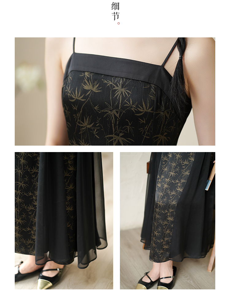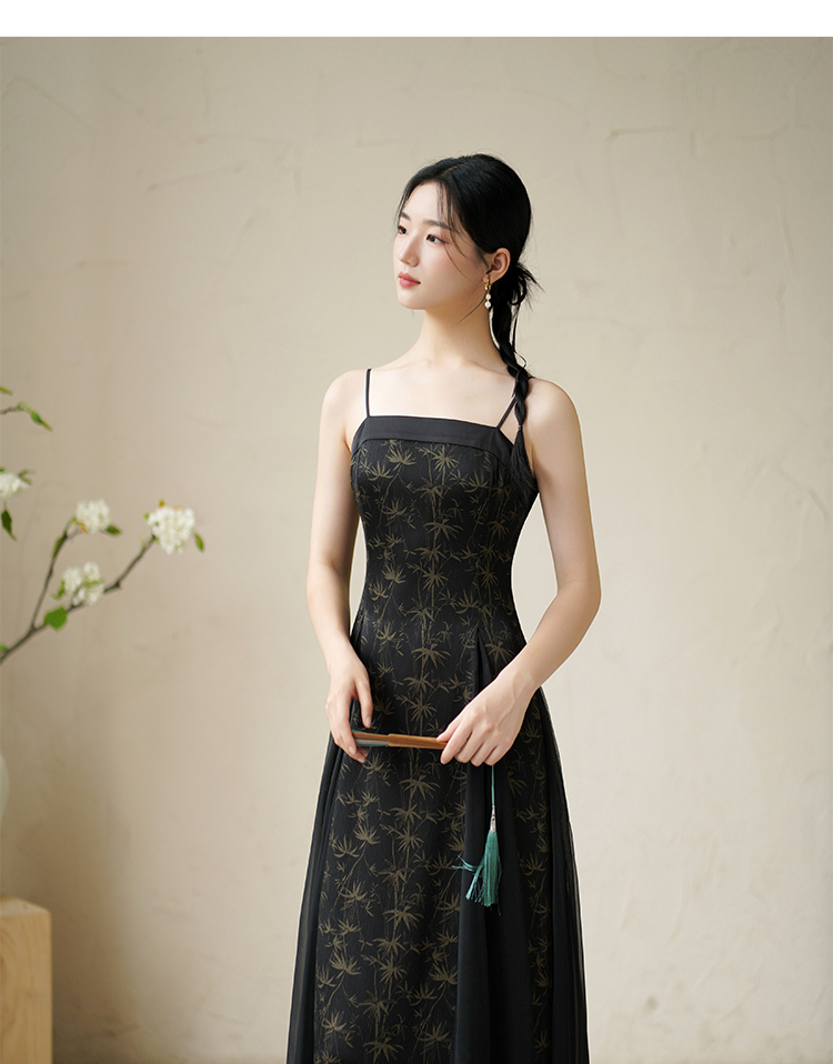 New Chinese-Style Suspender Dress for Women, National Style Hanfu, Three-Layer Gold Foil Print, Textured Tube Top Long Dress