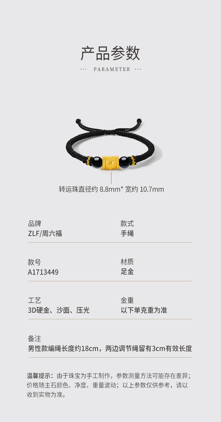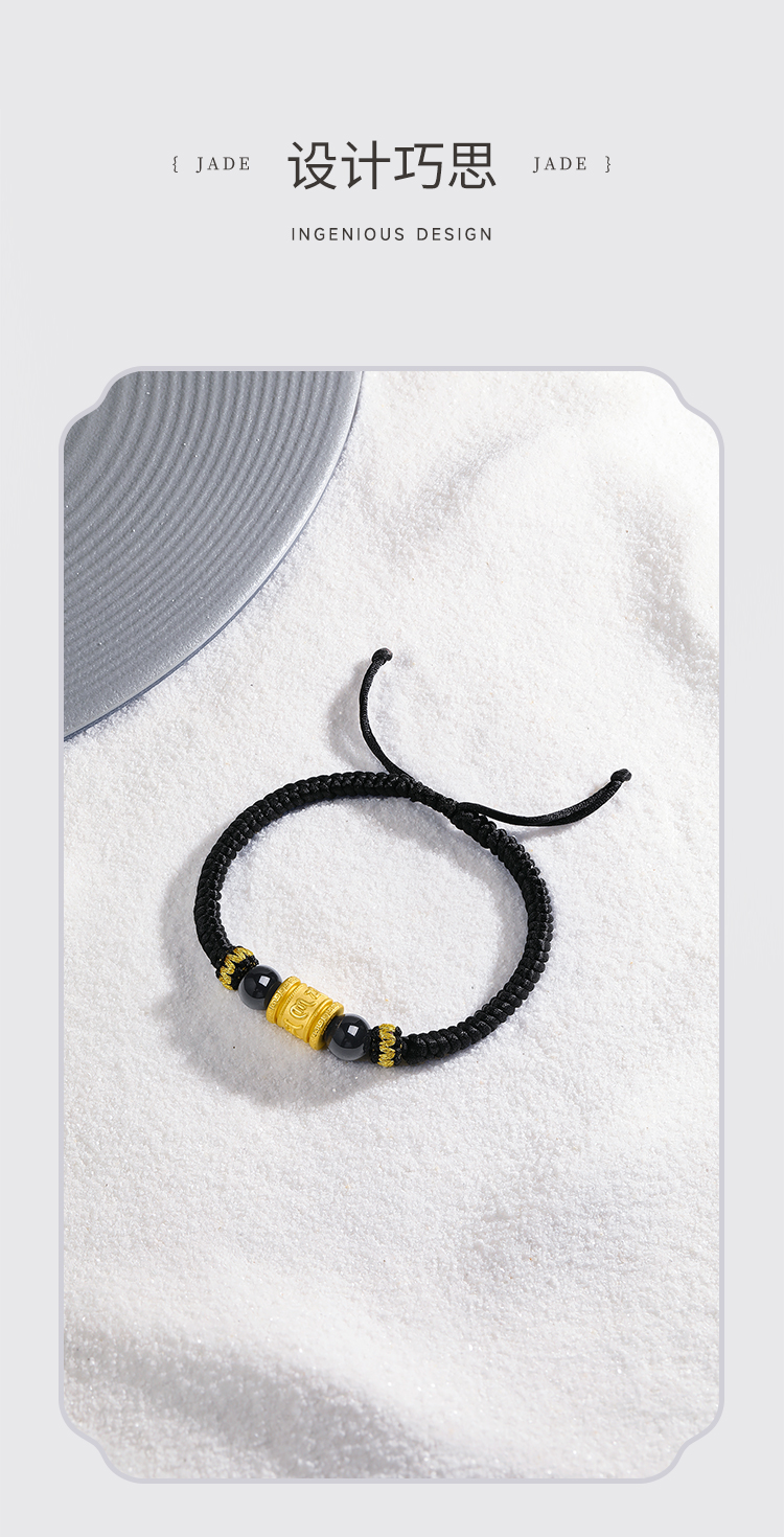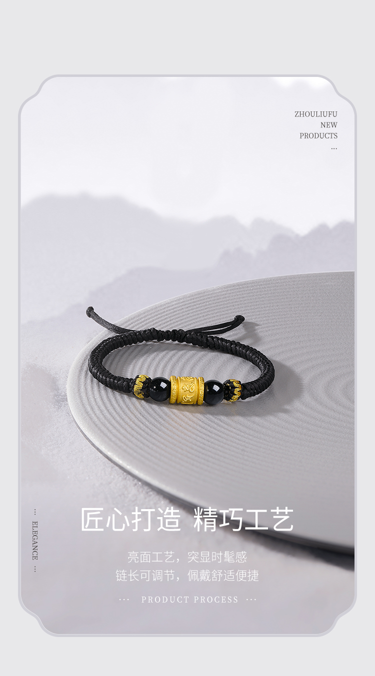 Zhou Liufu 3d Hard Gold Hand Rope Men's Six-character Truth Agate Sand Noodles Rope Pricing Gold Official Flagship Store