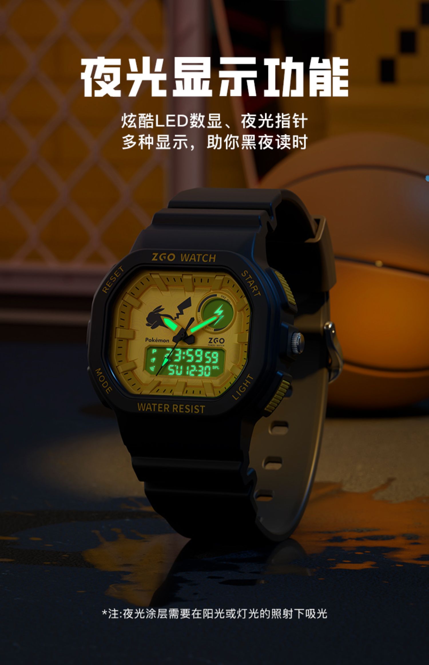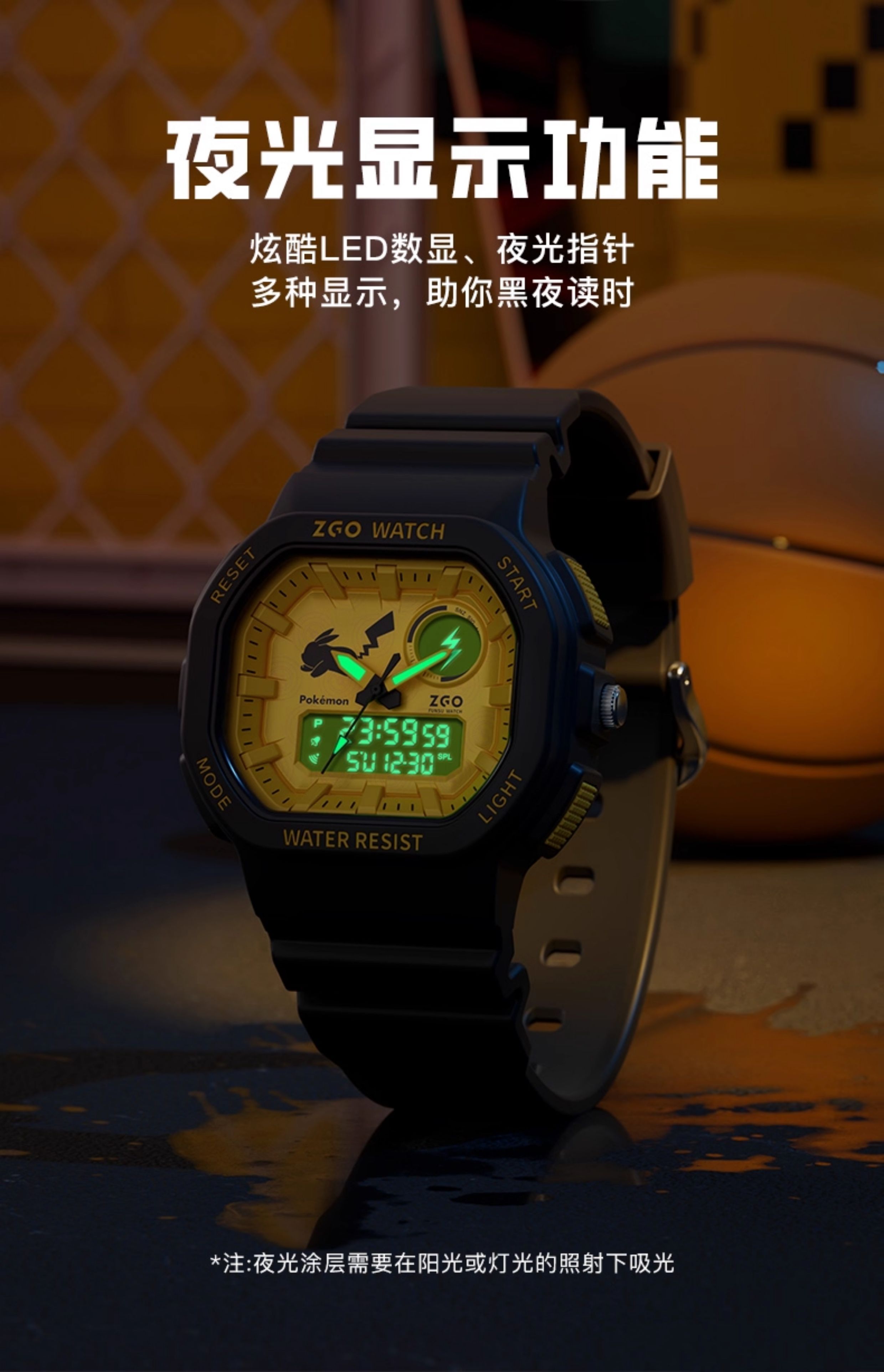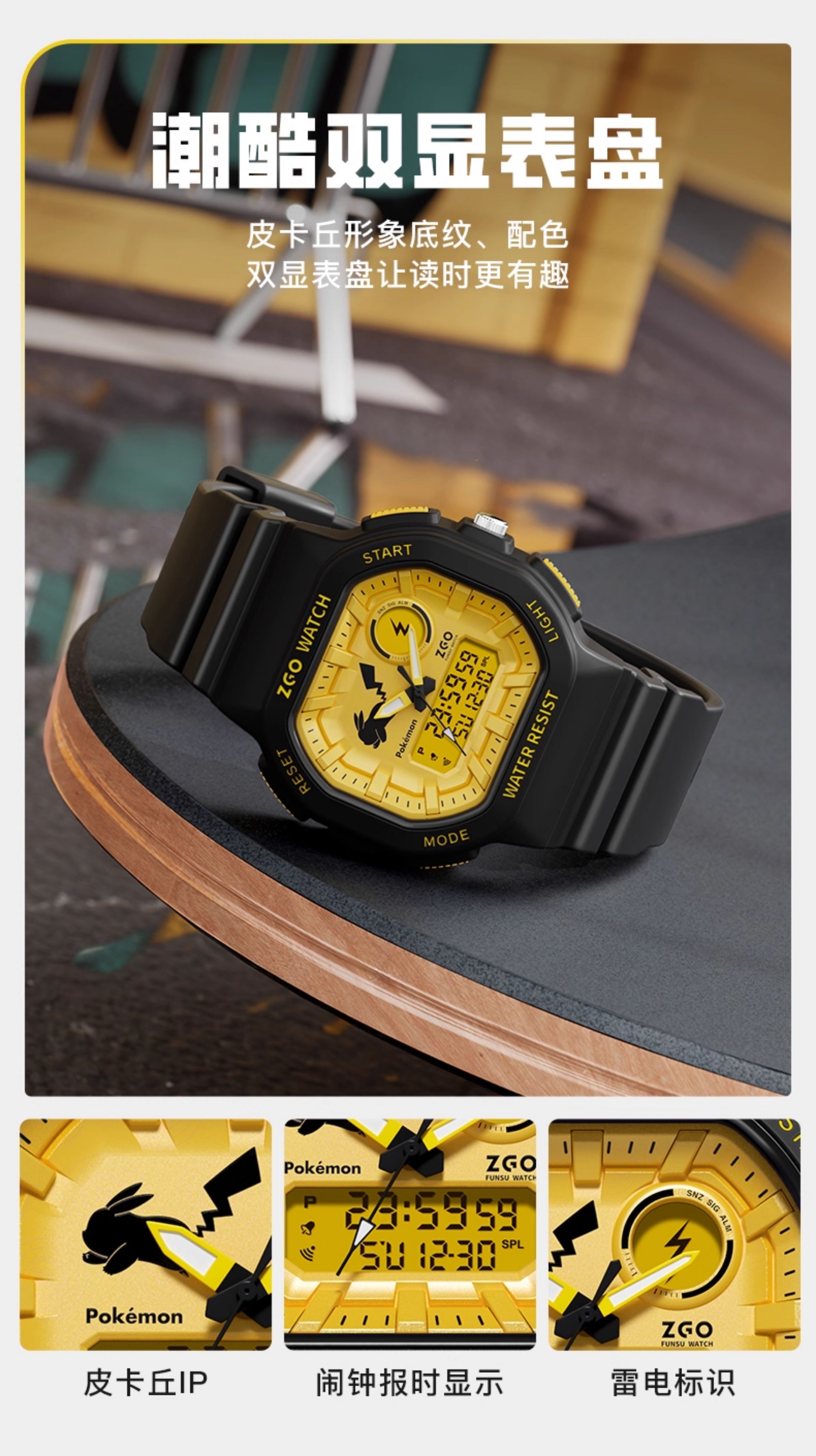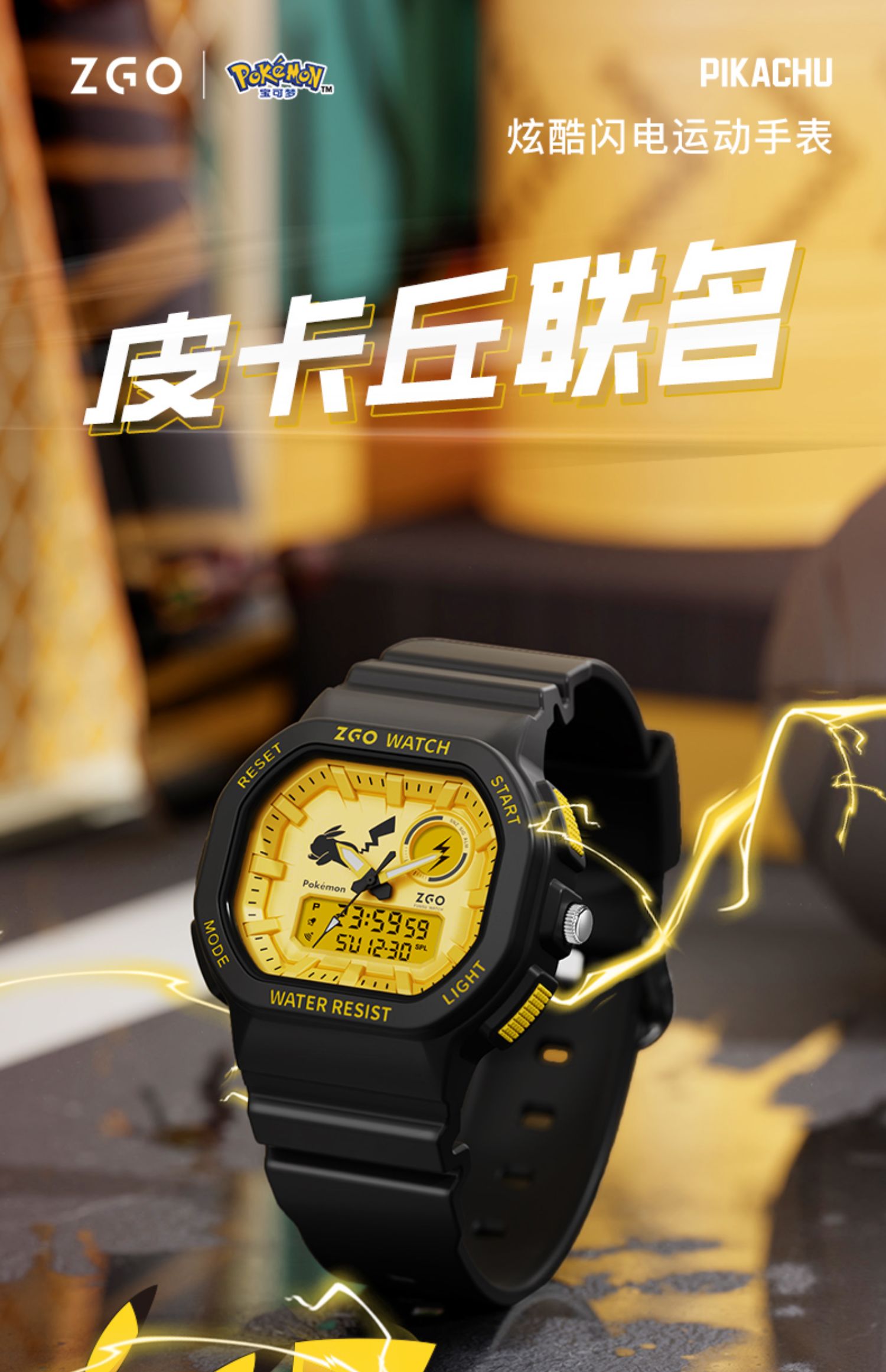 Zgo Genuine Pokémon Pikachu Collaboration Watch for Boys, Elementary School Students, Boys, Children, Boys' Electronic Watch