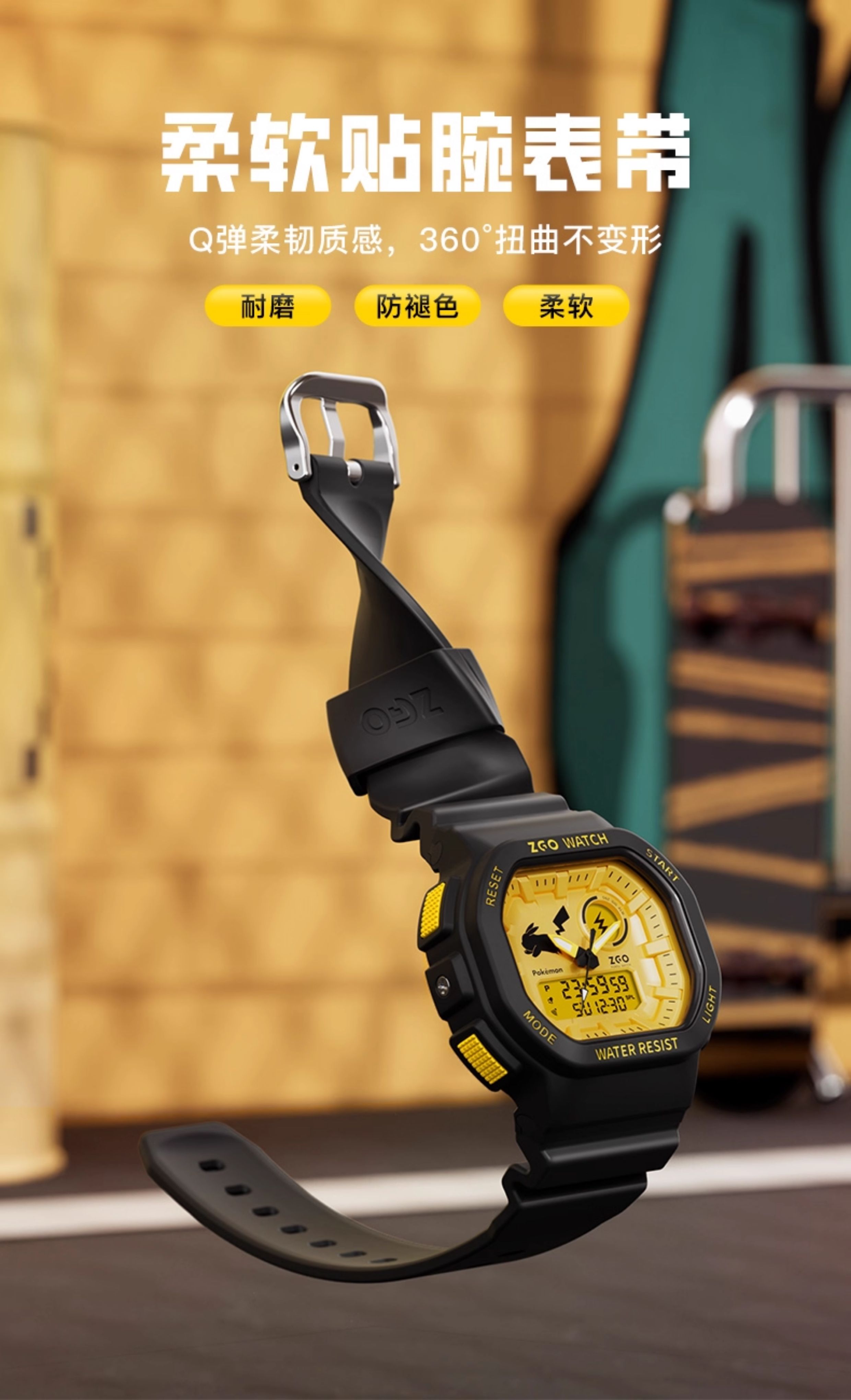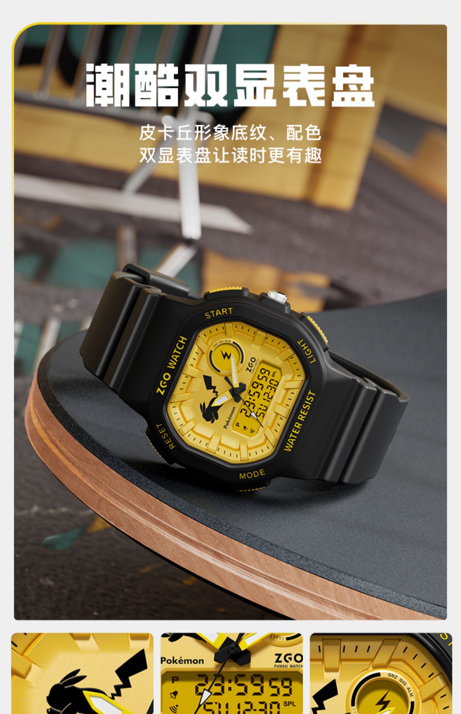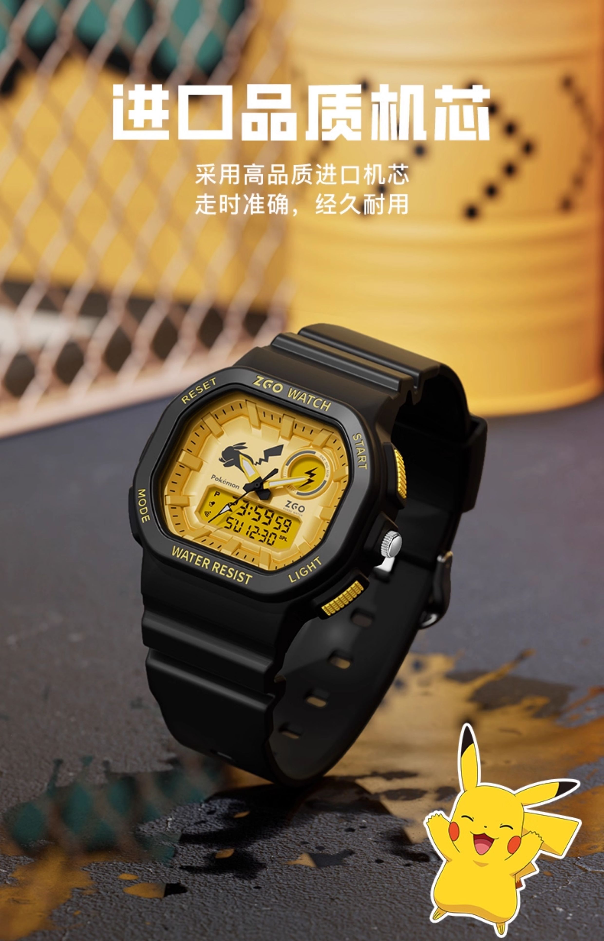 Zgo Genuine Pokémon Pikachu Collaboration Watch for Boys, Elementary School Students, Boys, Children, Boys' Electronic Watch