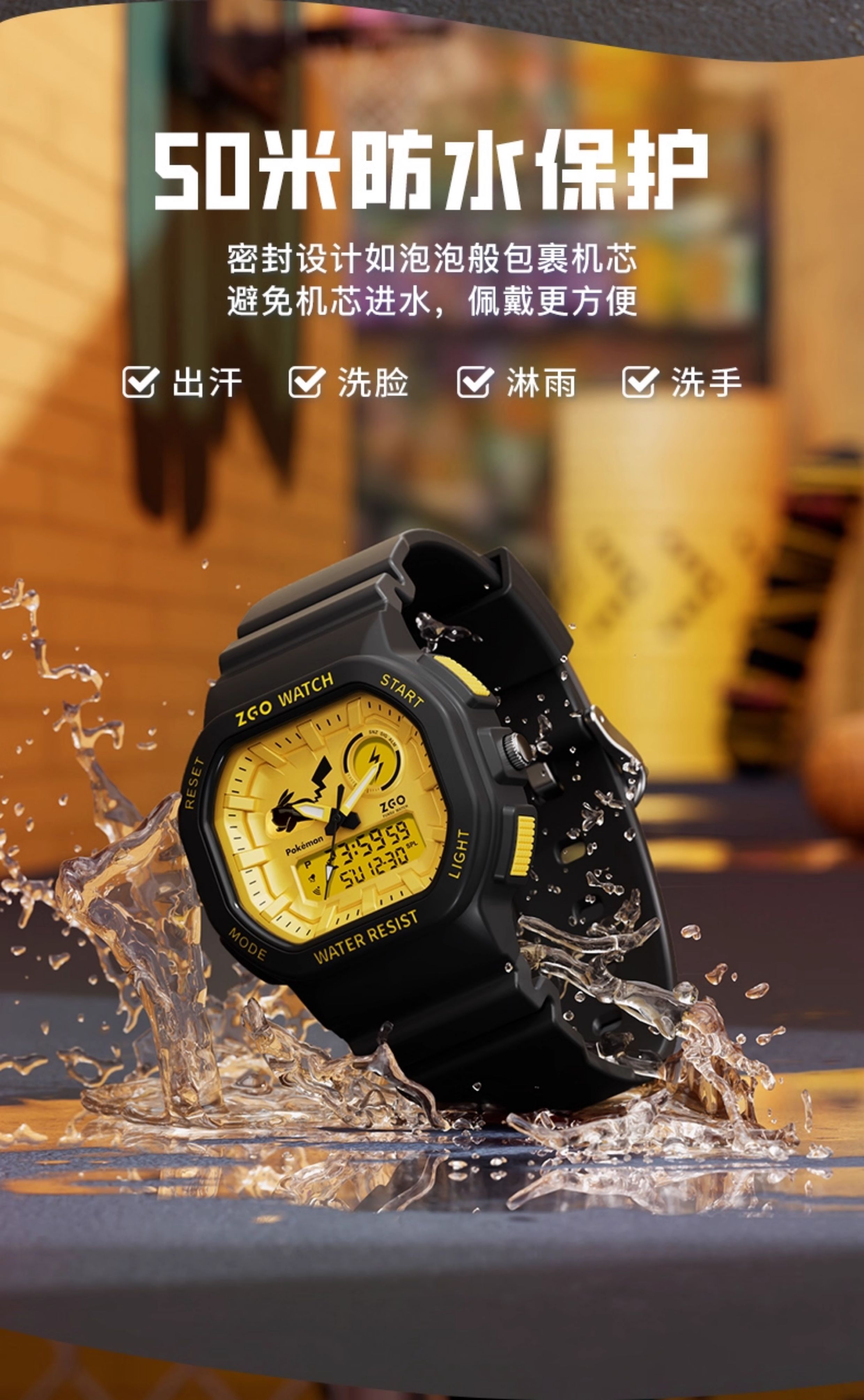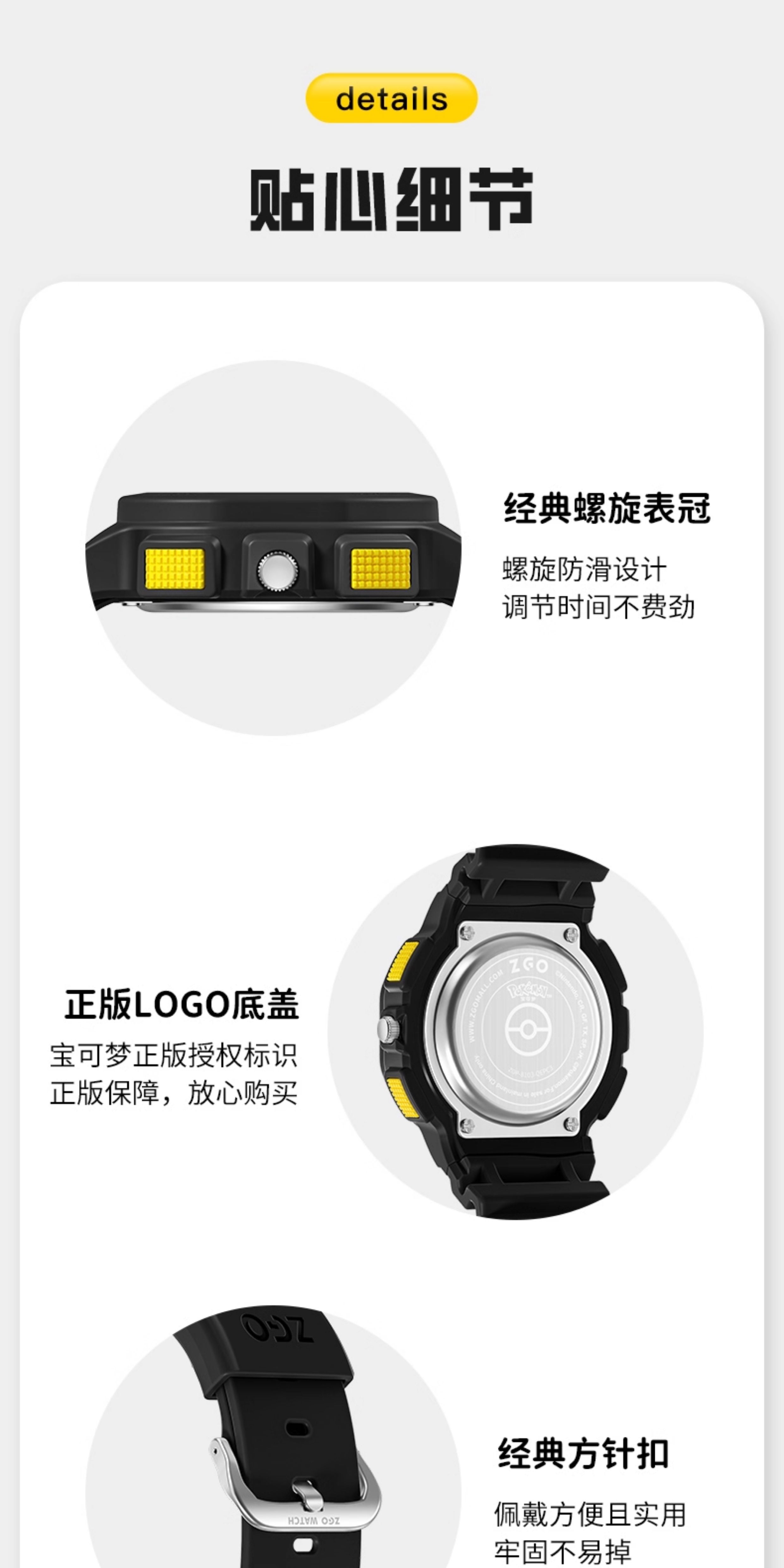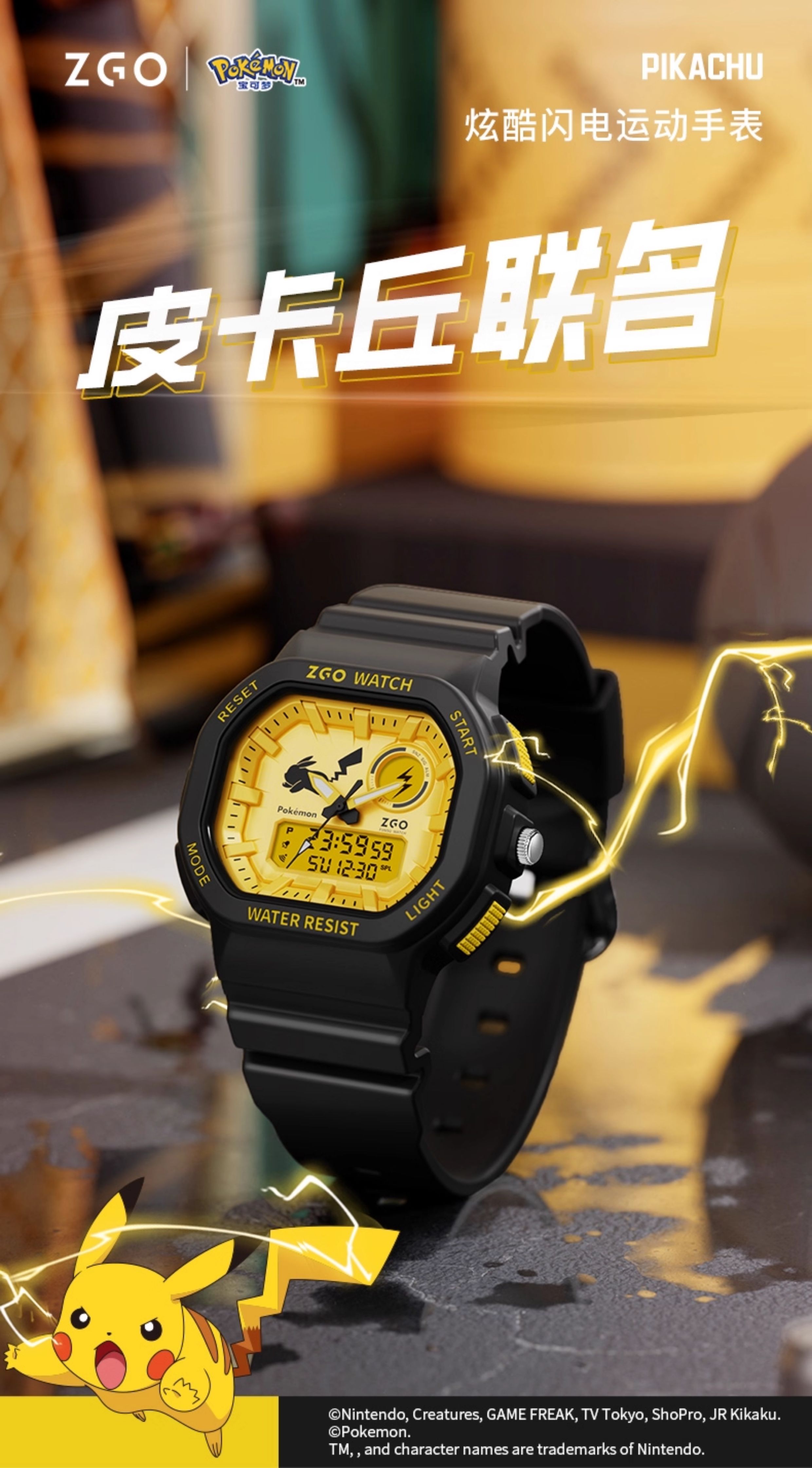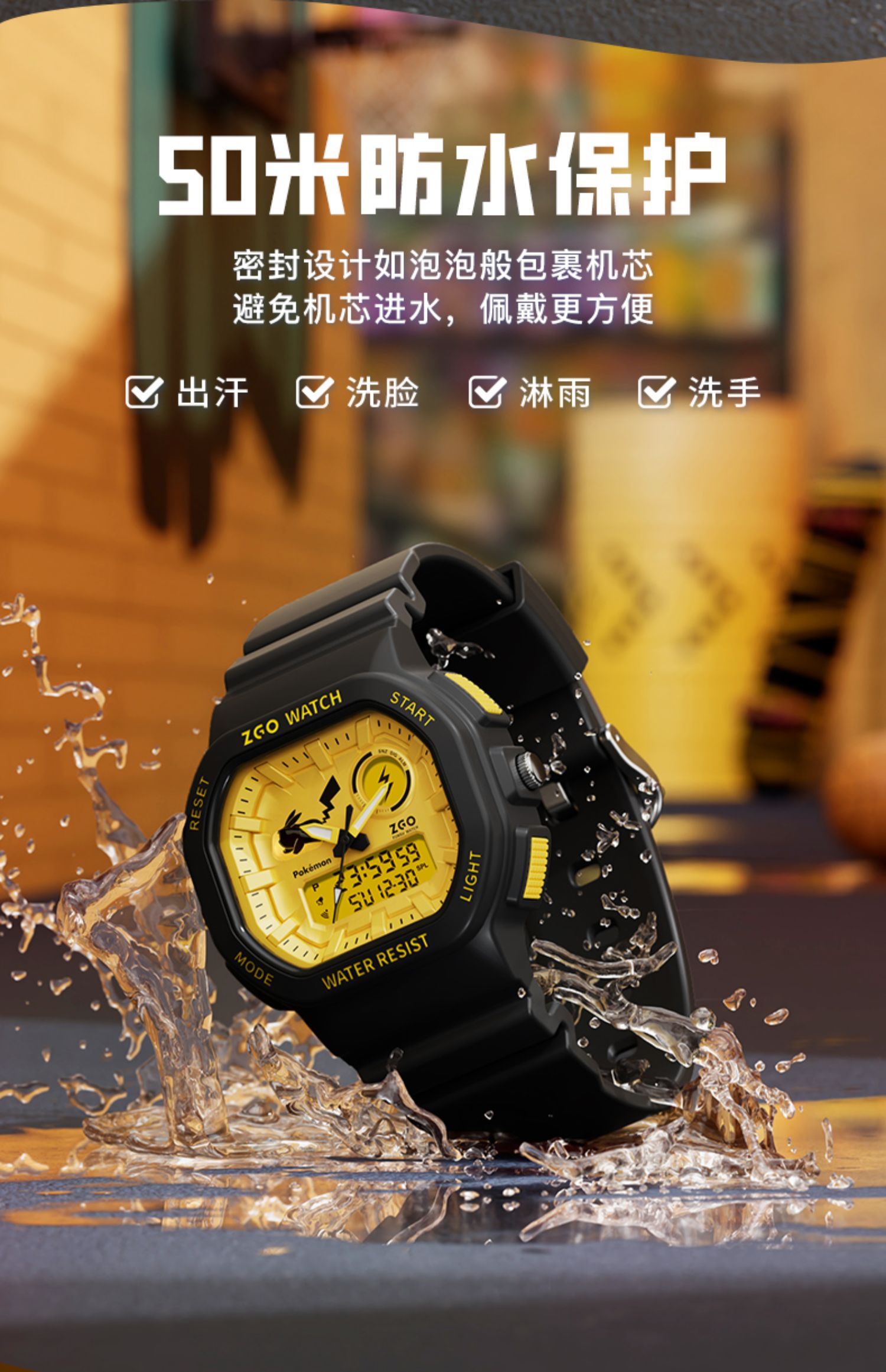 Zgo Genuine Pokémon Pikachu Collaboration Watch for Boys, Elementary School Students, Boys, Children, Boys' Electronic Watch
