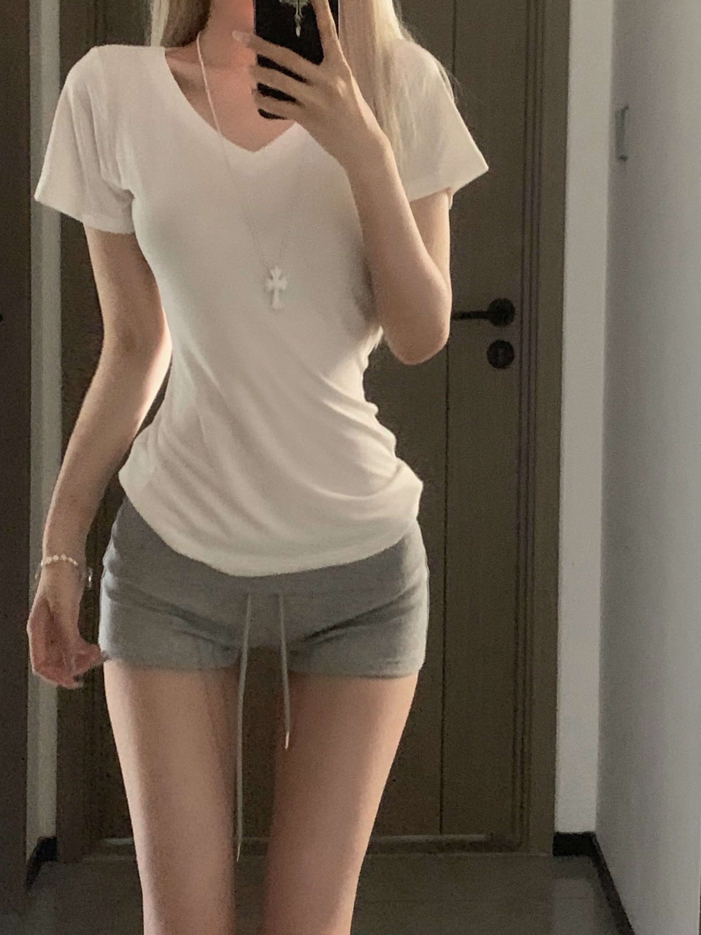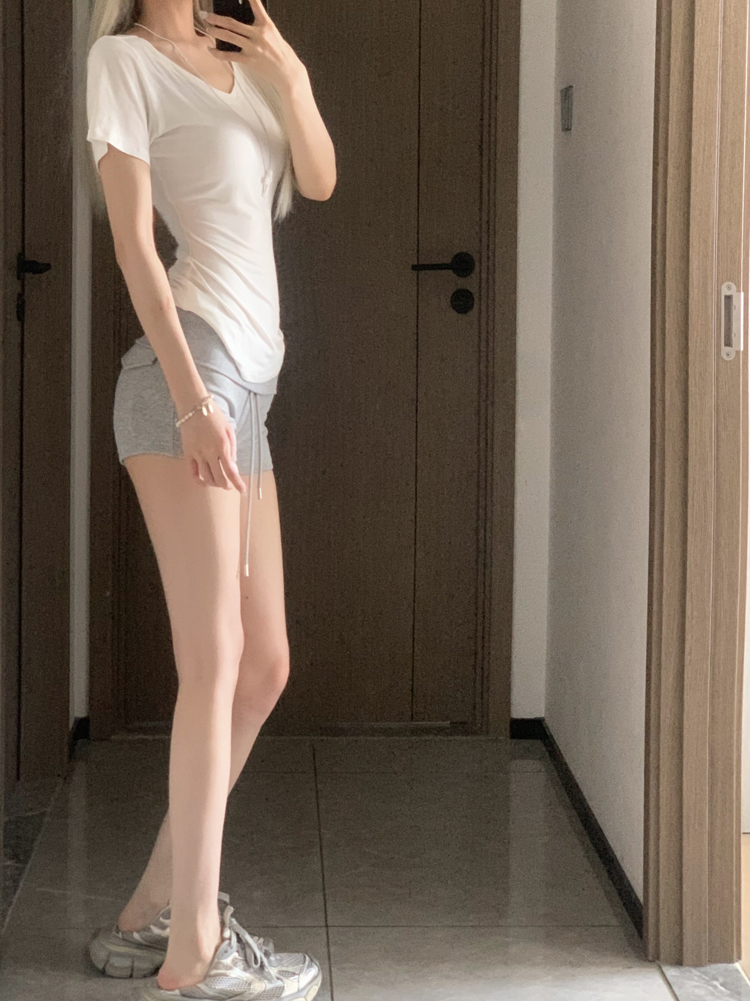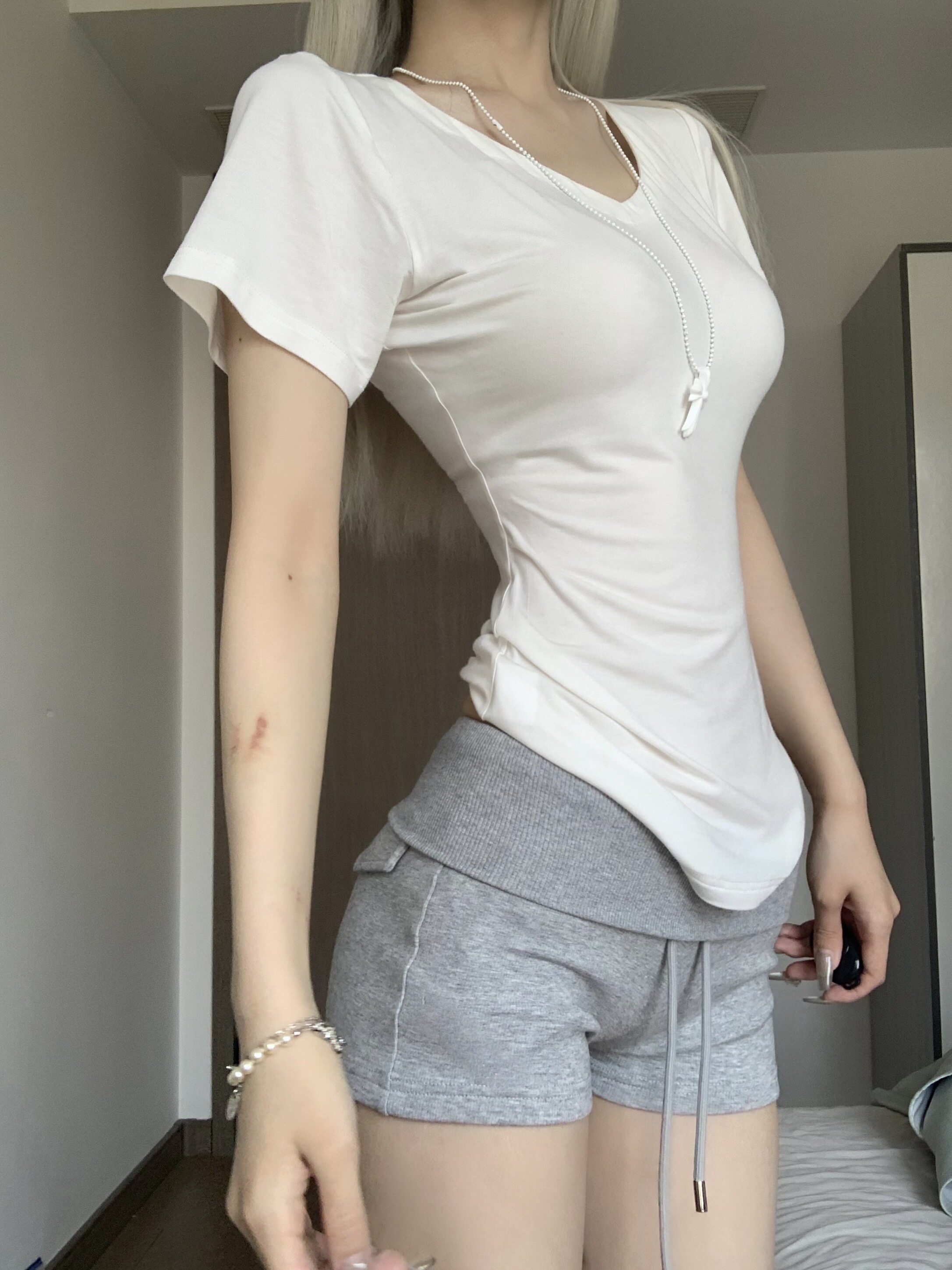 我本来想做个简单点的灰色短裤搭白短袖的