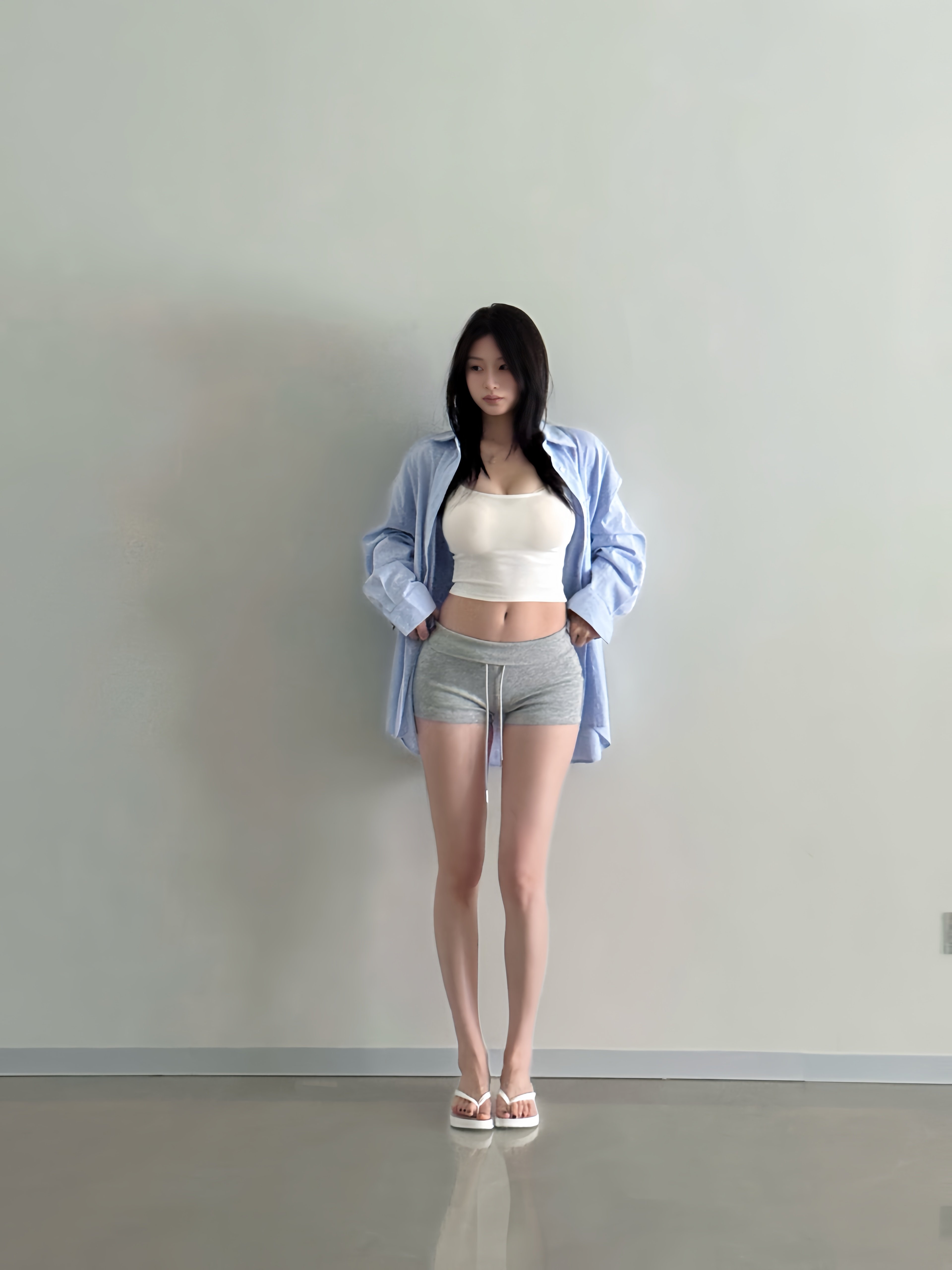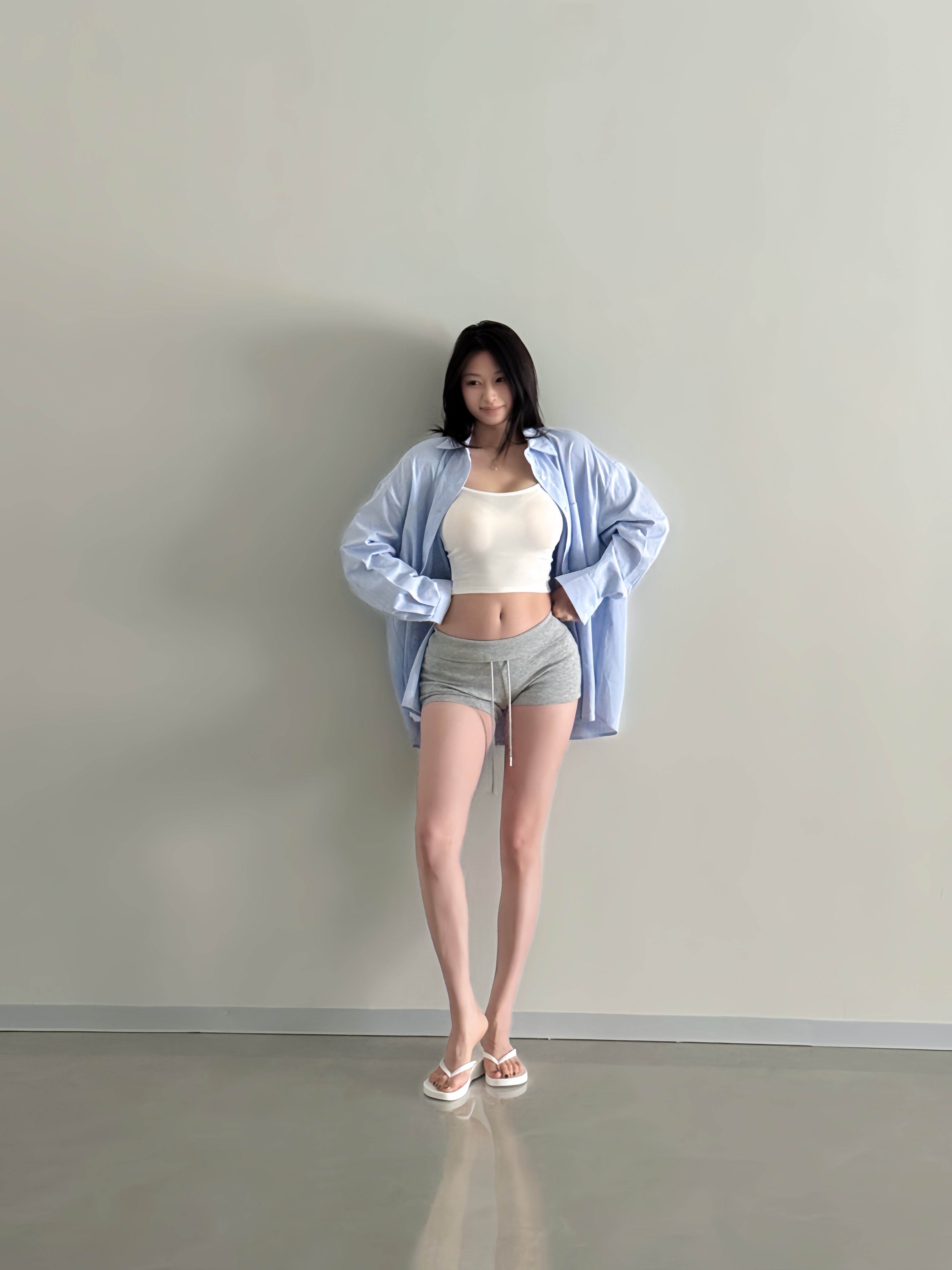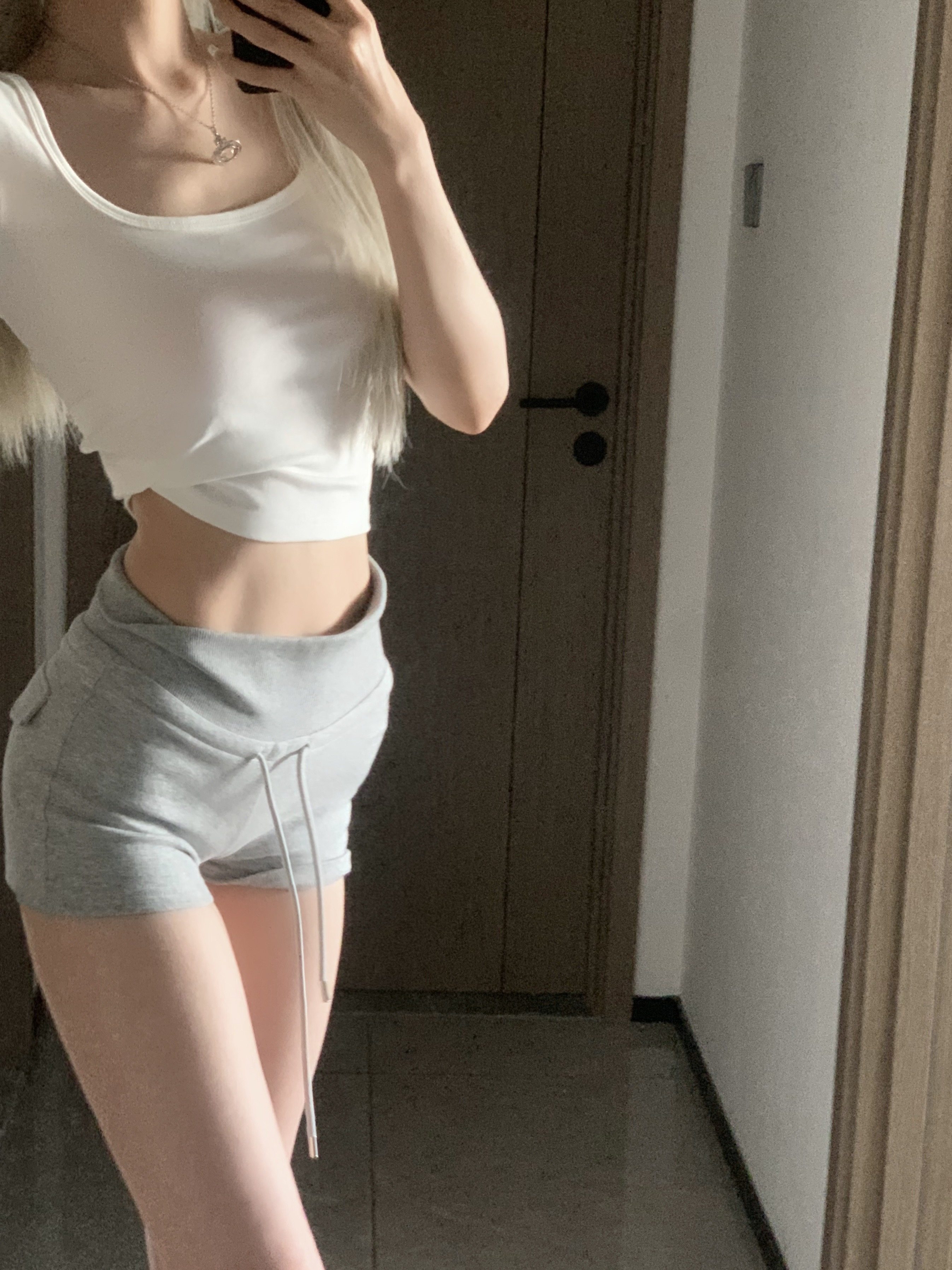 我本来想做个简单点的灰色短裤搭白短袖的