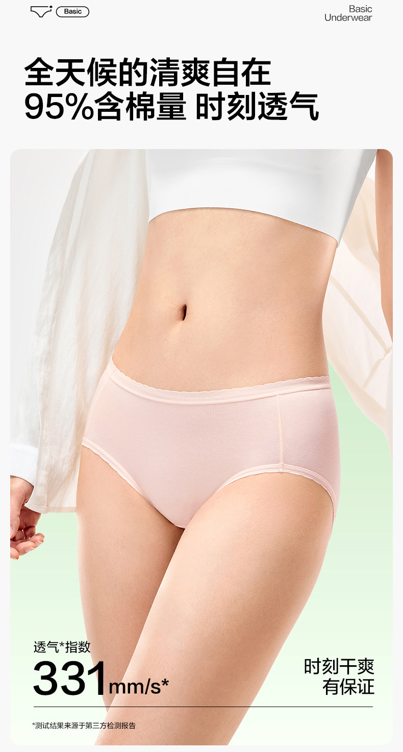 【Bai Bu】Pure Cotton Era Women's Underwear, Pure Cotton Mid-Waist, Lightweight, Comfortable, Skin-Friendly, Breathable Women's Underwear