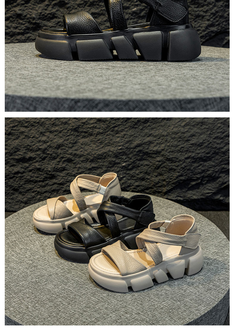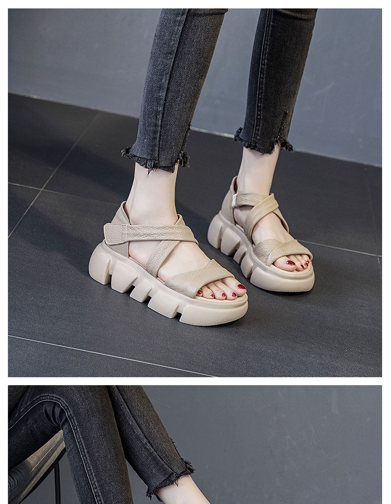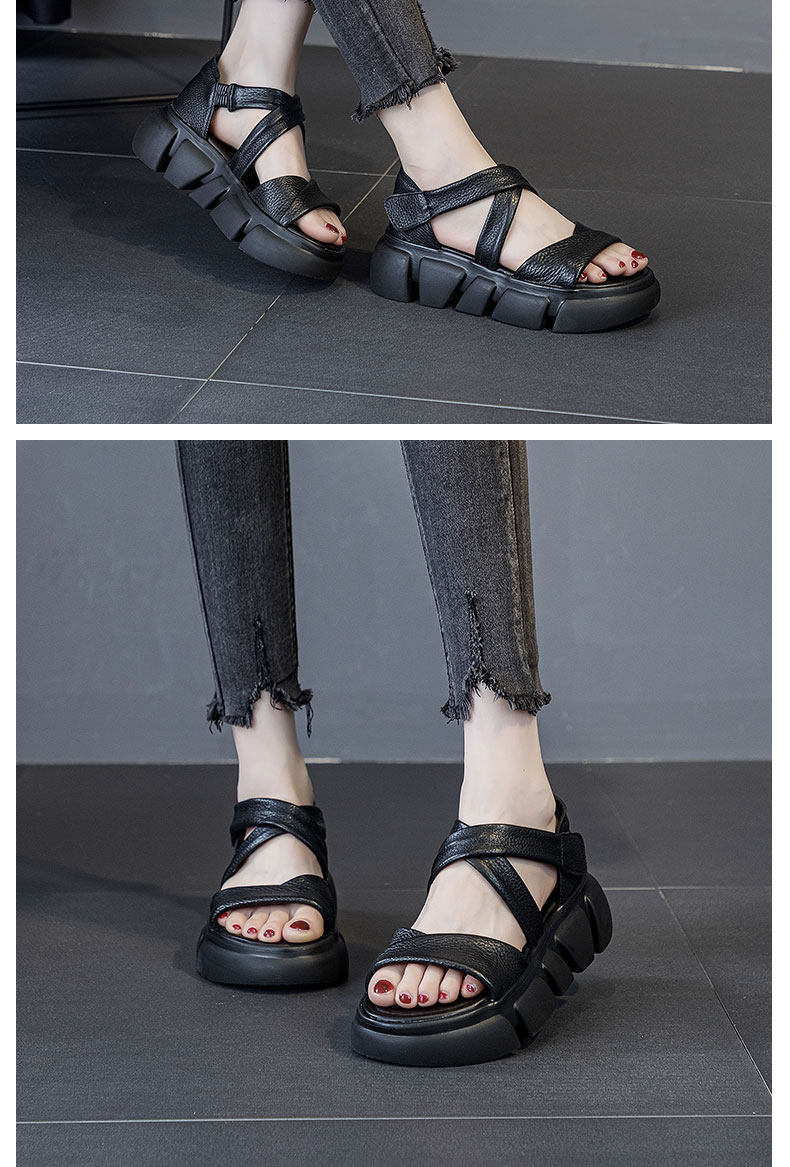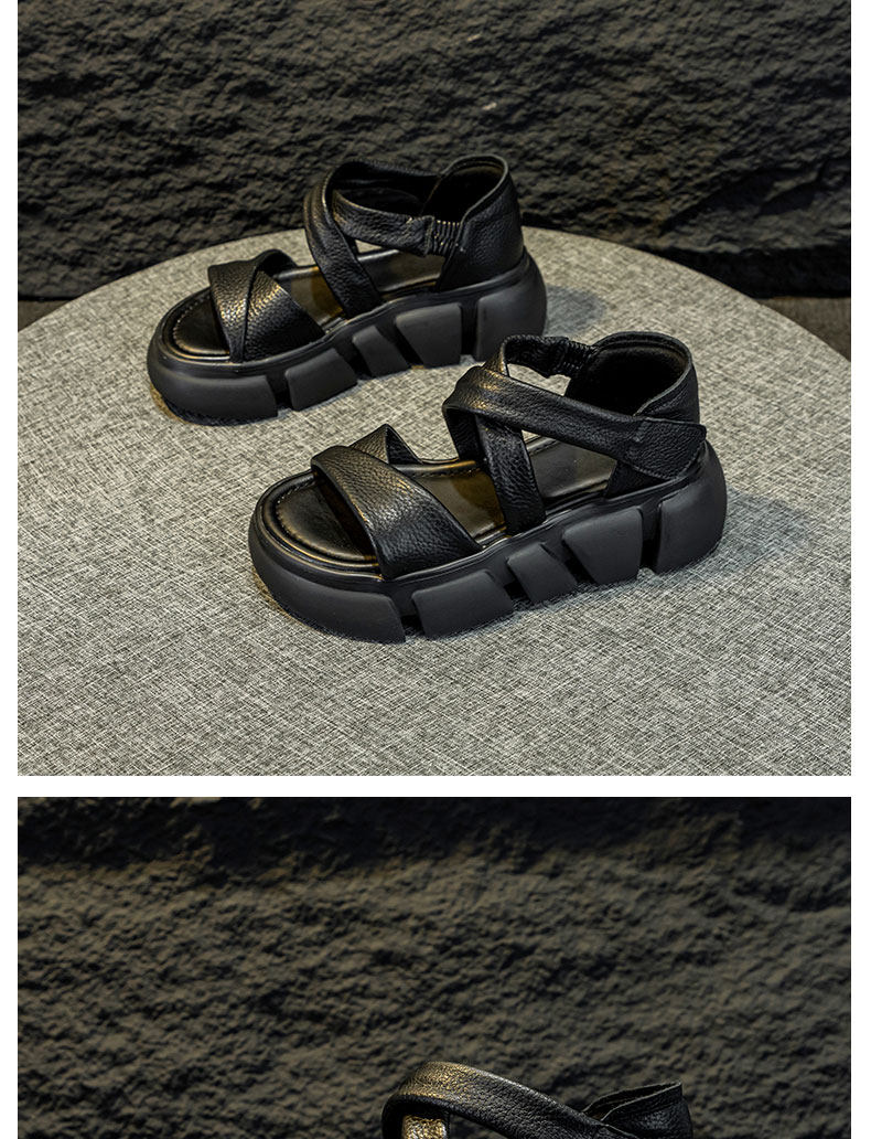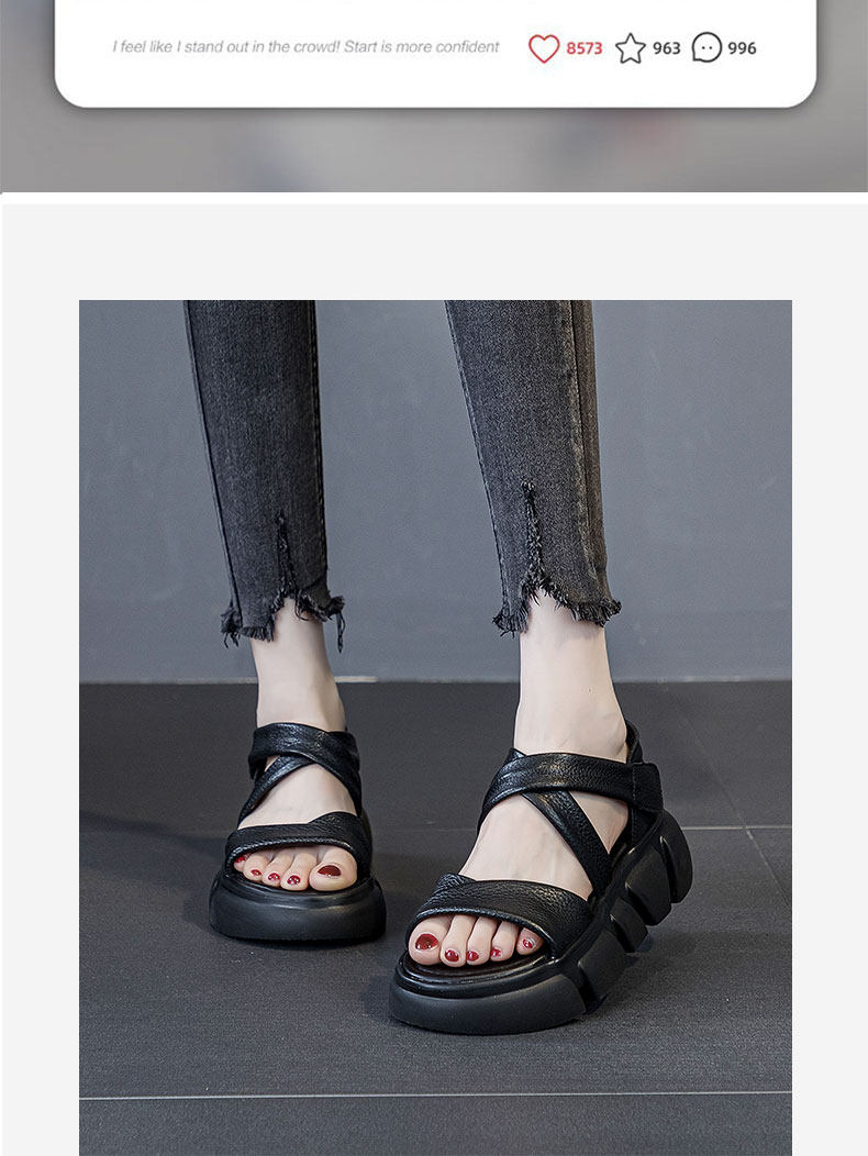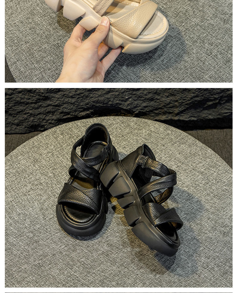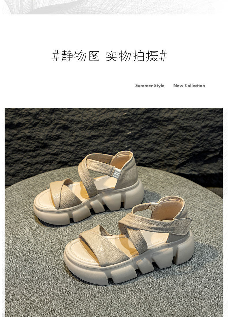 First-Layer Cowhide Sandals for Women 2025 Summer New Style Cross-Strap Thick-Soled Versatile Genuine Leather Roman Sports Casual