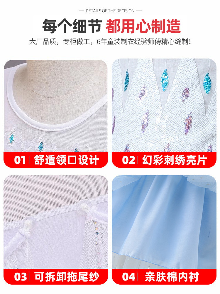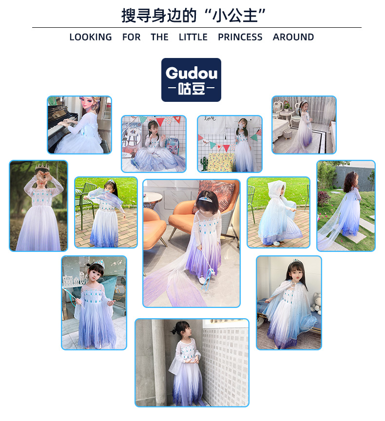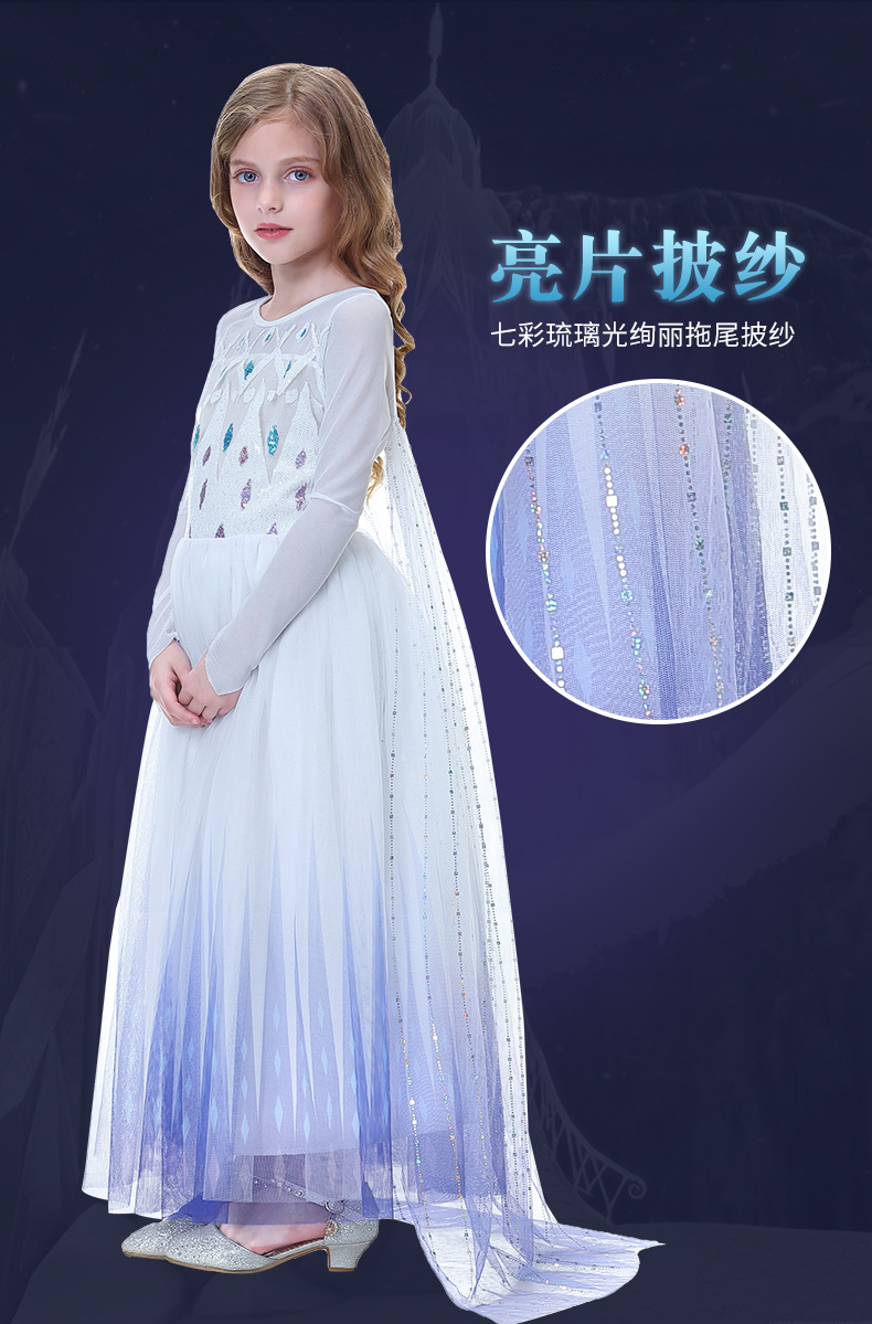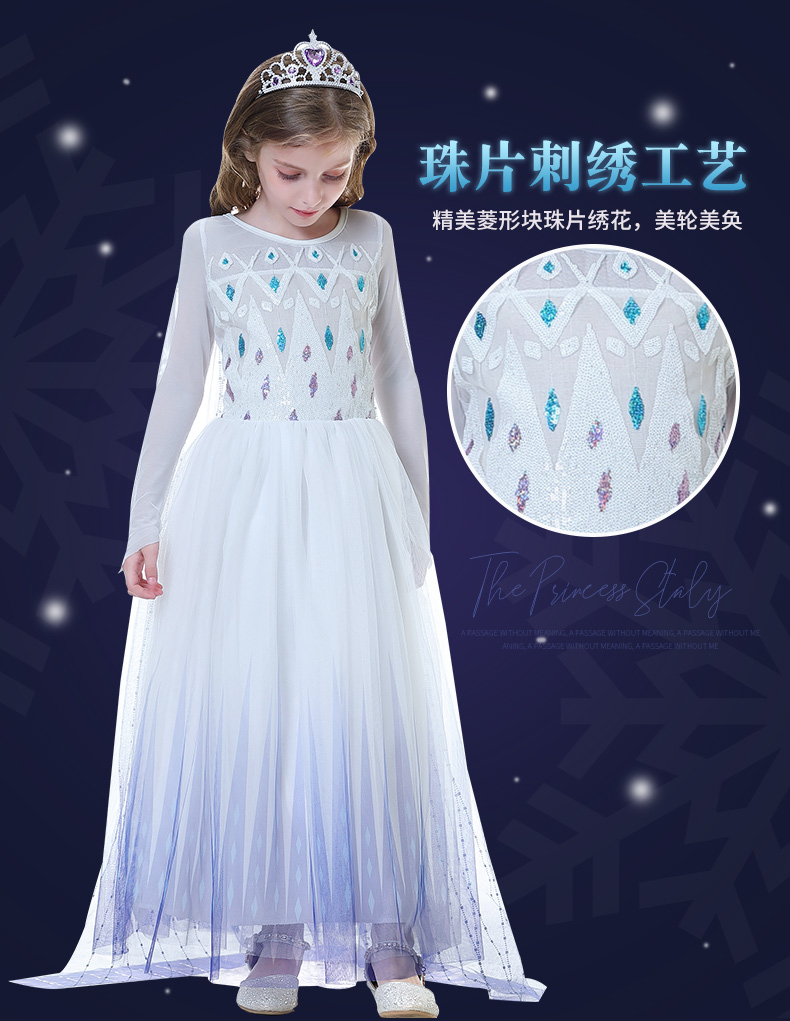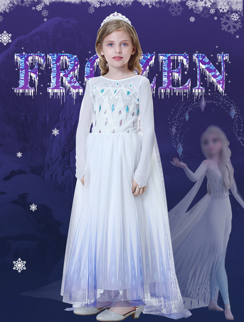 Elsa Princess Dress Girls Spring and Autumn Frozen Elsa Dress Floor-Length Disney Elsa Little Girl Clothes