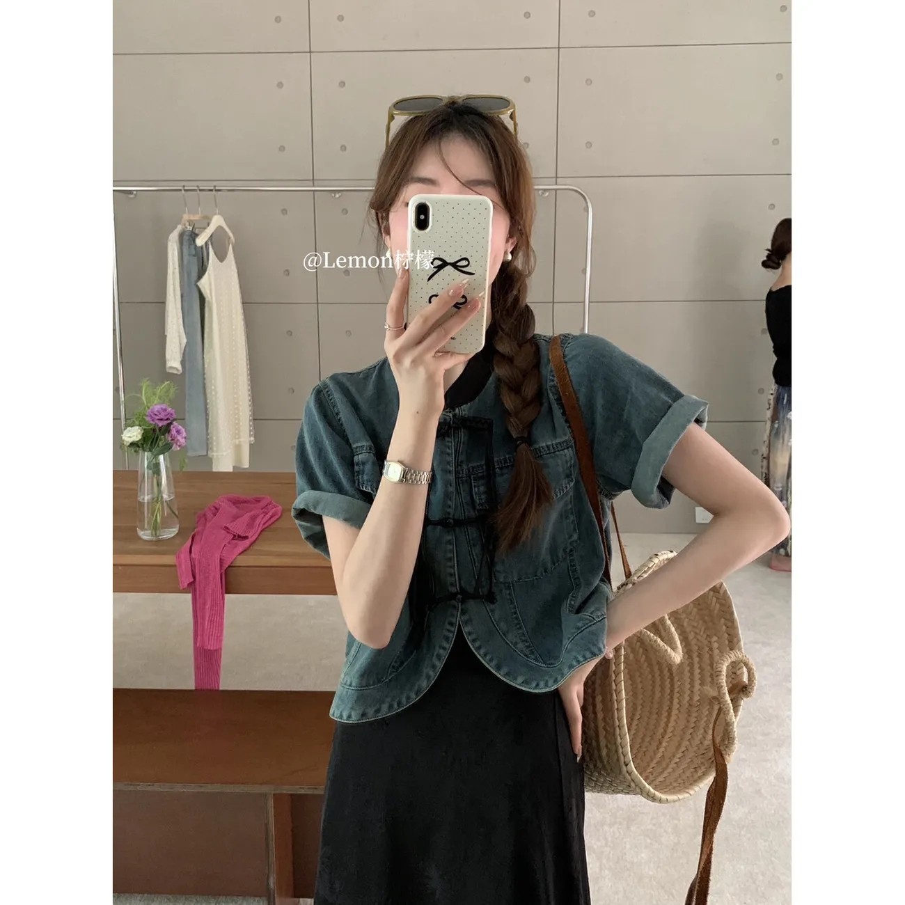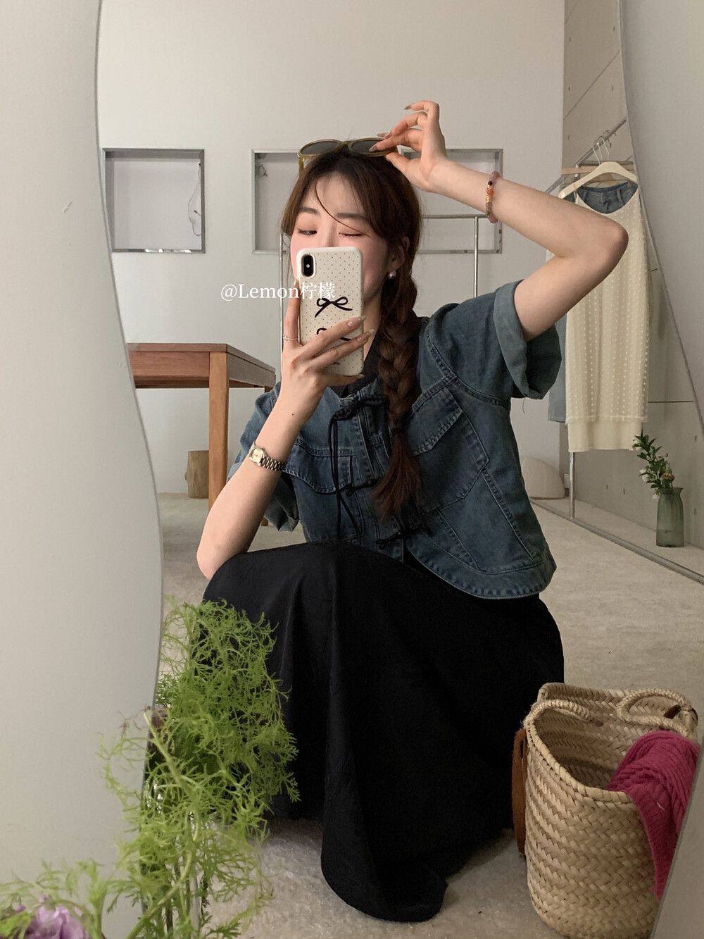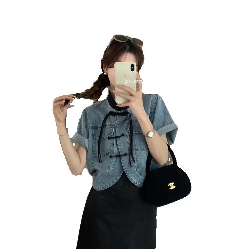 New Chinese-Style National Trend Button-Down Short-Sleeved Denim Shirt for Women, Summer New Style, Atmospheric Casual Short Jacket, Elegant Top