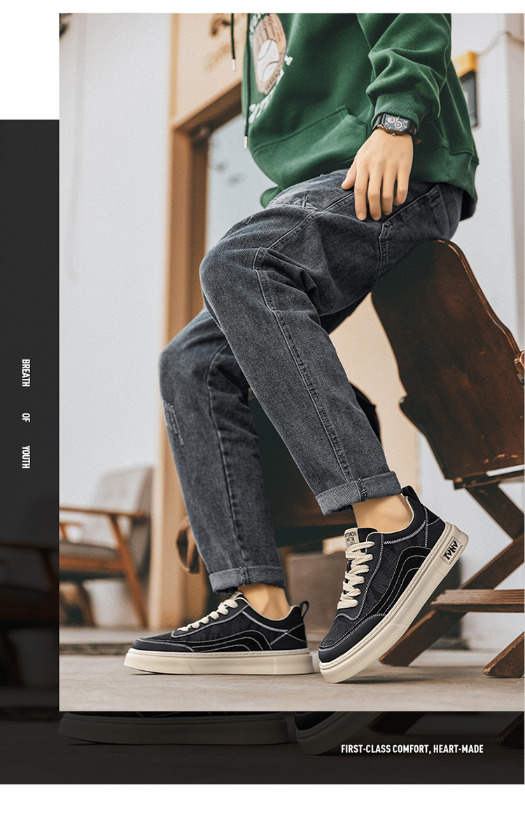 Canvas Men's Shoes, Winter Student Black Cloth Shoes, Casual Sneakers, Fleece-Lined Cotton Shoes, Non-Slip, Height-Increasing, Soft-Soled Sports Trendy Shoes