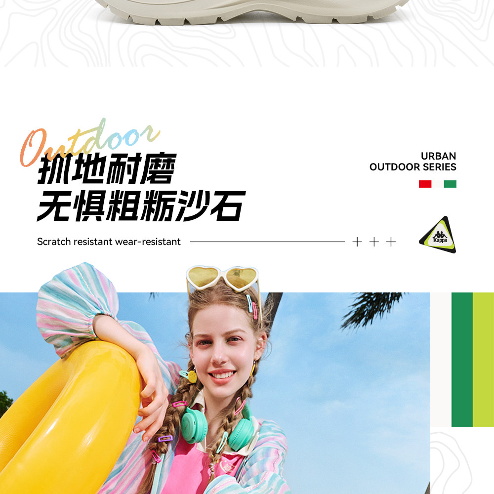 Kappa Women's Sandals 2026 Summer New Thick-Soled Height-Increasing Clogs Soft-Soled Outdoor Beach Sandals