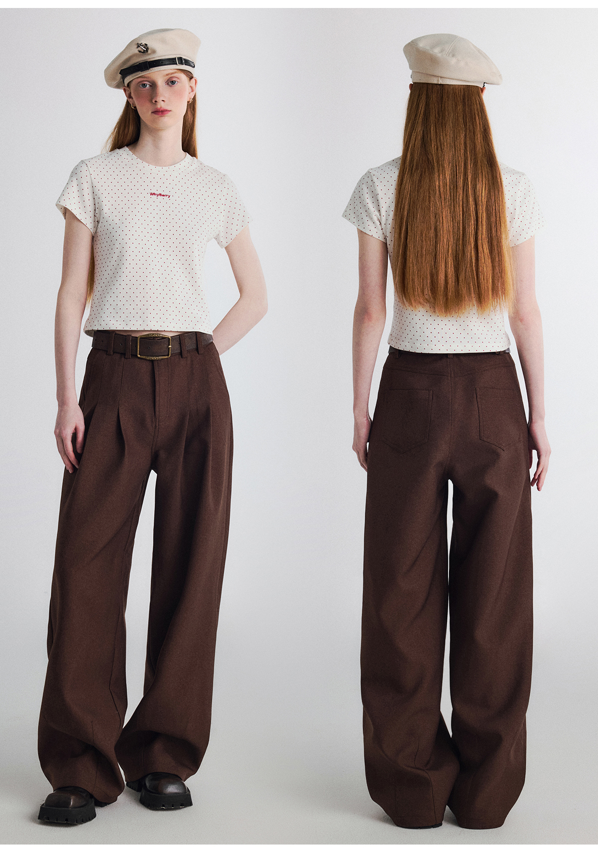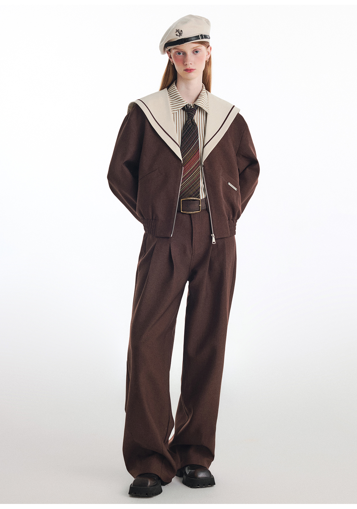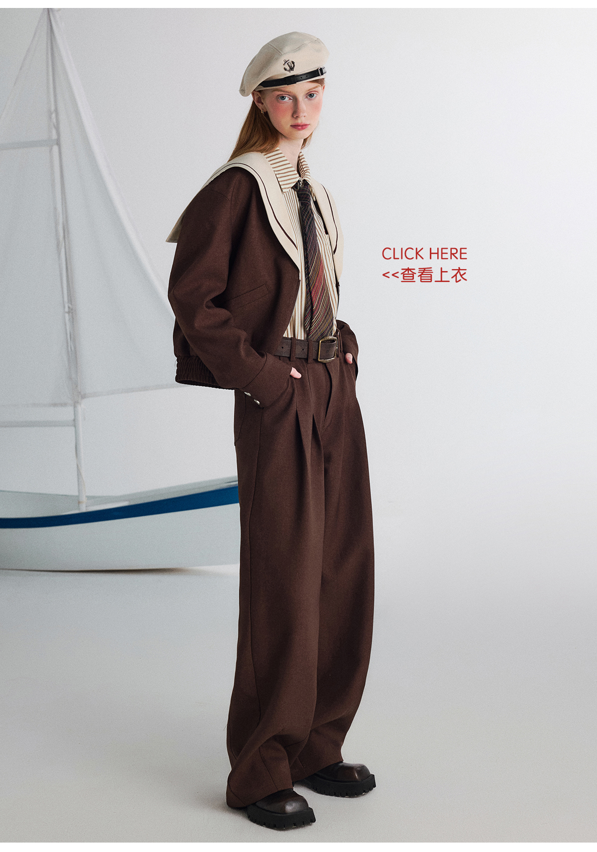 Whyberry 24Aw “Hot Cocoa” Chestnut Brown Loose Casual Wide-Leg Pants Retro British Style Trousers for Autumn and Winter