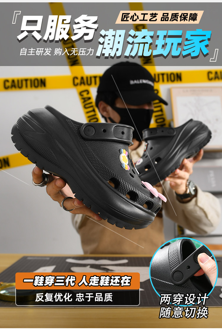Lightweight Perforated Shoes for Men, 2025 Summer New Style, Outdoor Puff Cloud Thick-Soled Non-Slip Beach Sandals for Women, Putian