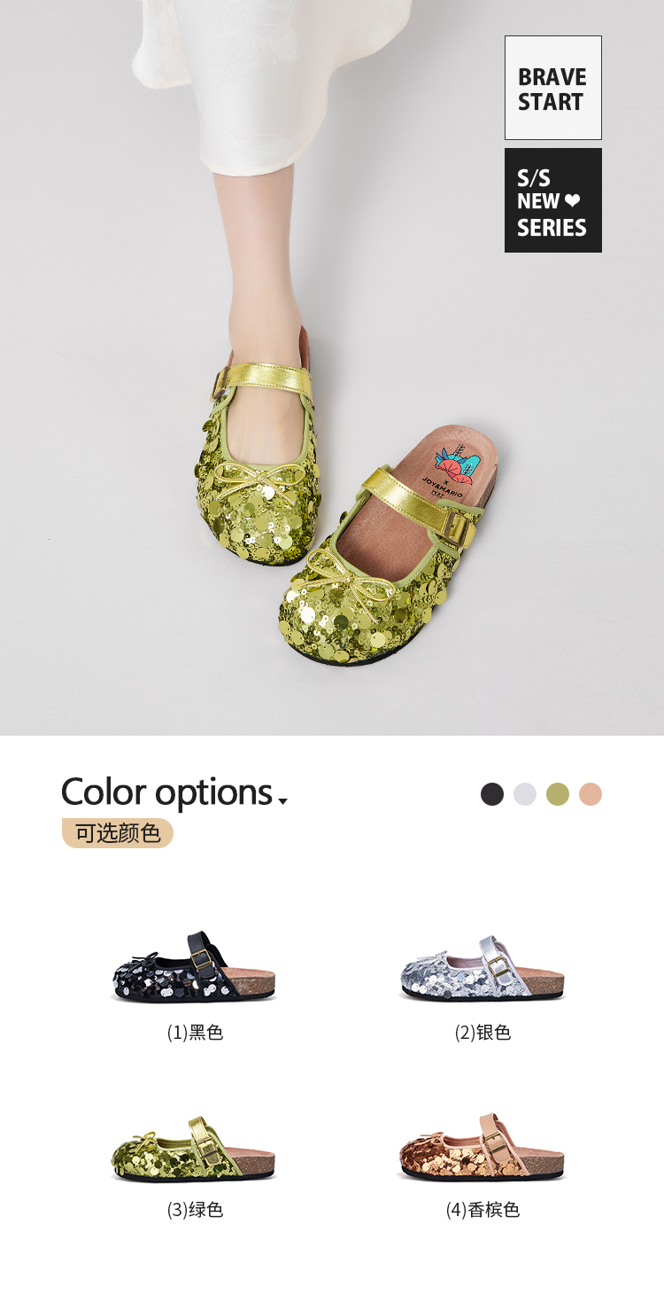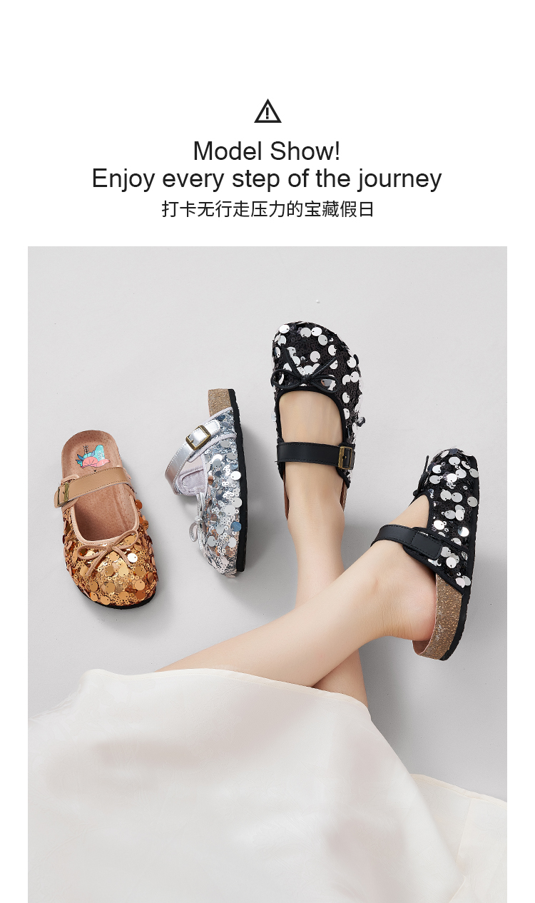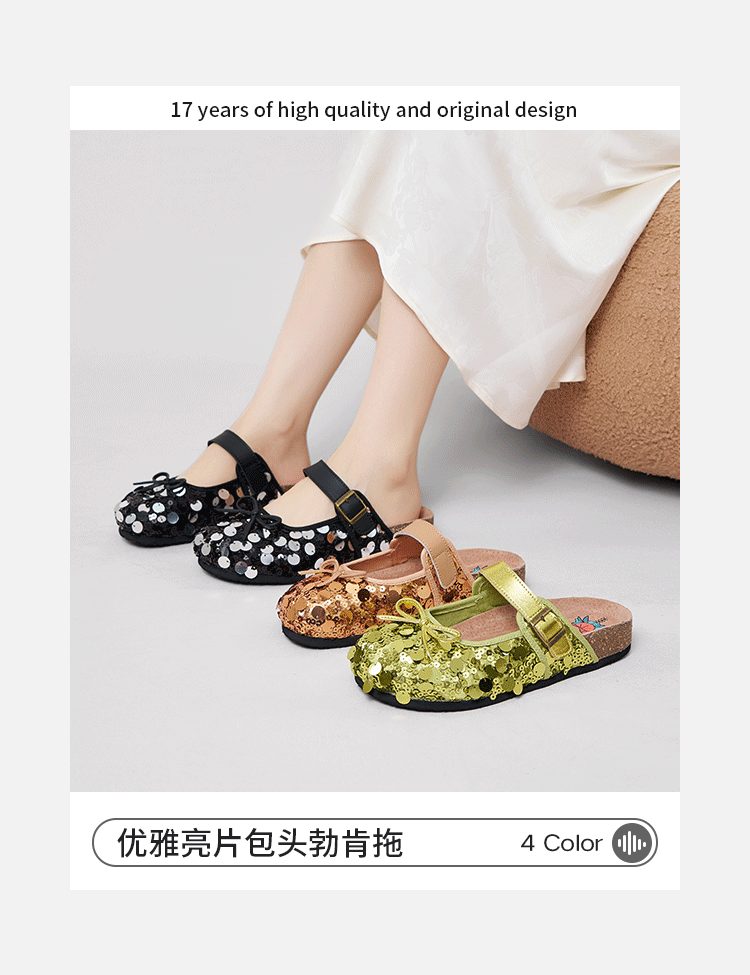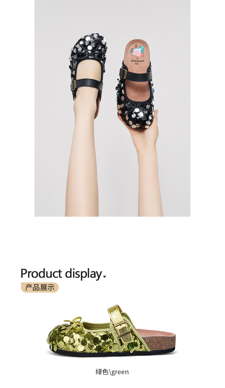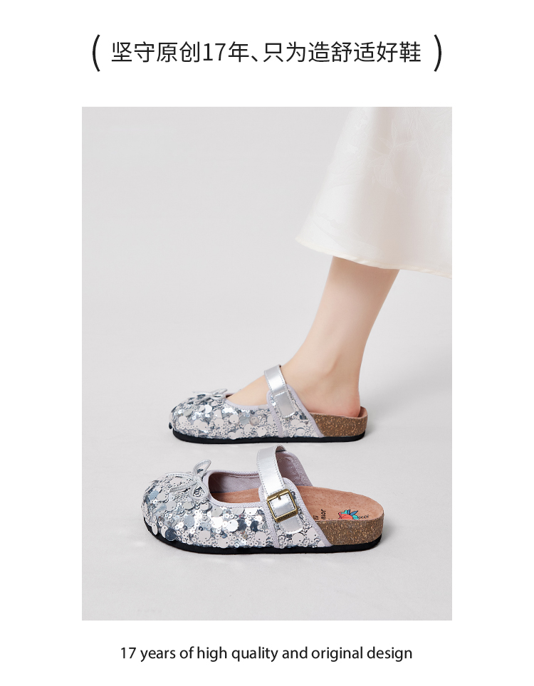 Happy Mary Baotou Half Slippers Women's 2025 Summer New Fashion Sequined Slip-On Birkenstock Sandals