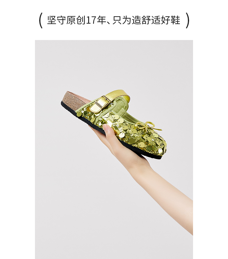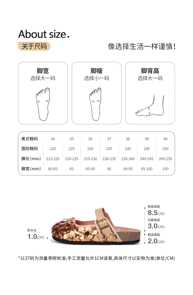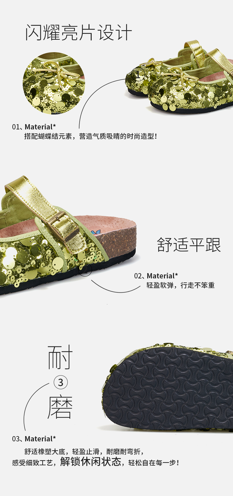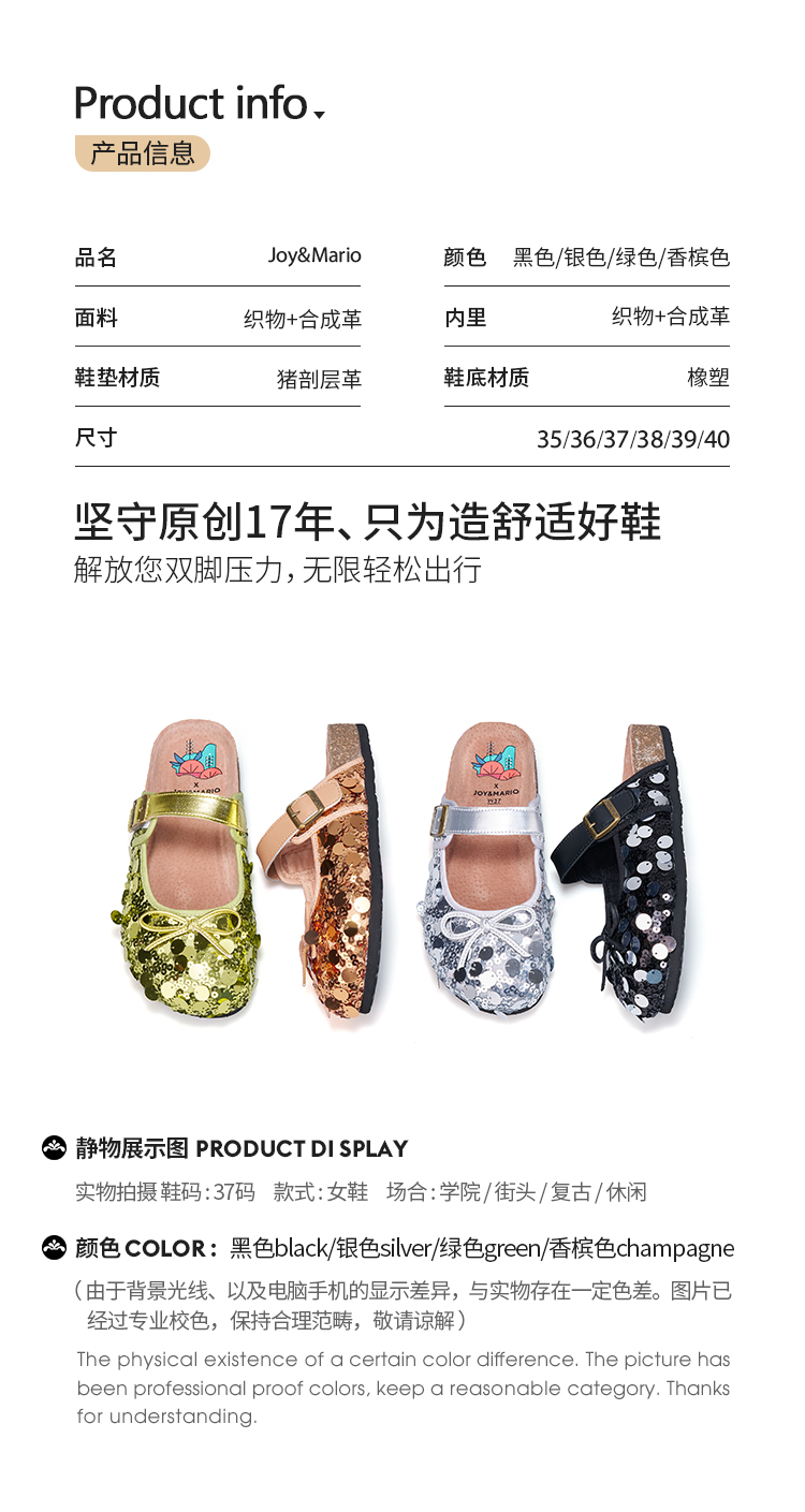 Happy Mary Baotou Half Slippers Women's 2025 Summer New Fashion Sequined Slip-On Birkenstock Sandals