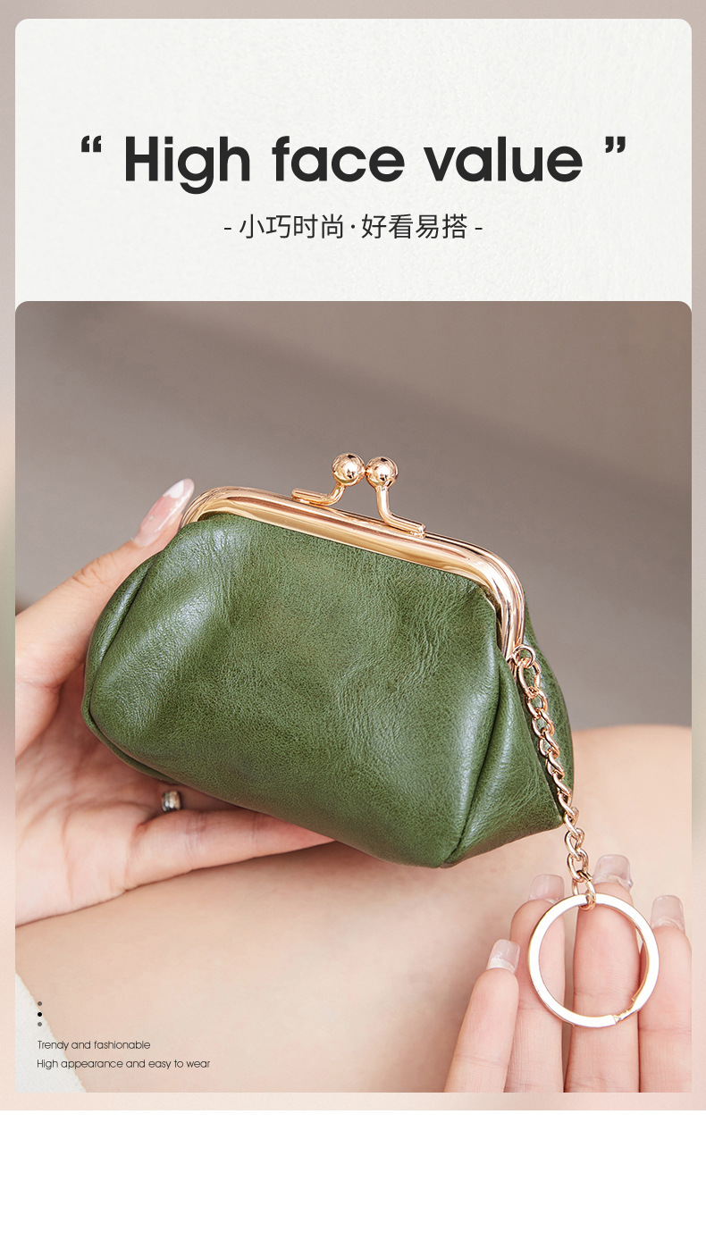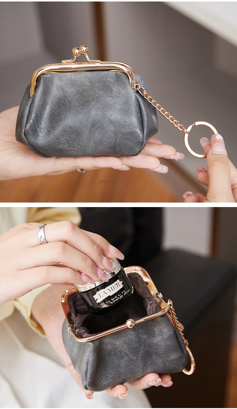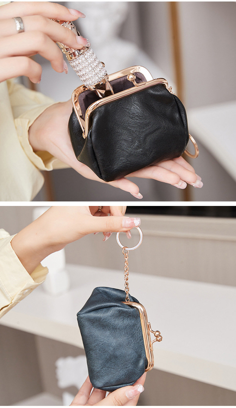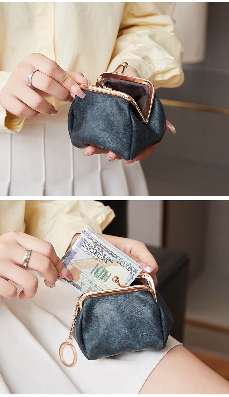 Cute Retro Style Clip Wallet Japanese-Style Coin Purse Compact Portable Coin and Key Holder Versatile Lipstick Storage Bag