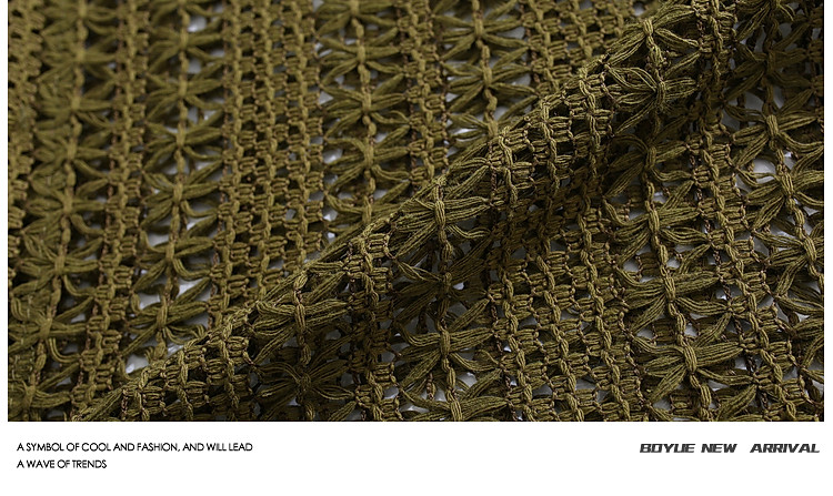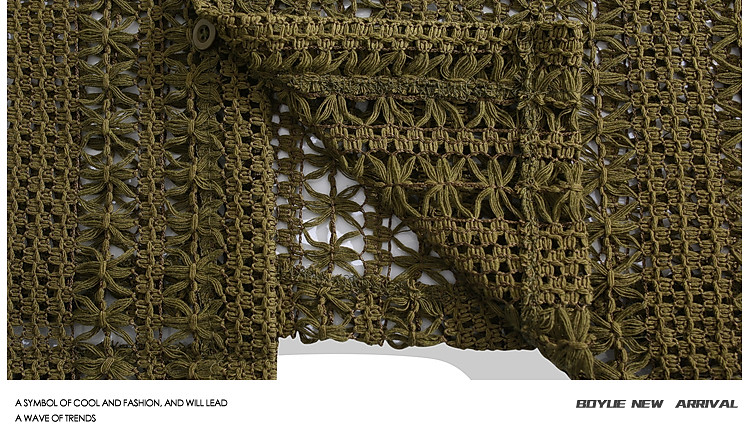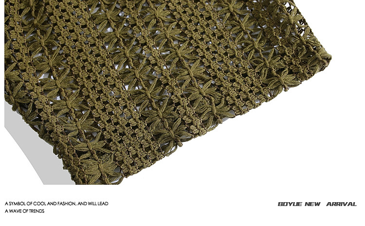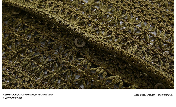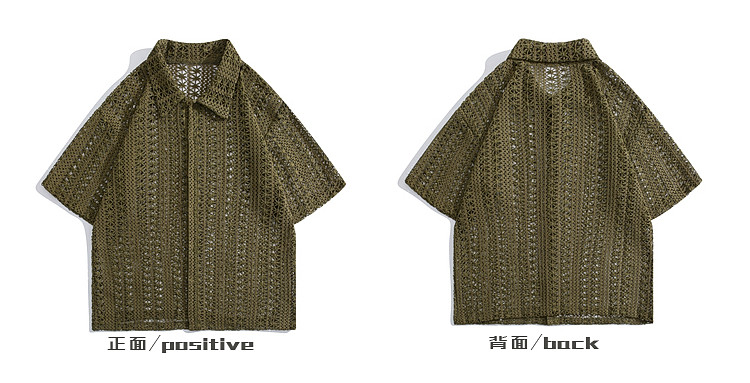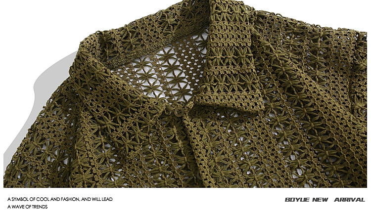 Boyue Summer National Trend Retro Hollow Knit Shirt Army Green Versatile Personality Unisex Short Sleeve Cover-Up