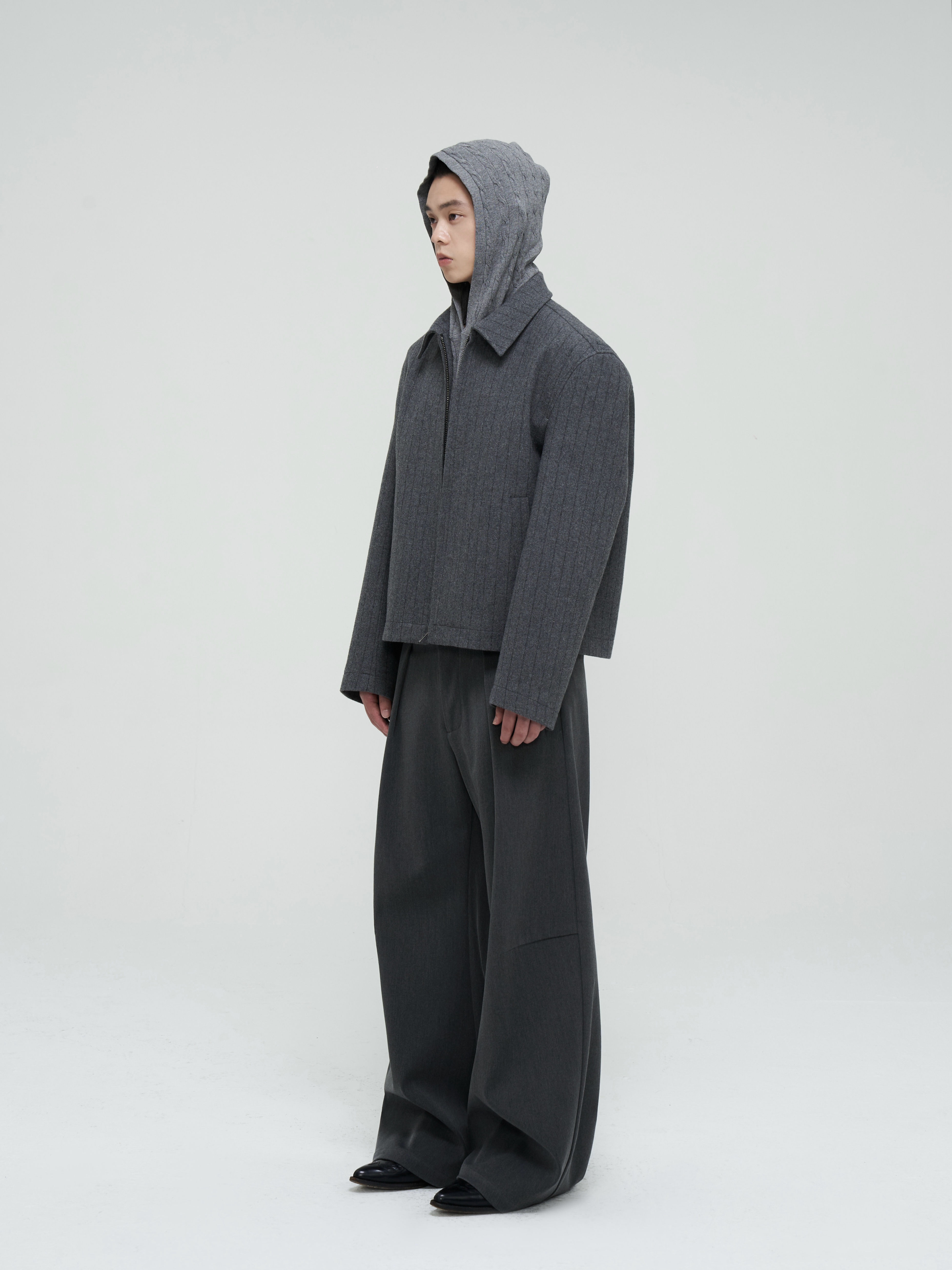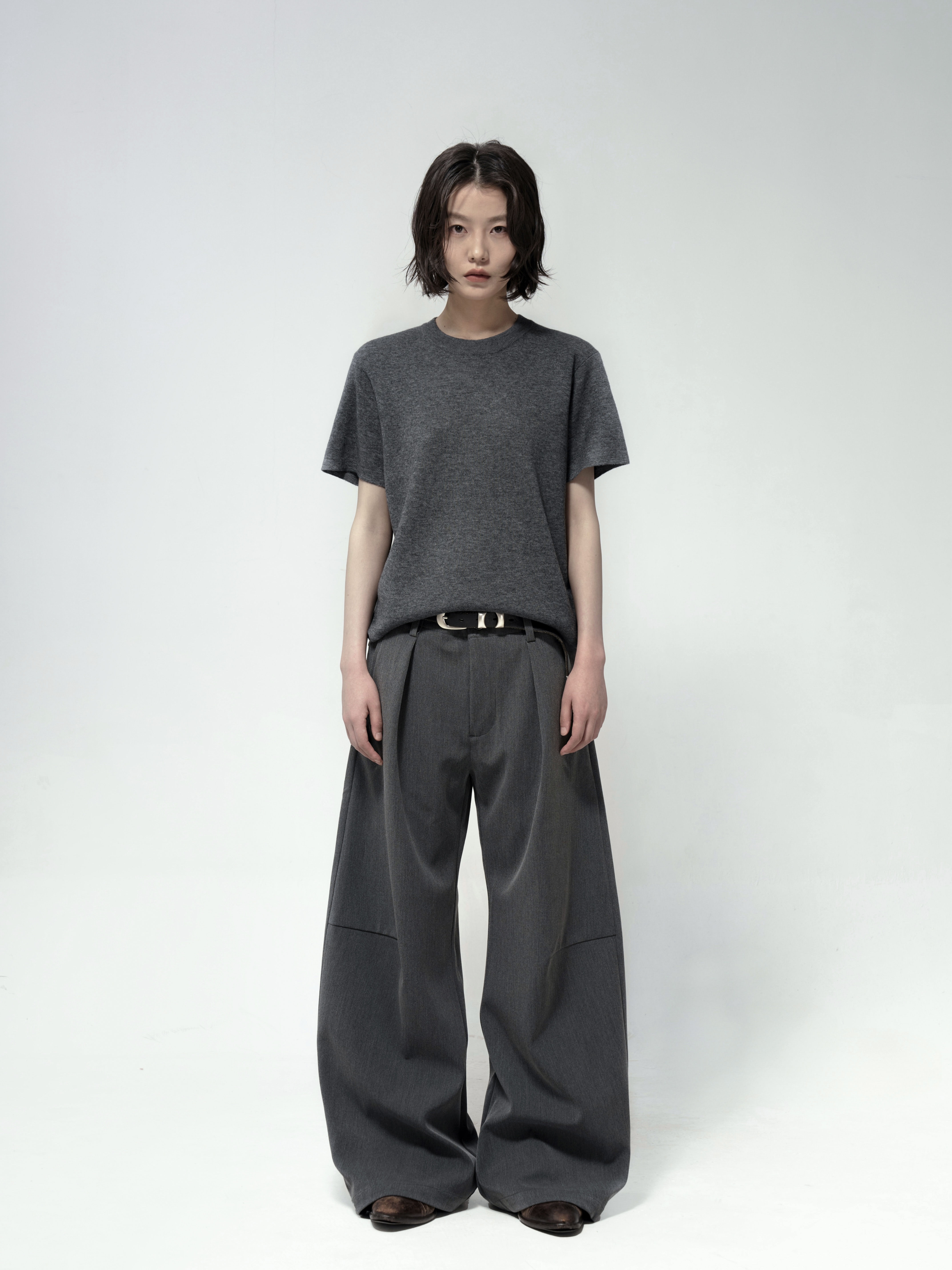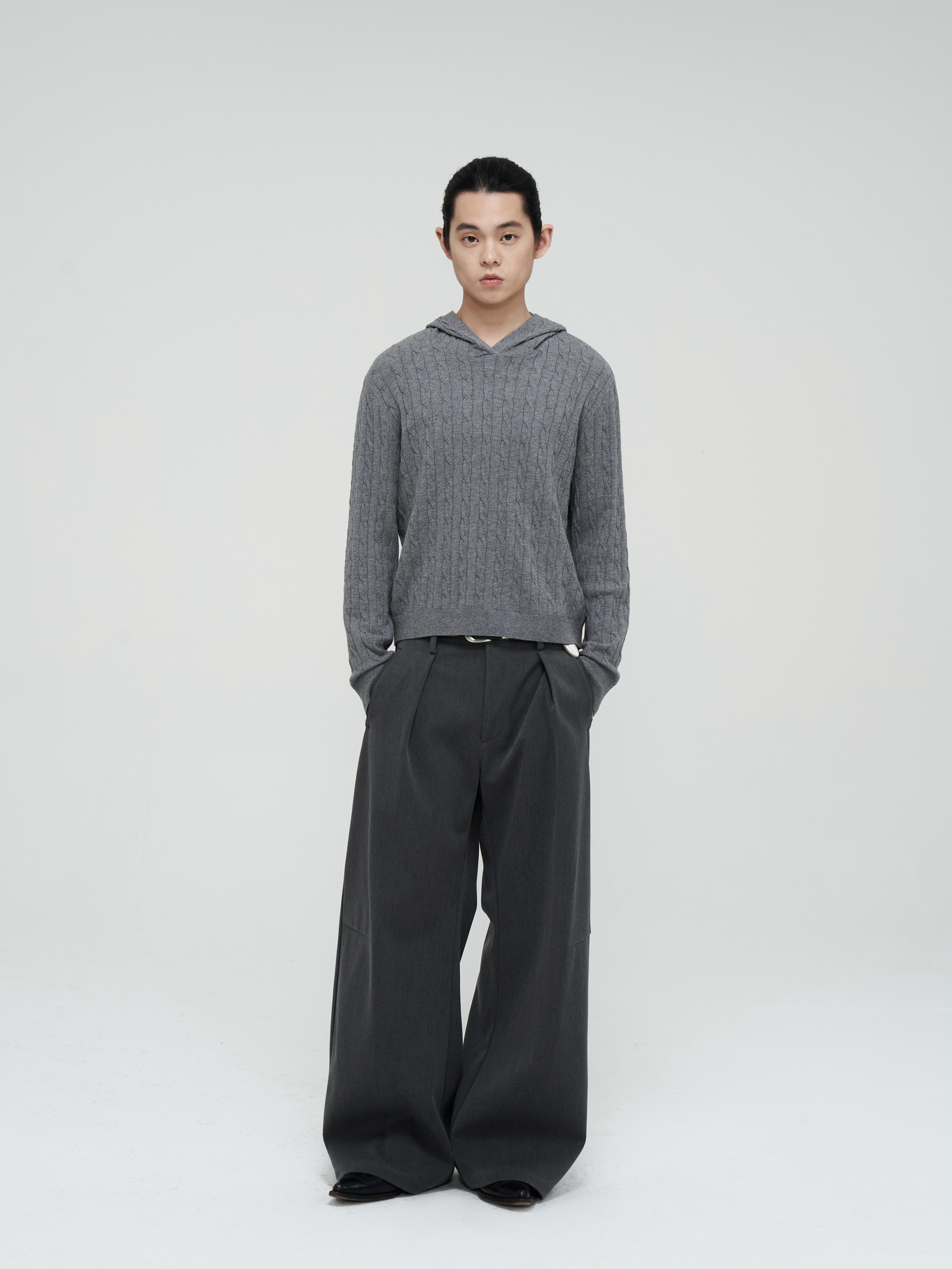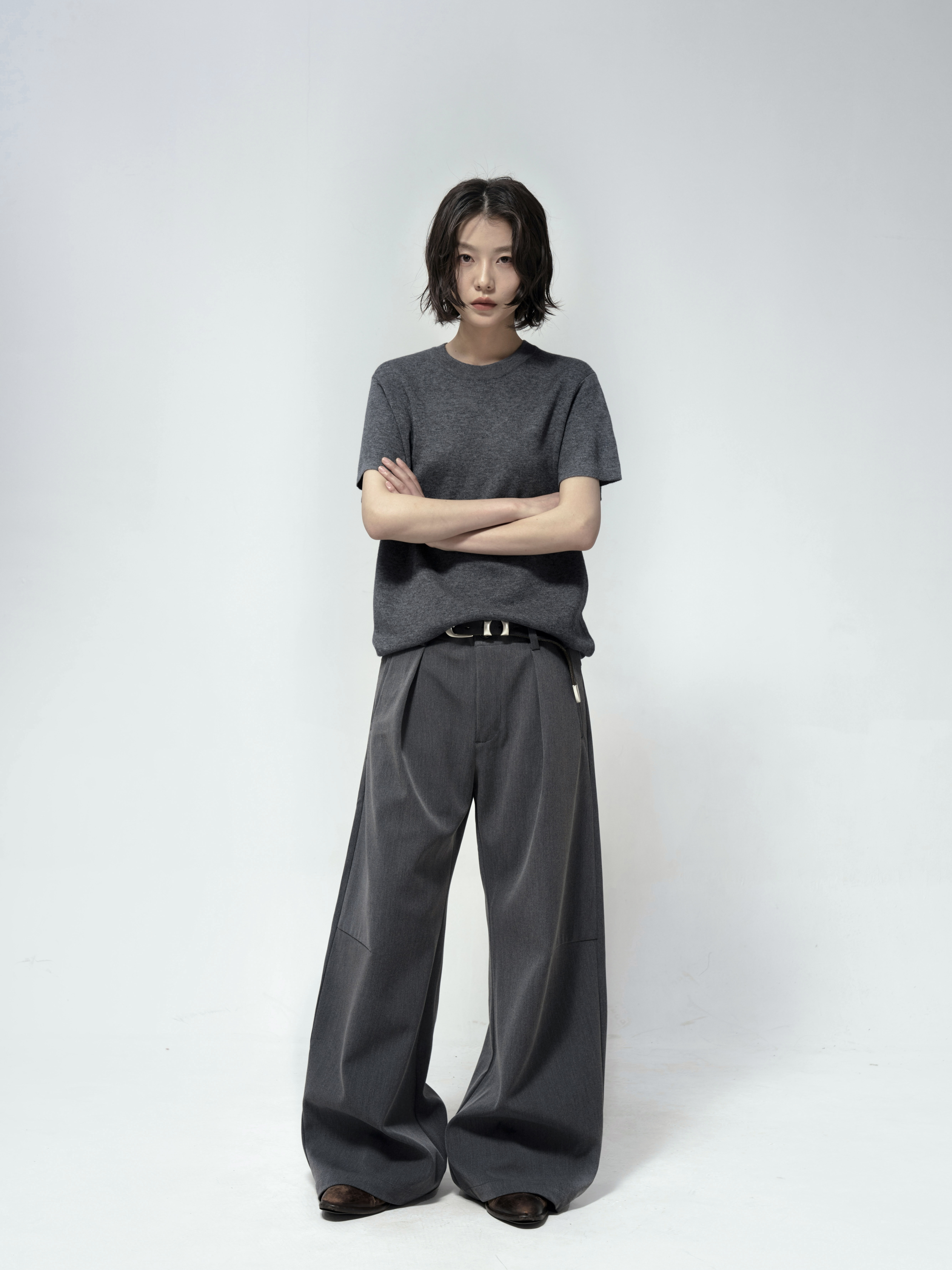 7Hill Curved Silhouette Pleated Trousers with Three-Dimensional Tailoring, Loose Fit, Wide-Leg, Drapey Floor-Length Pants