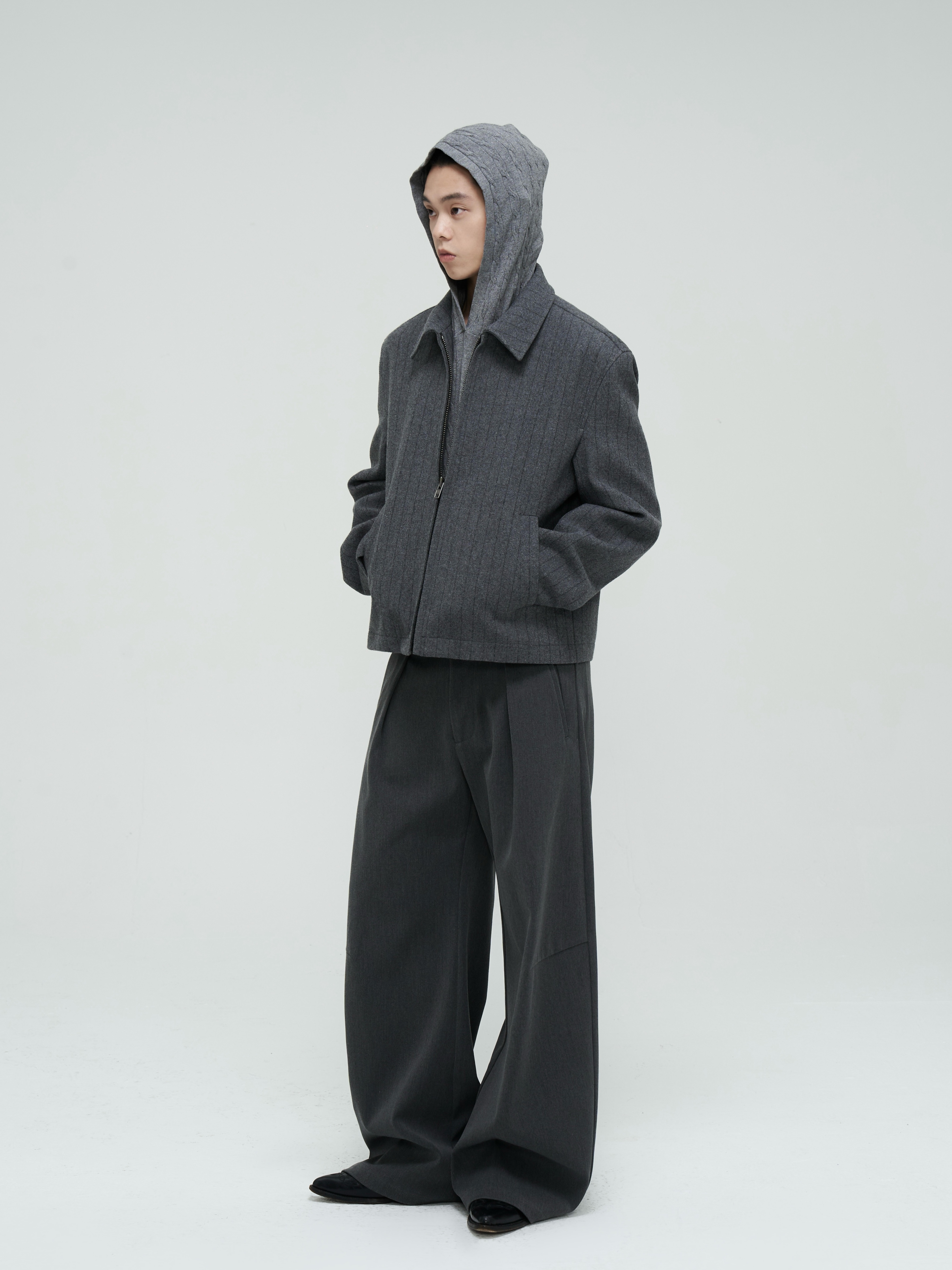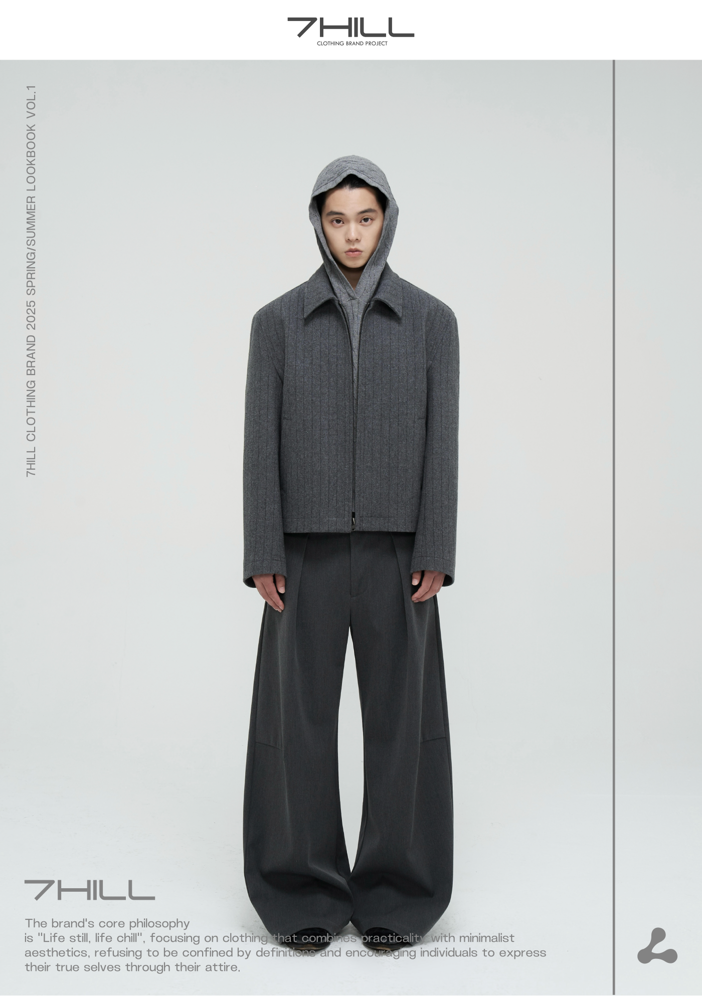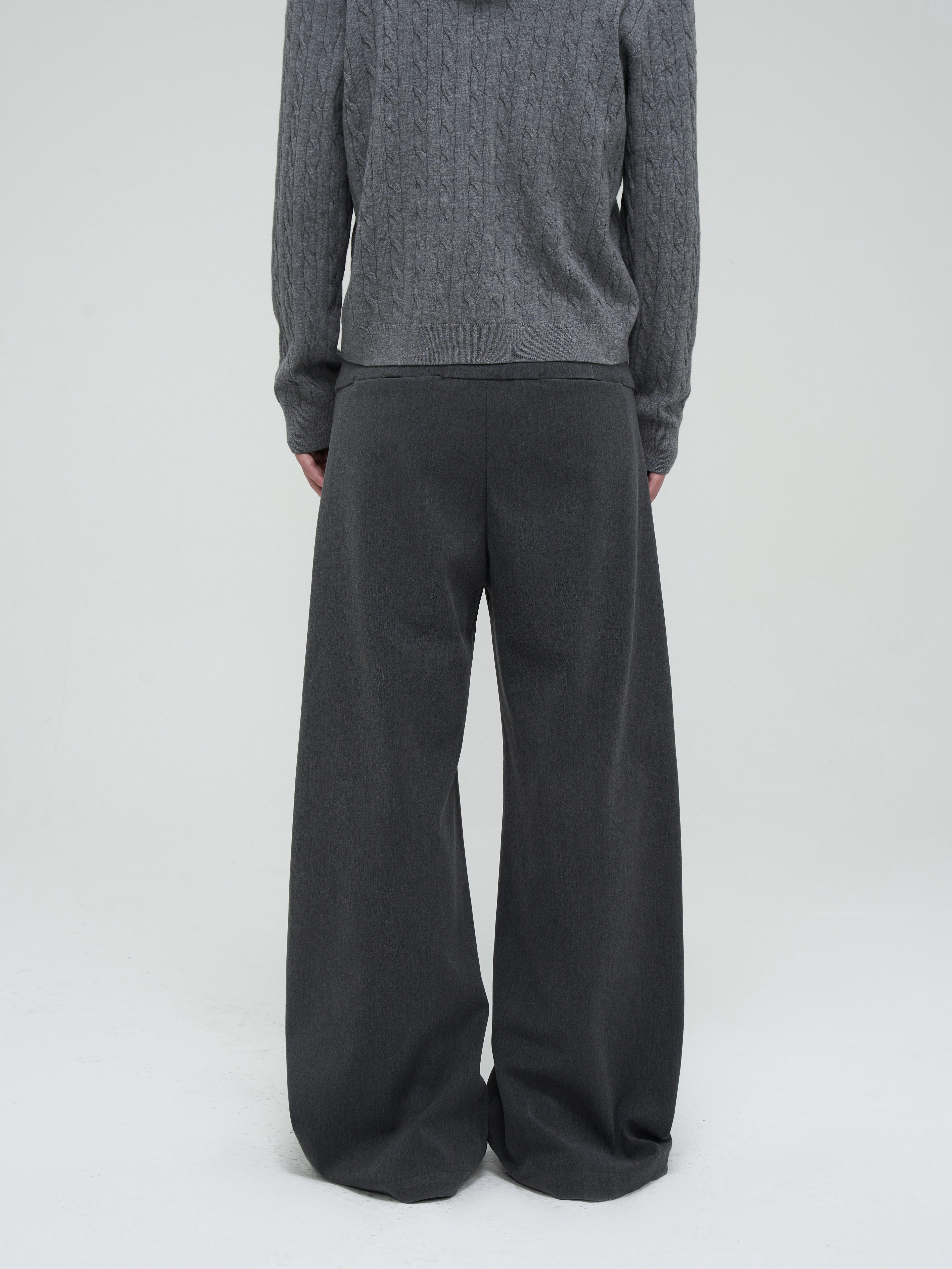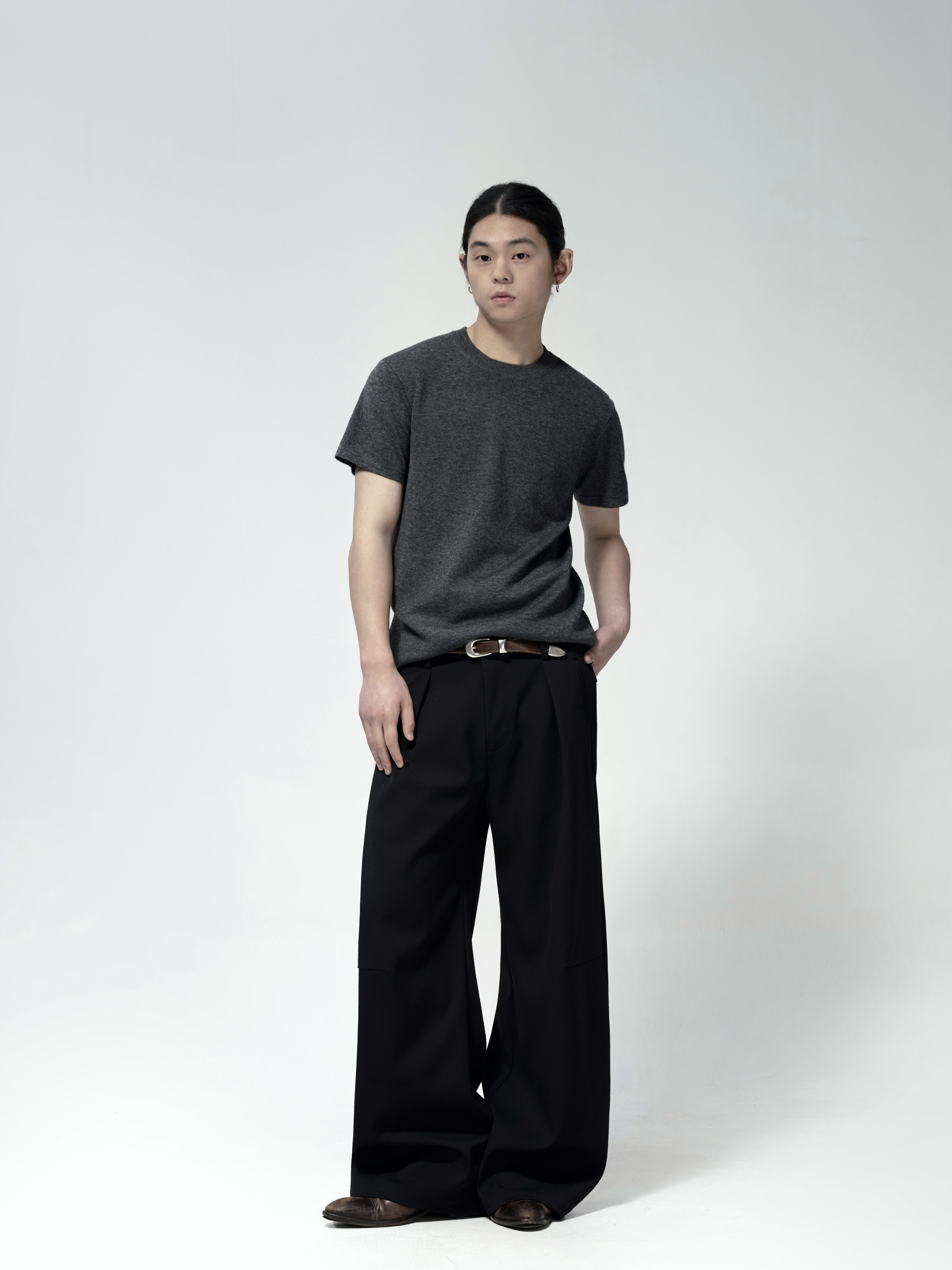 7Hill Curved Silhouette Pleated Trousers with Three-Dimensional Tailoring, Loose Fit, Wide-Leg, Drapey Floor-Length Pants
