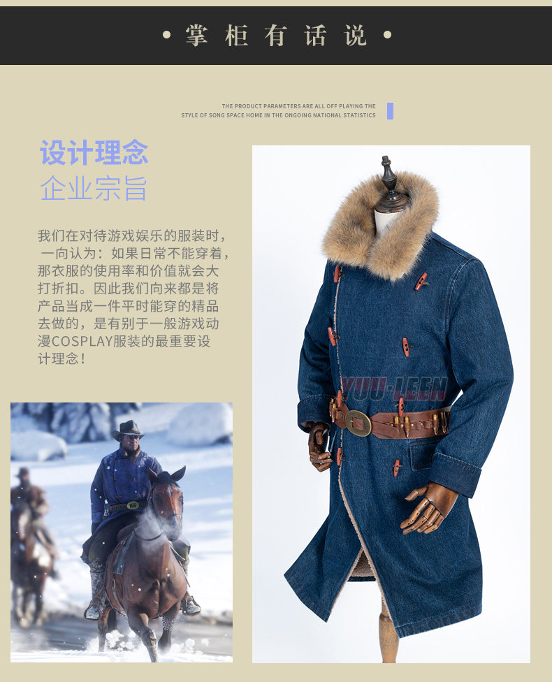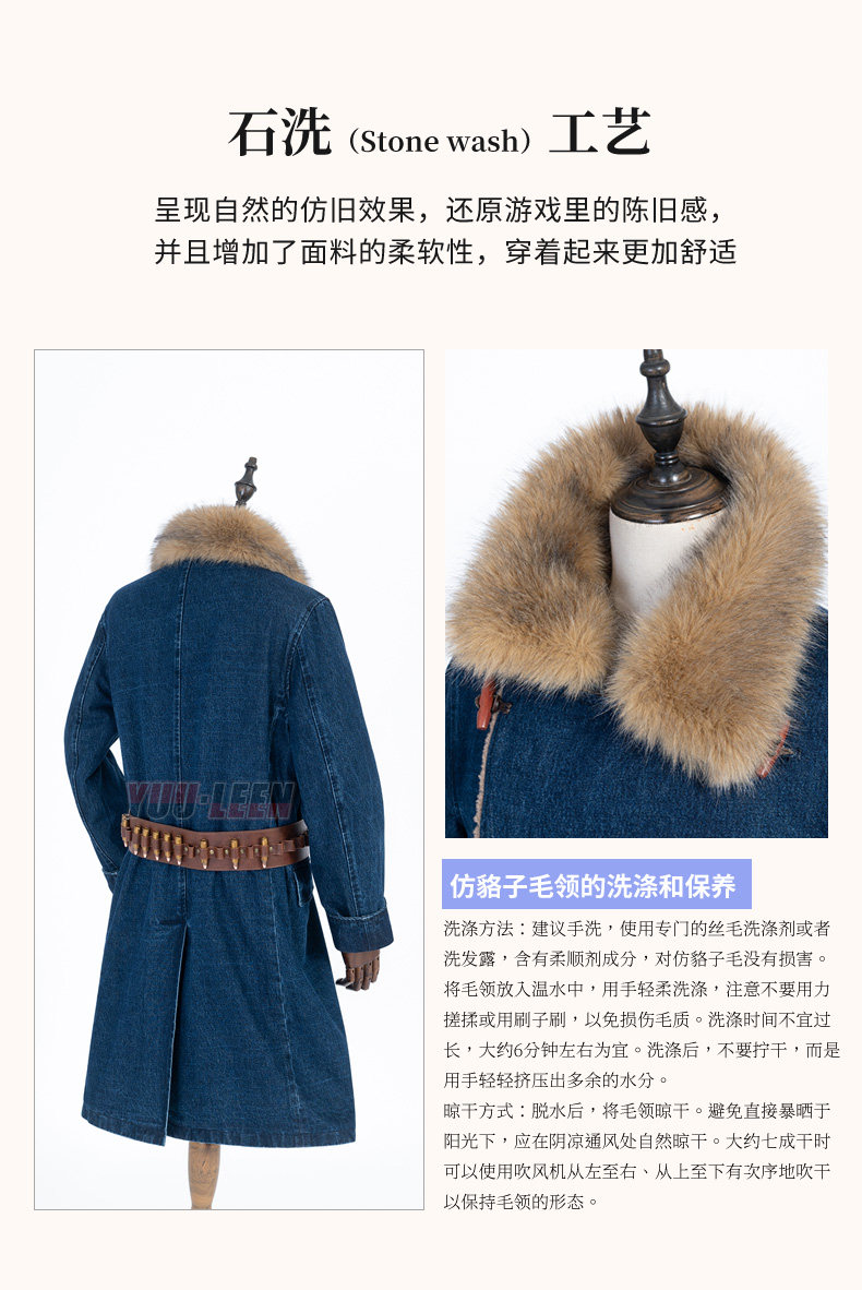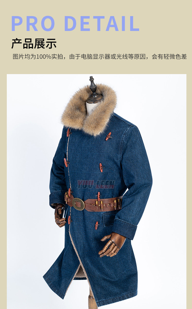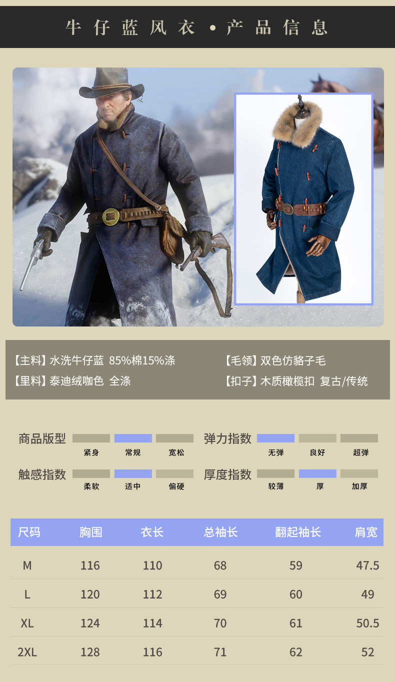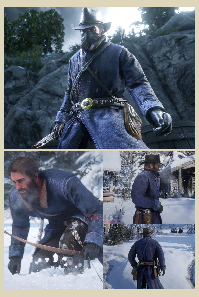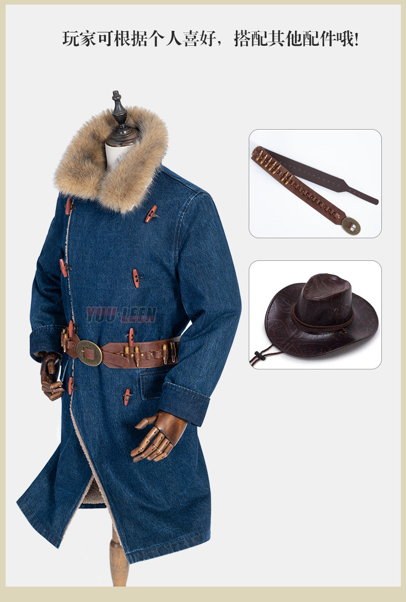 Red Dead Redemption 2 Redemption Morgan Cowboy Blue Trench Coat Over-The-Knee Coat Winter Mid-Length Coat Men's Cosplay