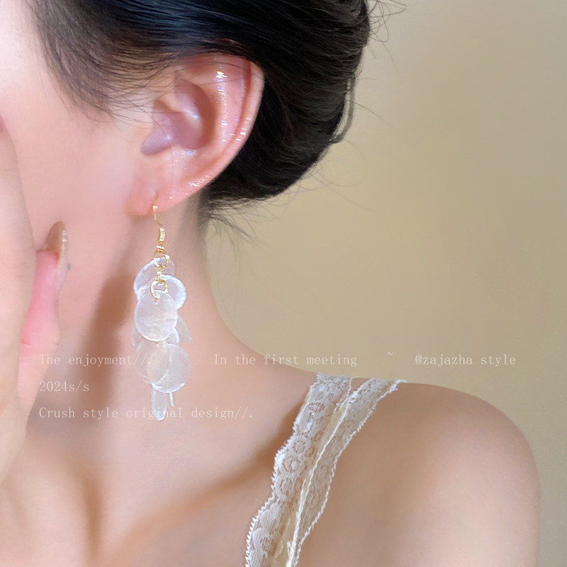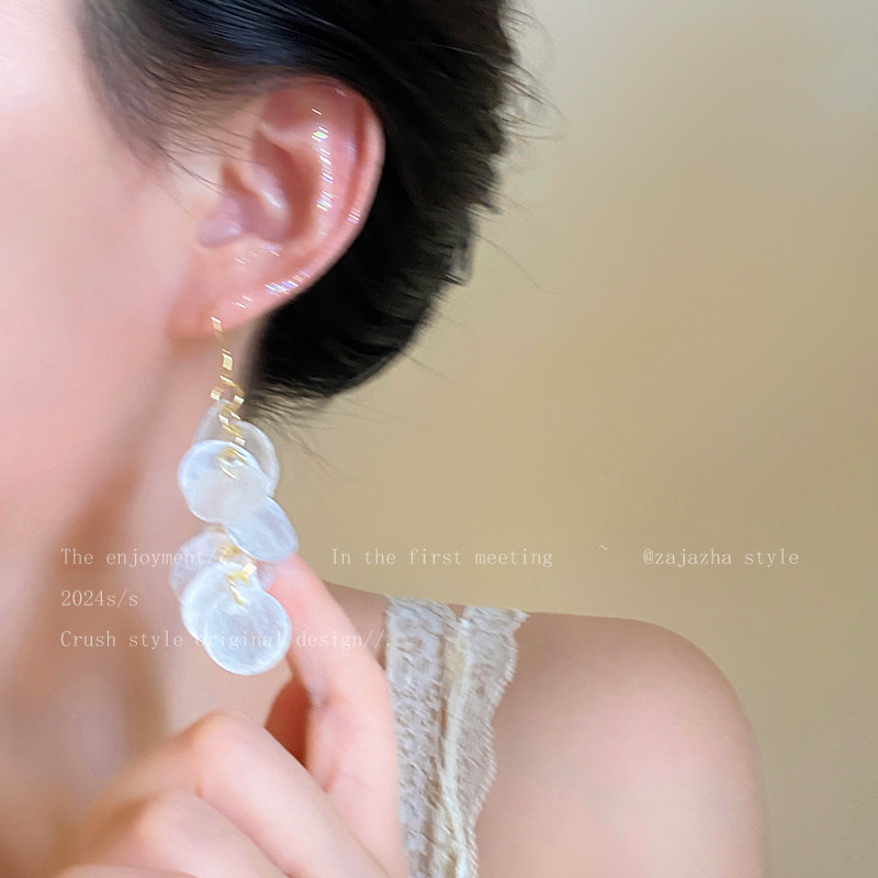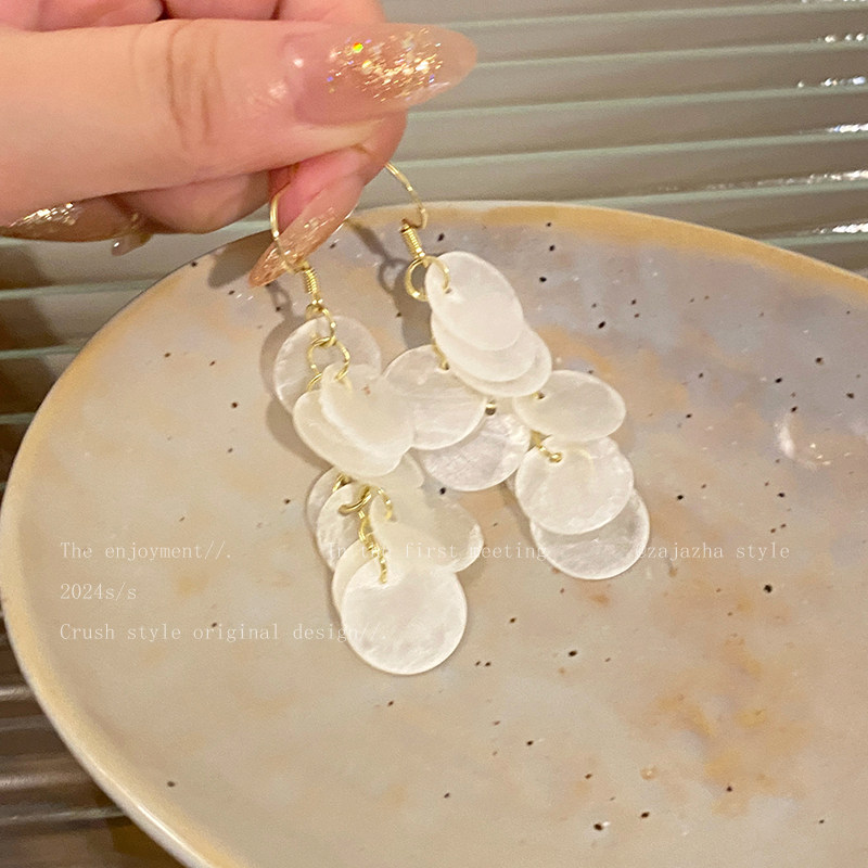 Island Vacation Style Long Tassel Shell Earrings for Women, Unique and Beautiful Bohemian Ear Clips, Seaside Earrings