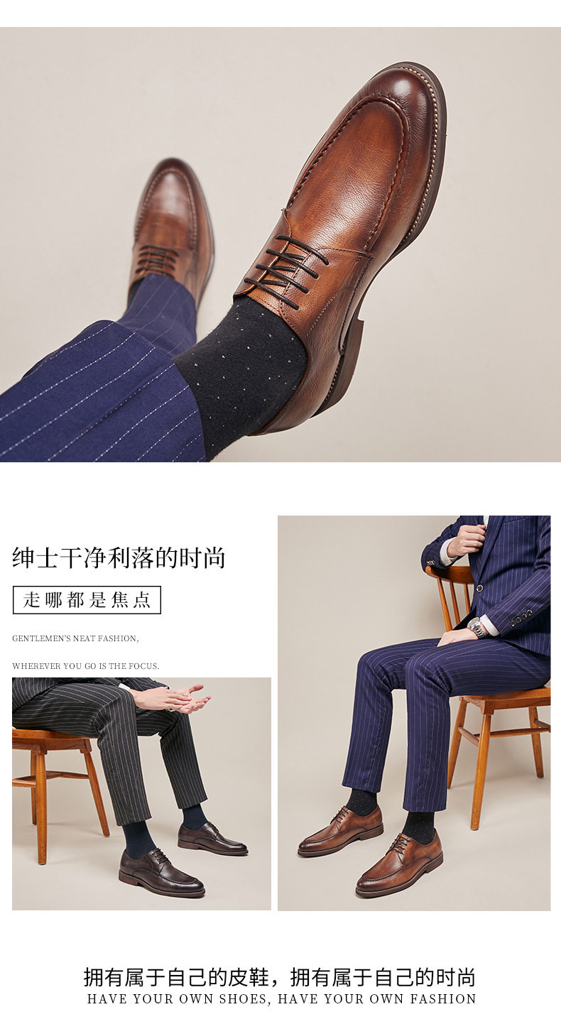 Kapsi Genuine Leather Casual Shoes for Men, Soft-Soled Breathable Derby Commuting Work Shoes, Versatile Soft Leather Formal Handmade Leather Shoes