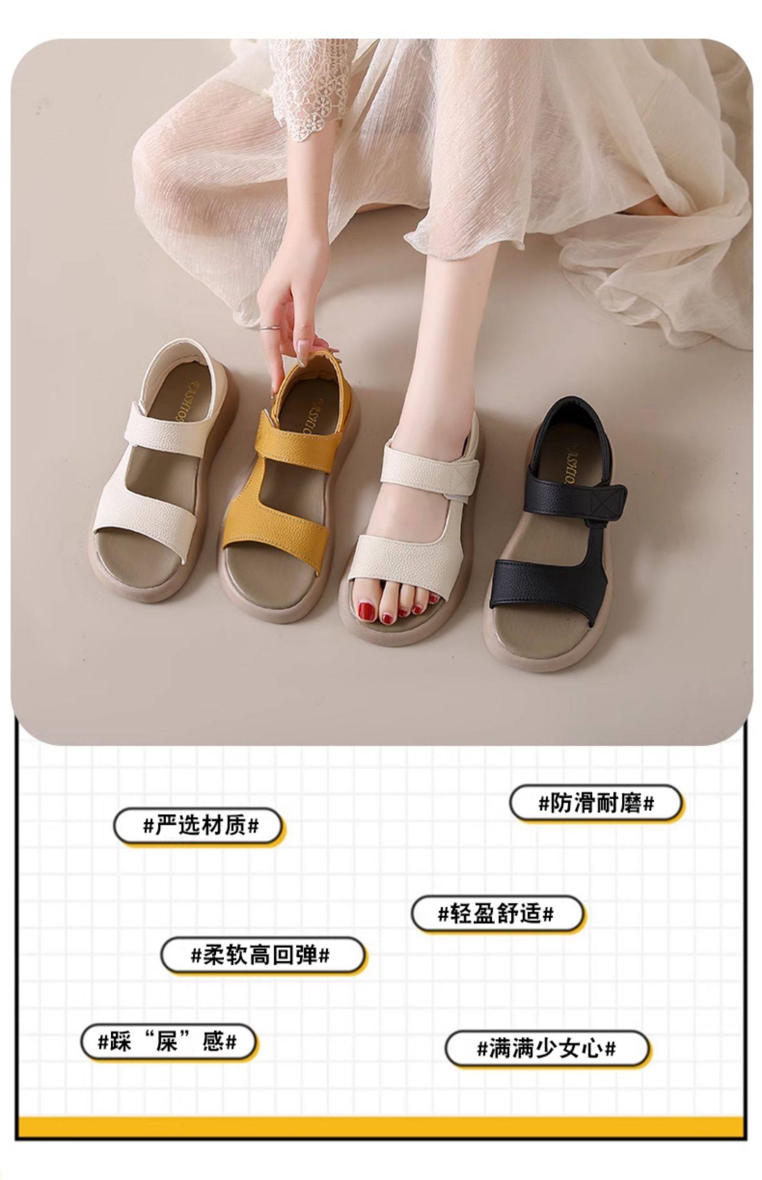 Brand Special Offer Genuine Leather Sandals for Women, Summer Outdoor Wear, Suitable with Skirts, Loose High Platform, Large Size, Maternity, Sports, Beach, Roman Sandals