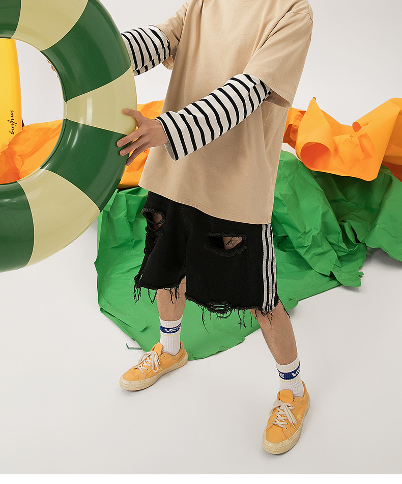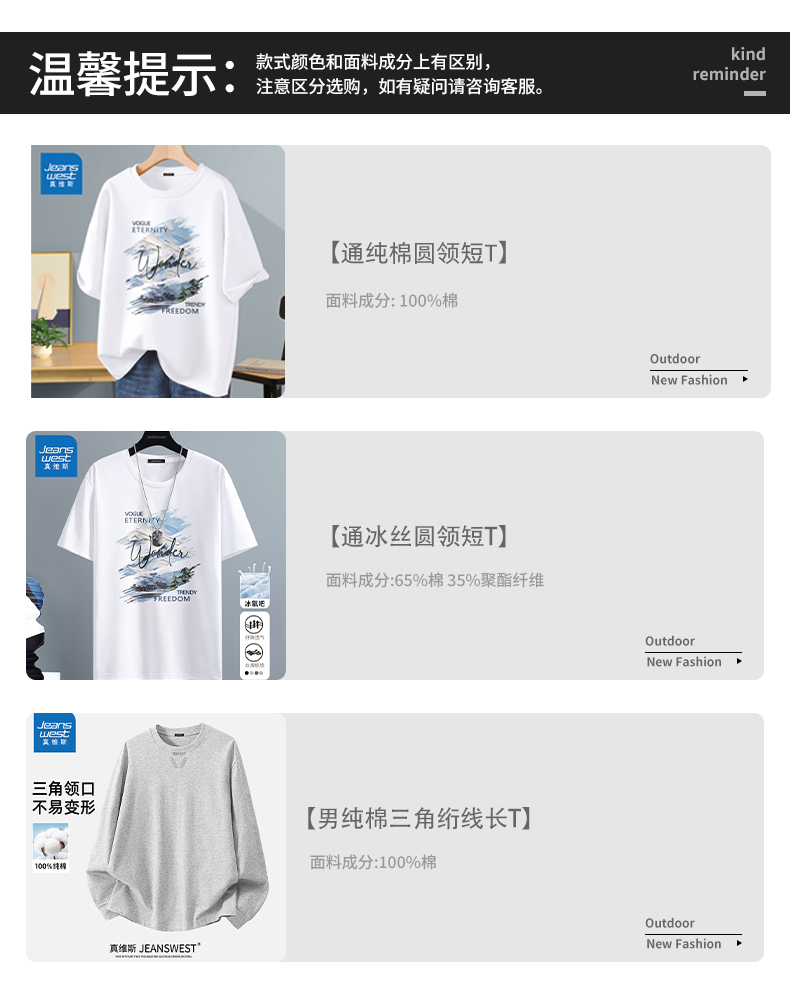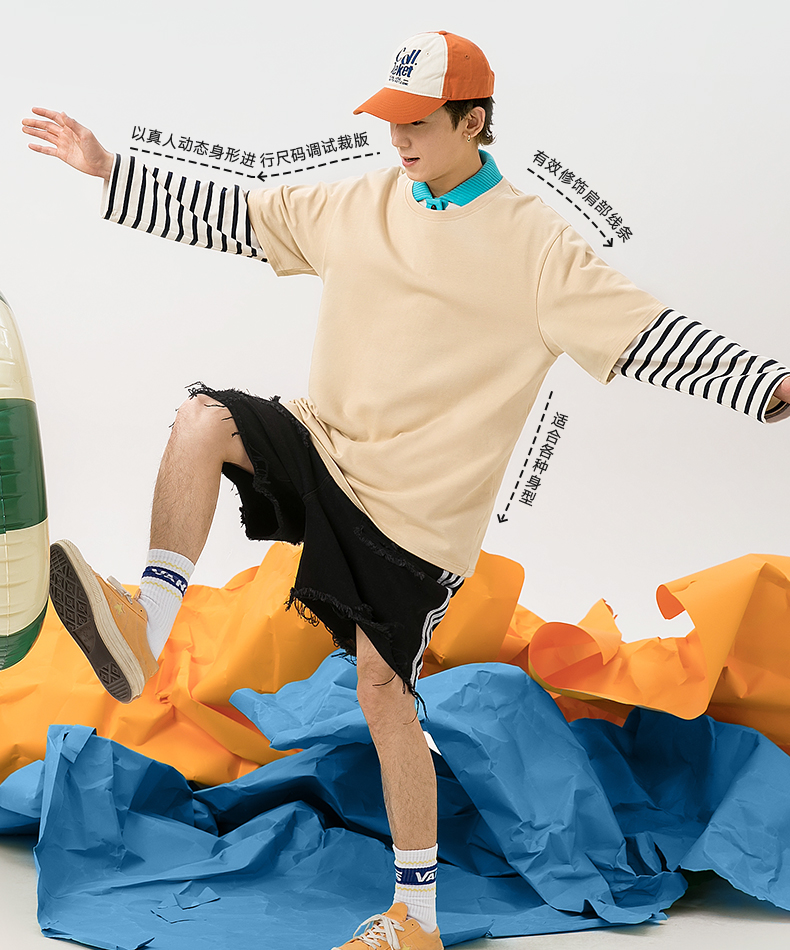 Jeanswest Short-sleeved T-Shirt Men's pure cotton 2025 Summer New arrival Teenagers American High Street Trendy Long sleeves Base Shirt