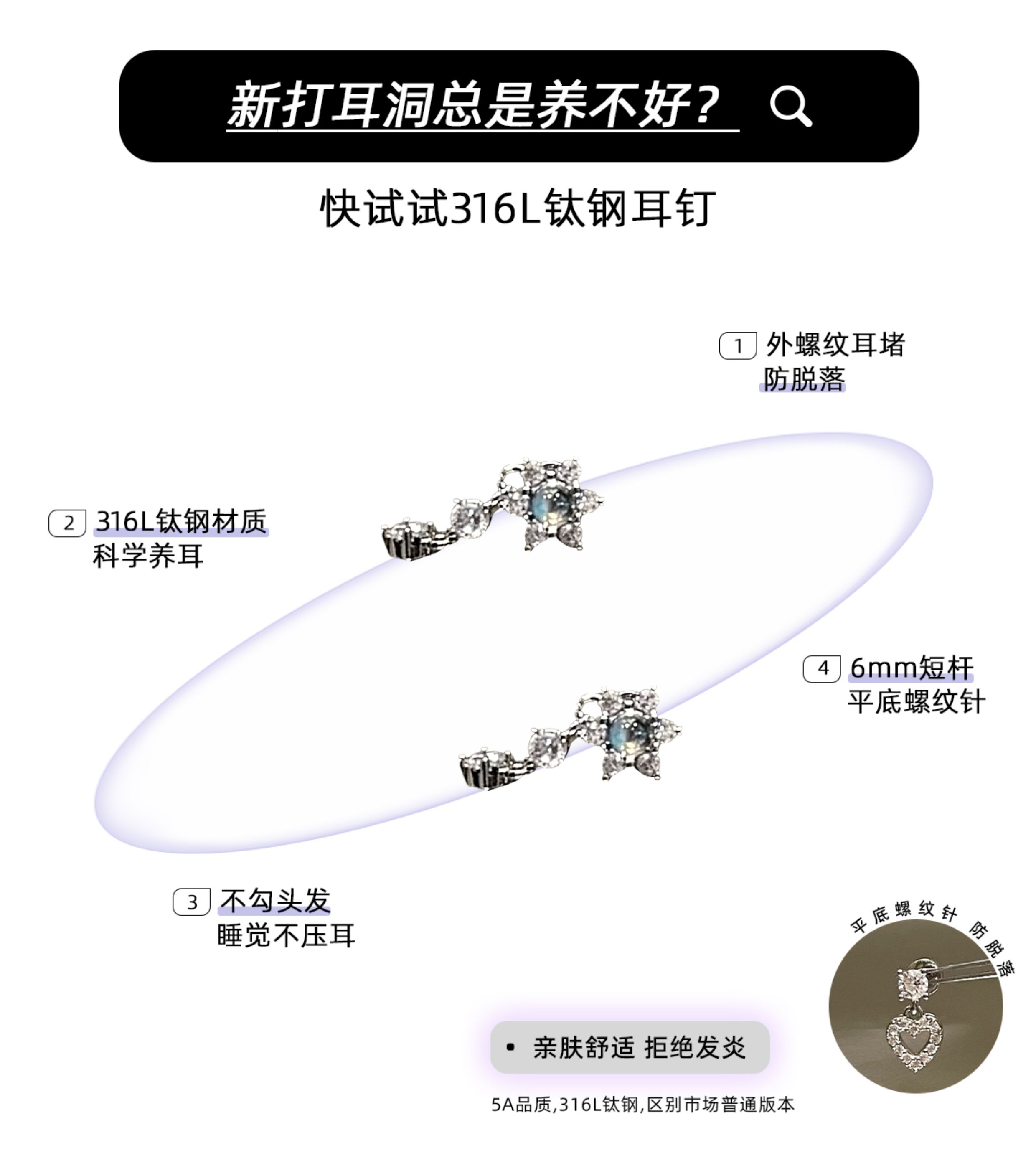 Ringring Store Pendant Ear Studs Titanium Steel Earrings Titanium Alloy Ear Piercing Cochlear Studs Ear Jewelry Earrings Ear Pendants