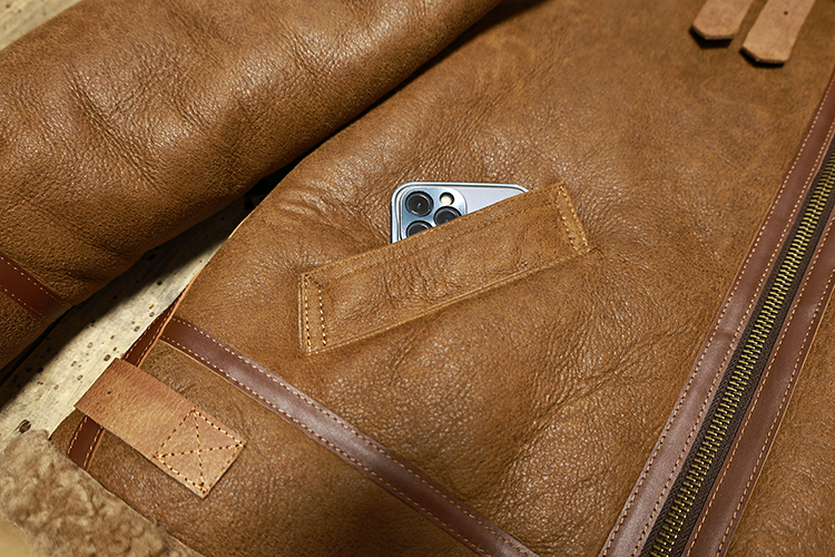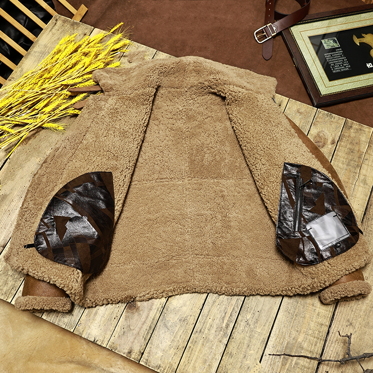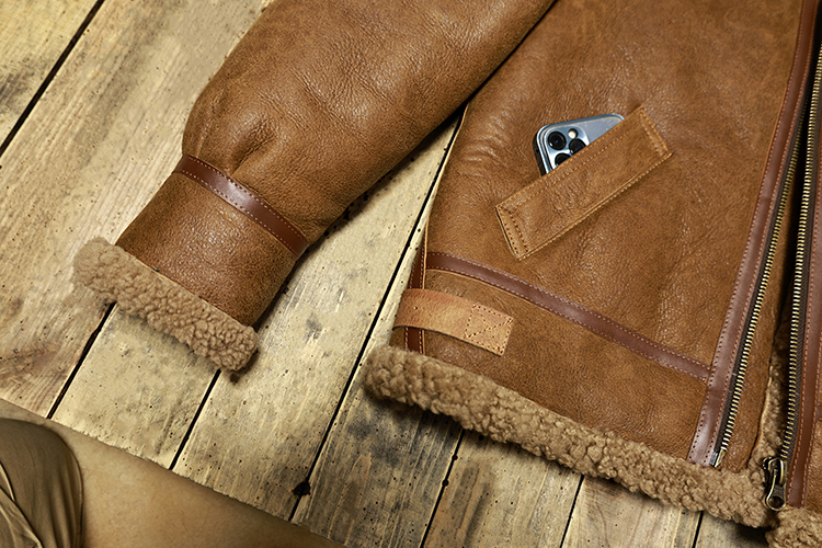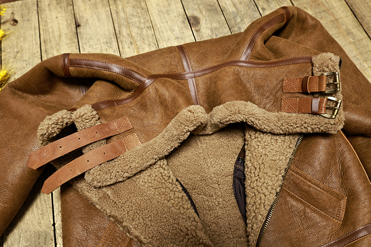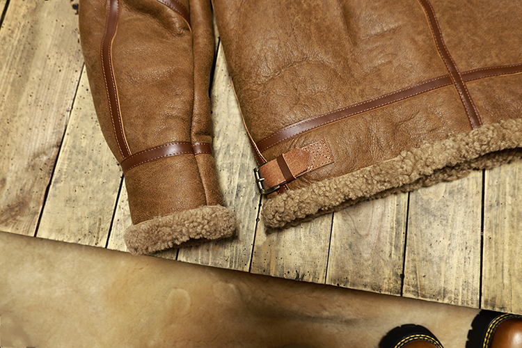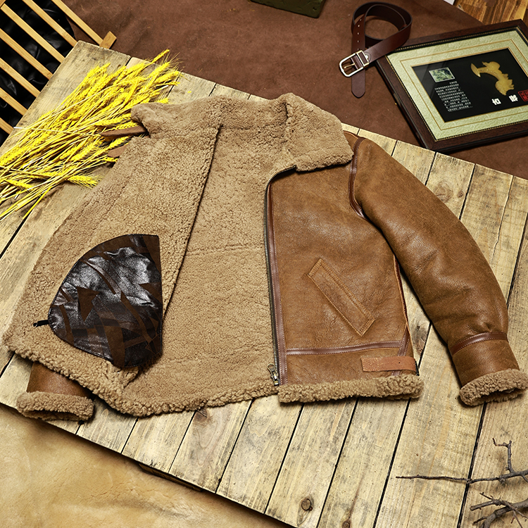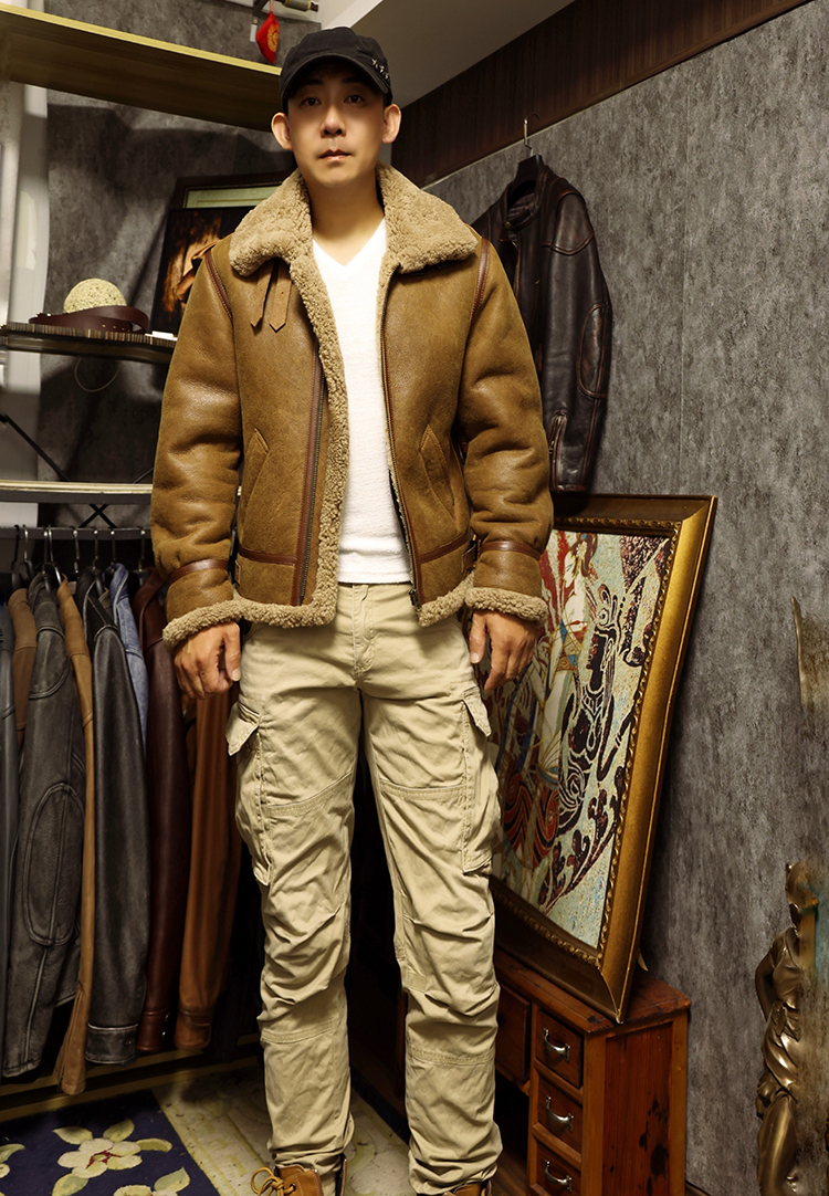 B3 Original Shearling Flight Suit Men's Lambskin Genuine Leather Motorcycle Short Jacket Fur Coat Thick