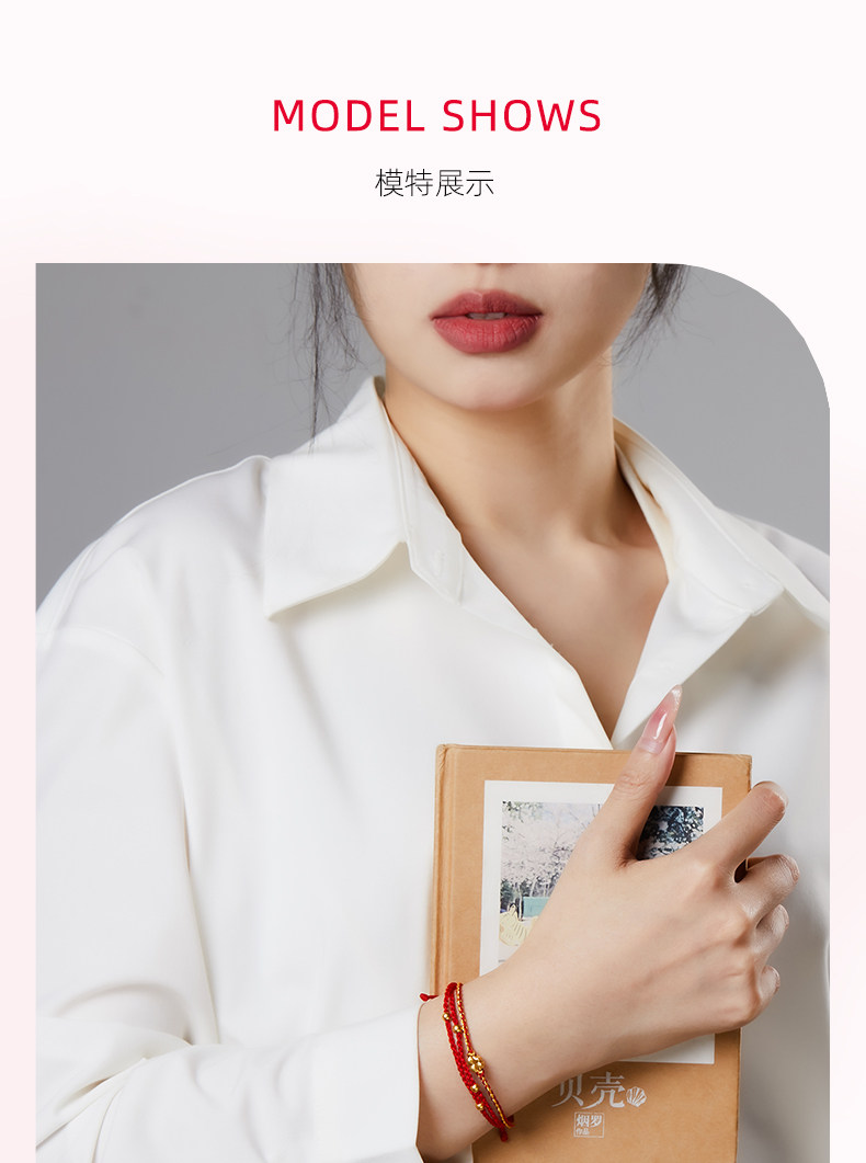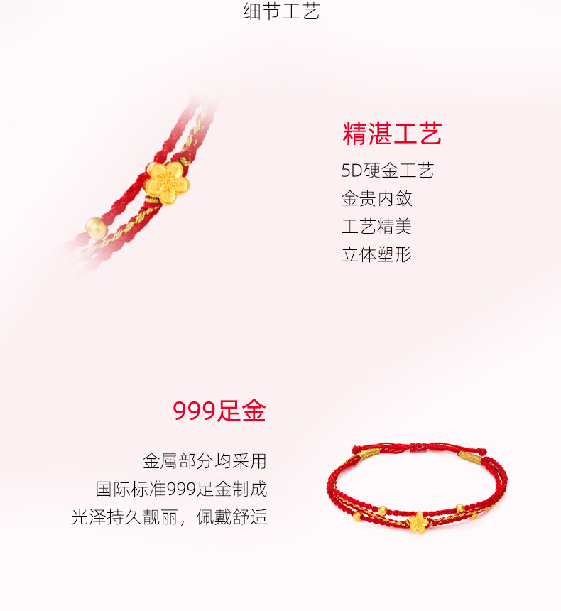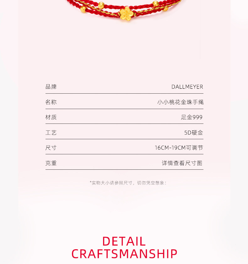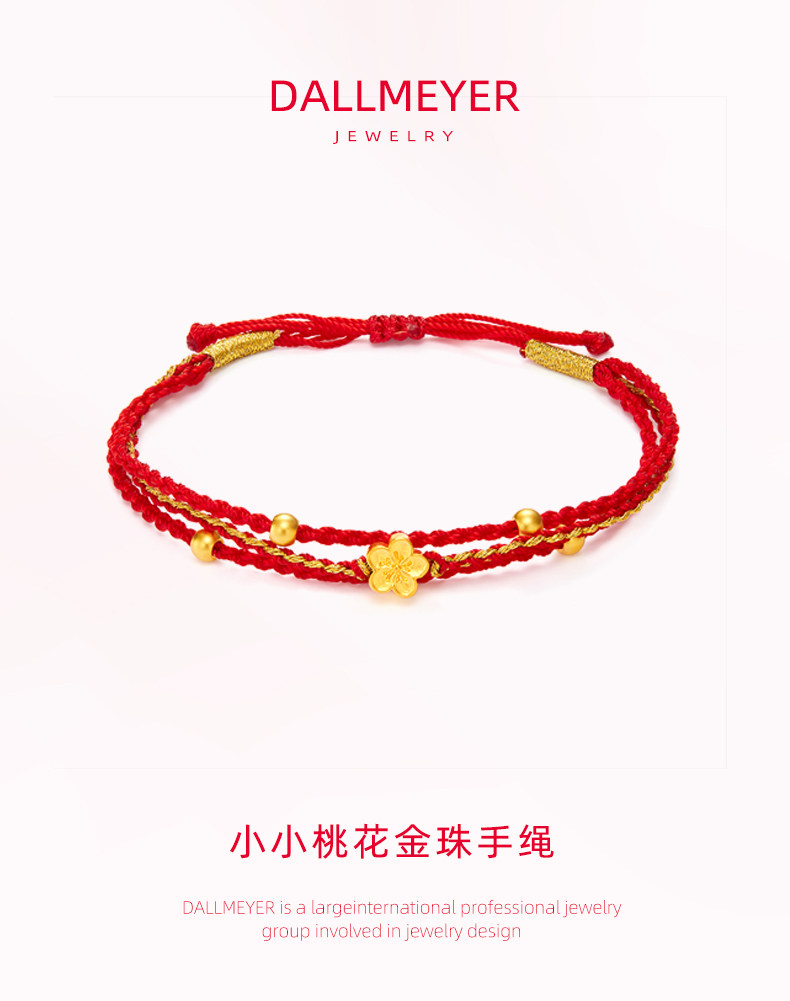 Dallmeyer Gold 999 Pure Gold Small Peach Blossom Bracelet with Transfer Beads 5D Hard Gold Bracelet Gift for Girlfriend