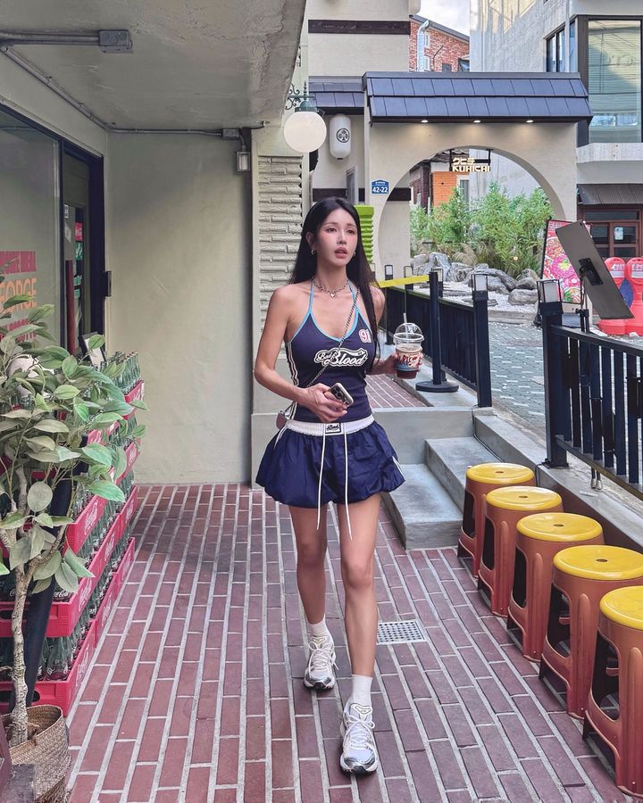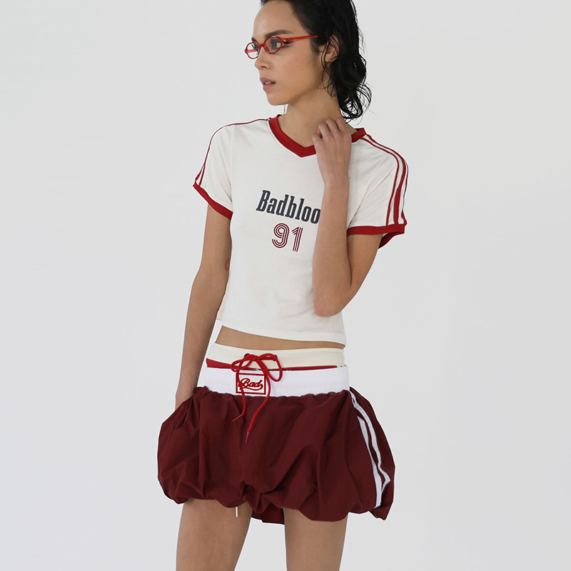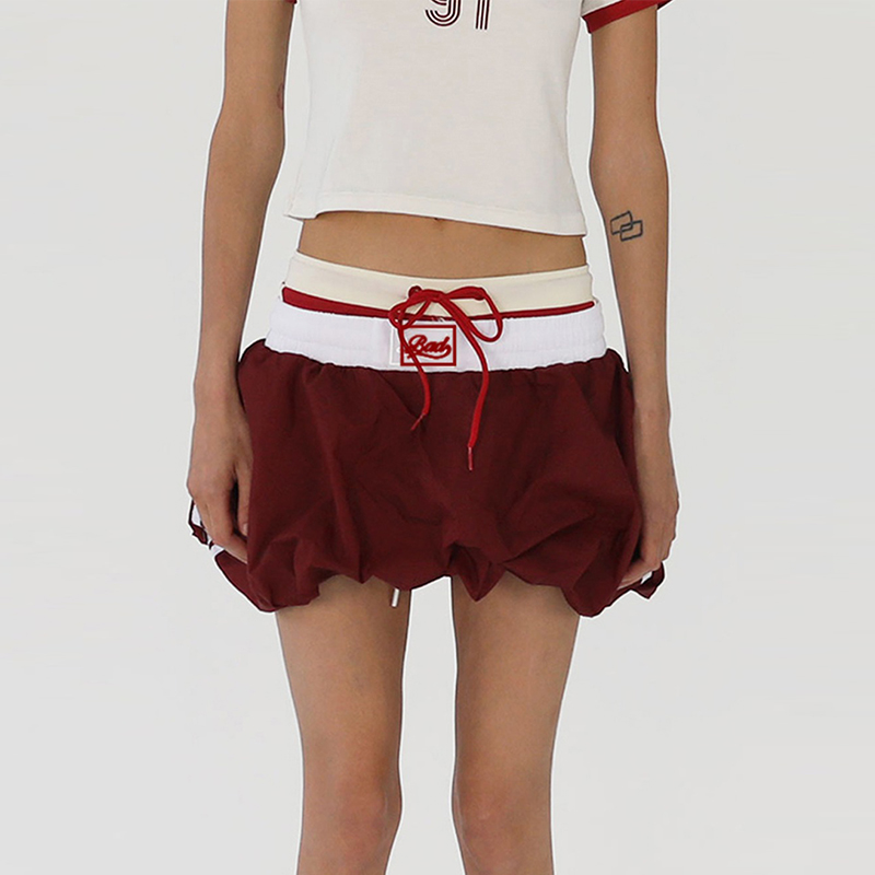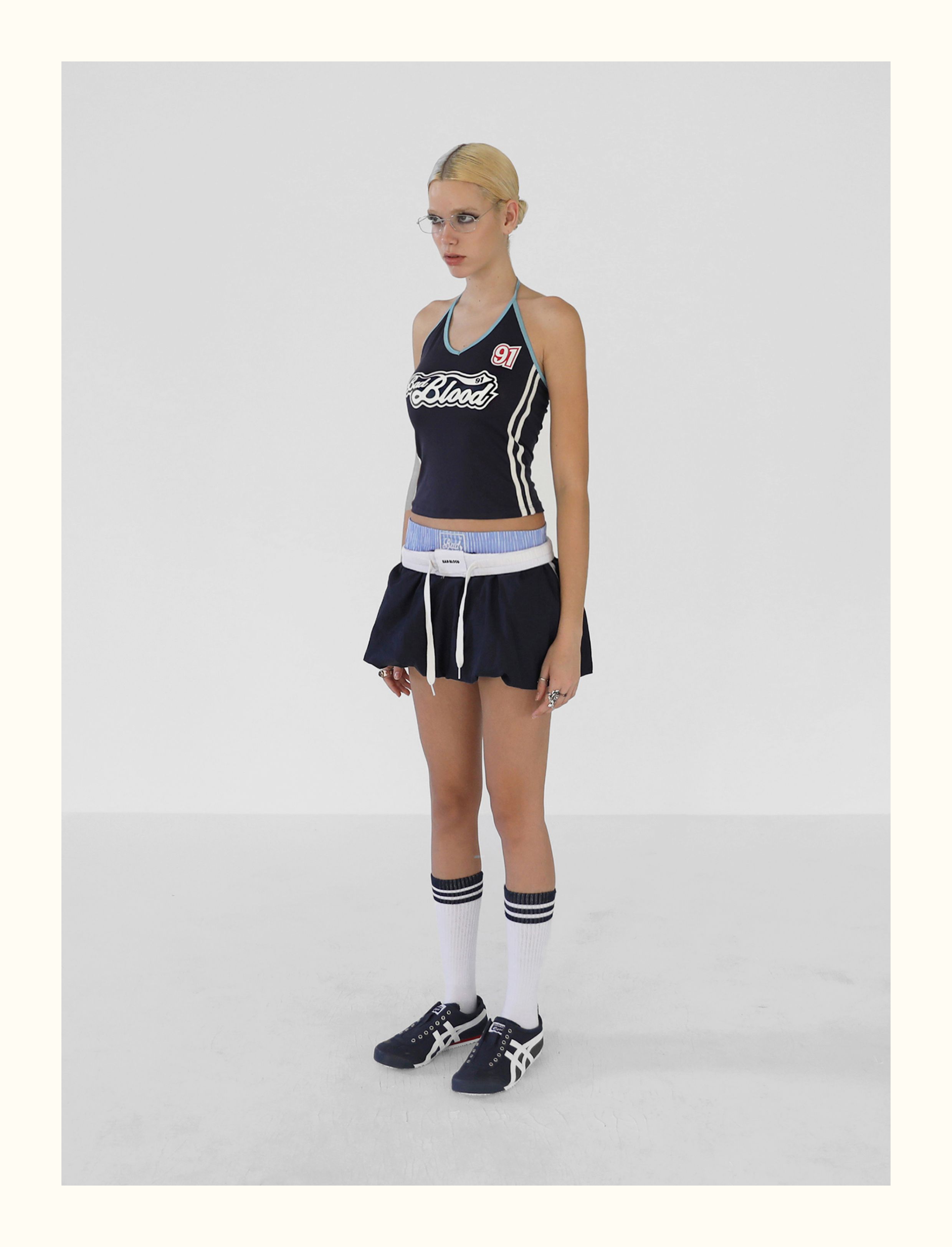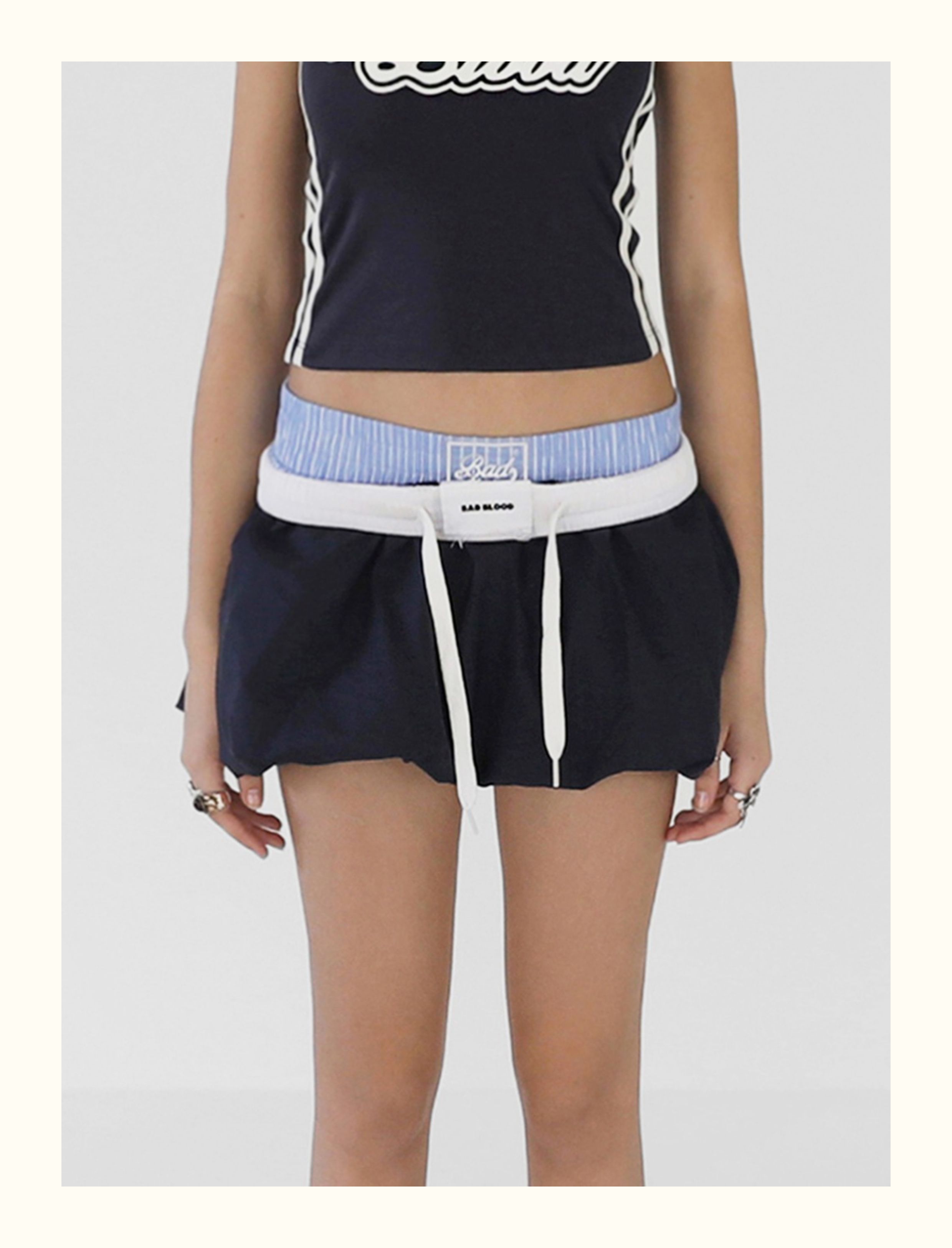 Badblood Zhang Yuanying's Same Style Pleated Double-Layer Skirt Short Skirt Sweet and Spicy Style Navy Blue Flower Bud Skirt for Women