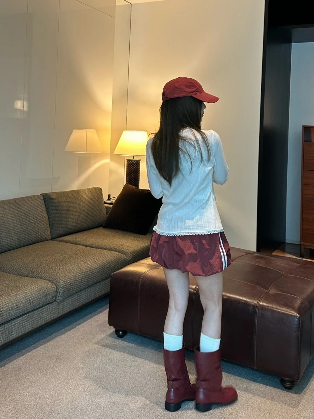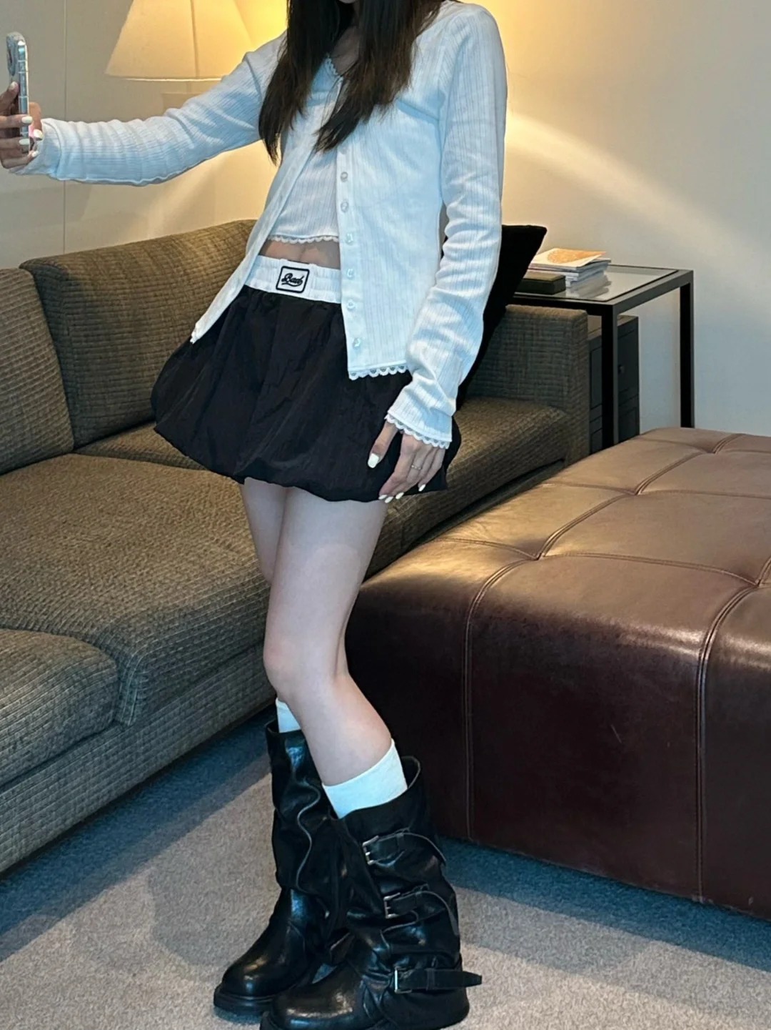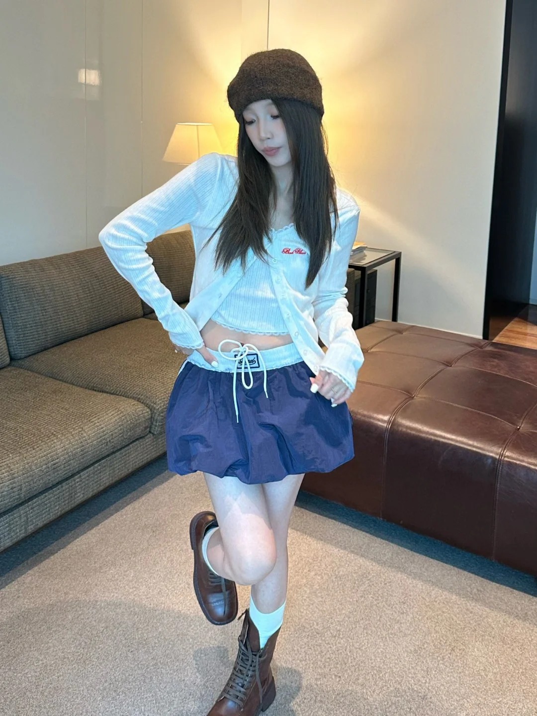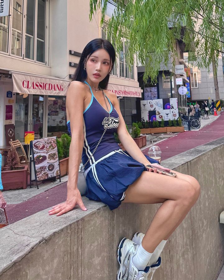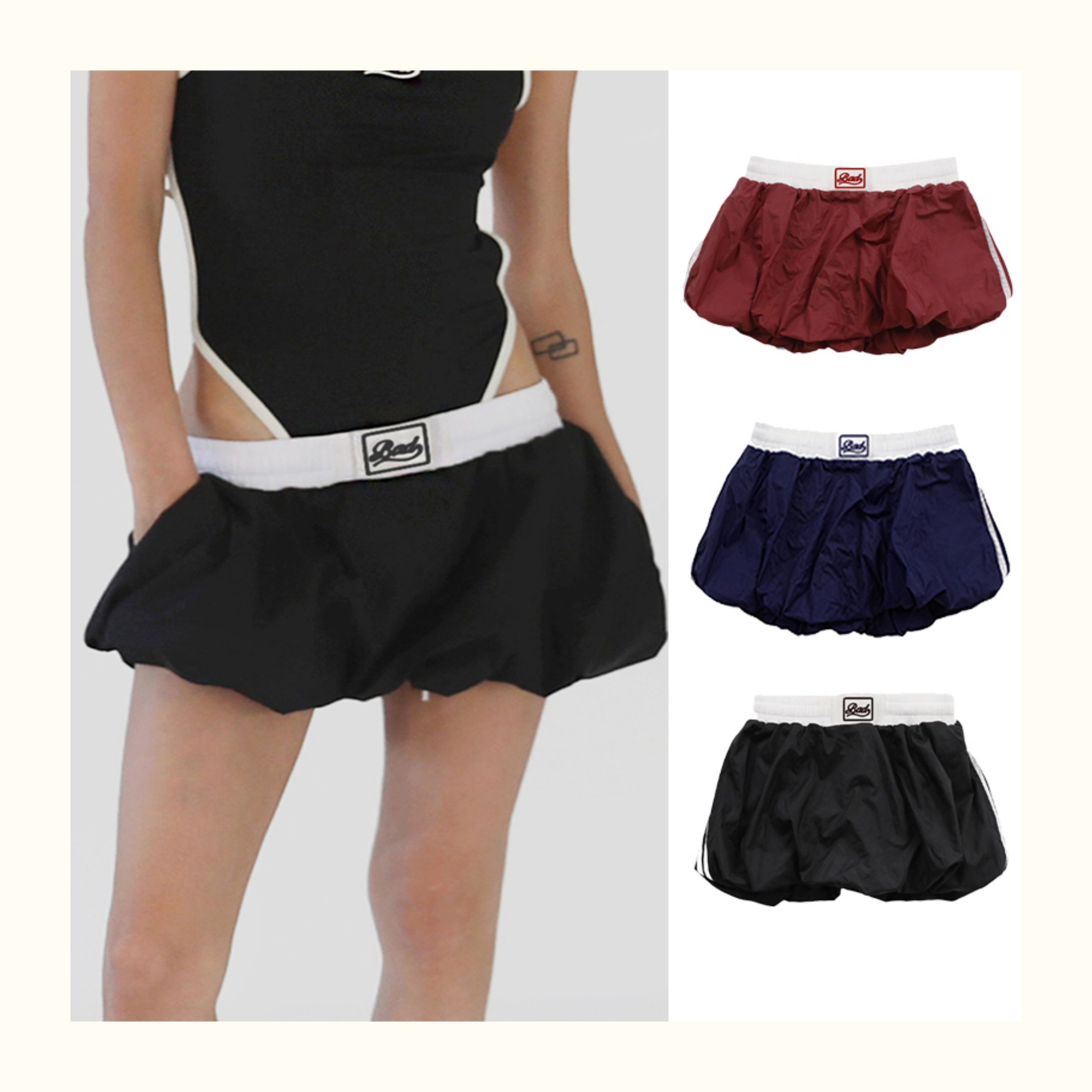 Badblood Zhang Yuanying's Same Style Pleated Double-Layer Skirt Short Skirt Sweet and Spicy Style Navy Blue Flower Bud Skirt for Women