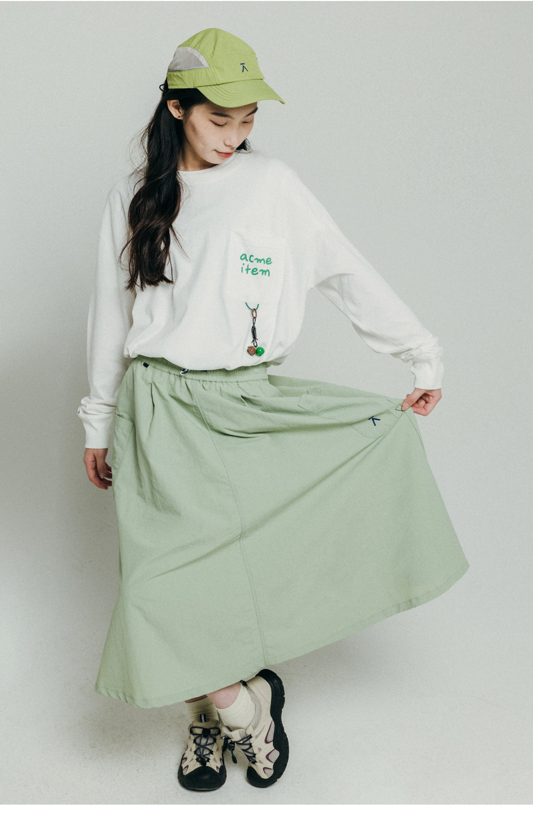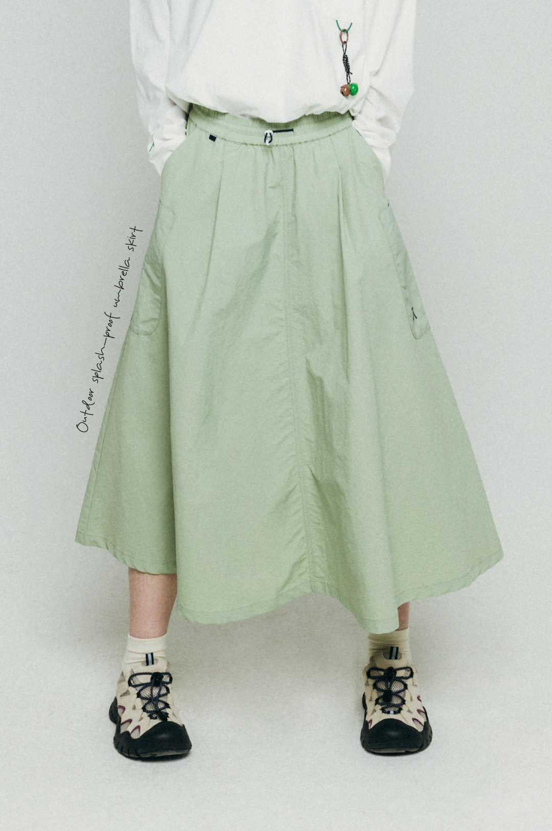 Acmeitem Outdoor Large Flared Umbrella Skirt with Pockets, Mid-Length Skirt for Women