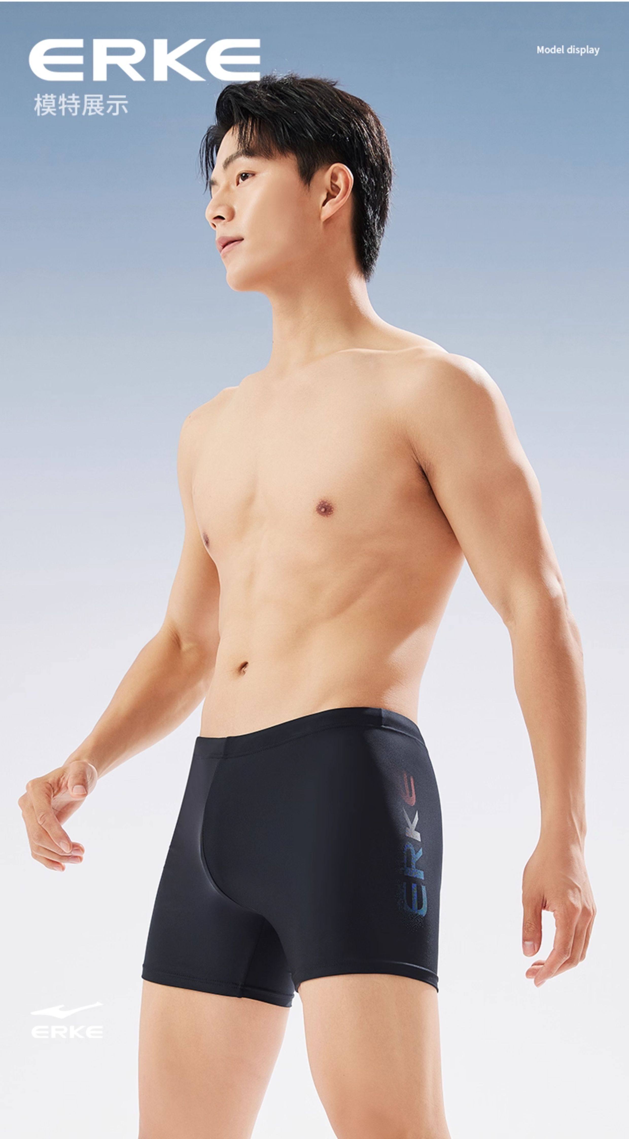 Hongxing Erke Men's Swimming Trunks, Professional Swimming Training Quick-Drying Boxer Shorts, Five-Point Length, Anti-Embarrassment, Hot Spring Equipment
