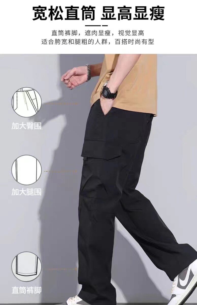American-Style Work Pants, Large Size, Thin, Men's Loose Straight-Leg Wide-Leg Casual Pants, Wear-Resistant, Tear-Resistant, Labor Protection Long Pants